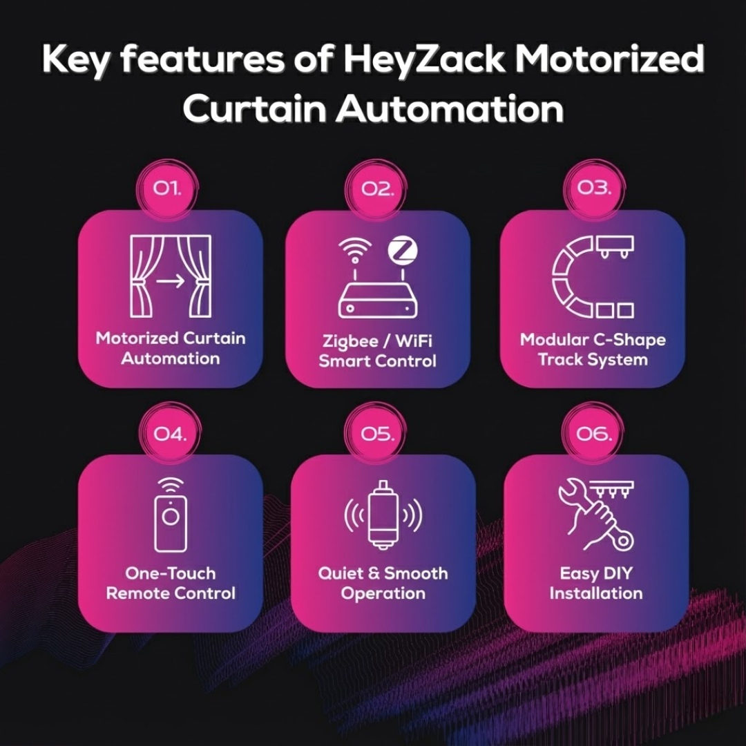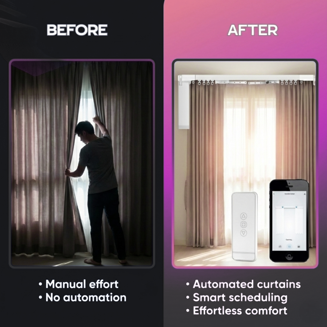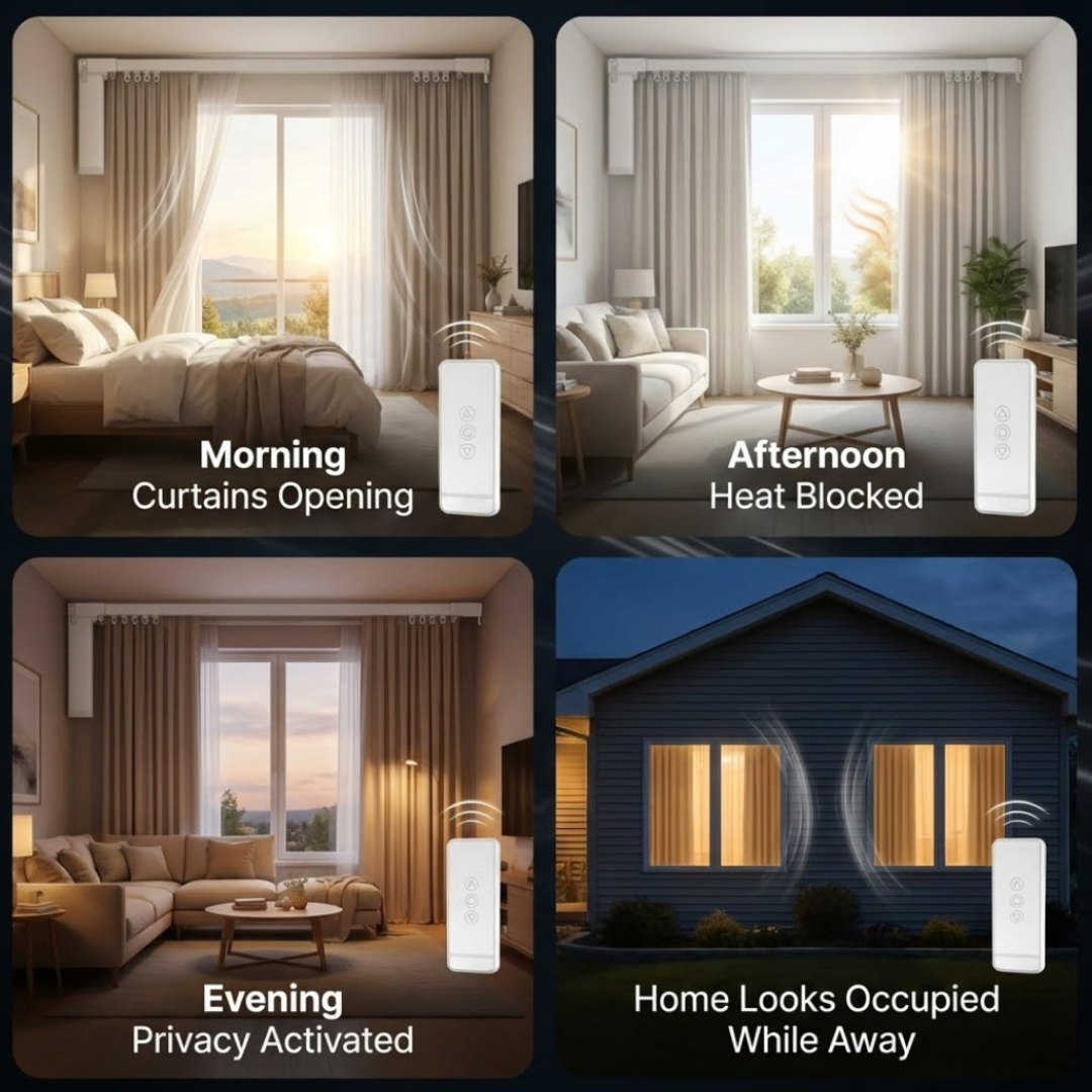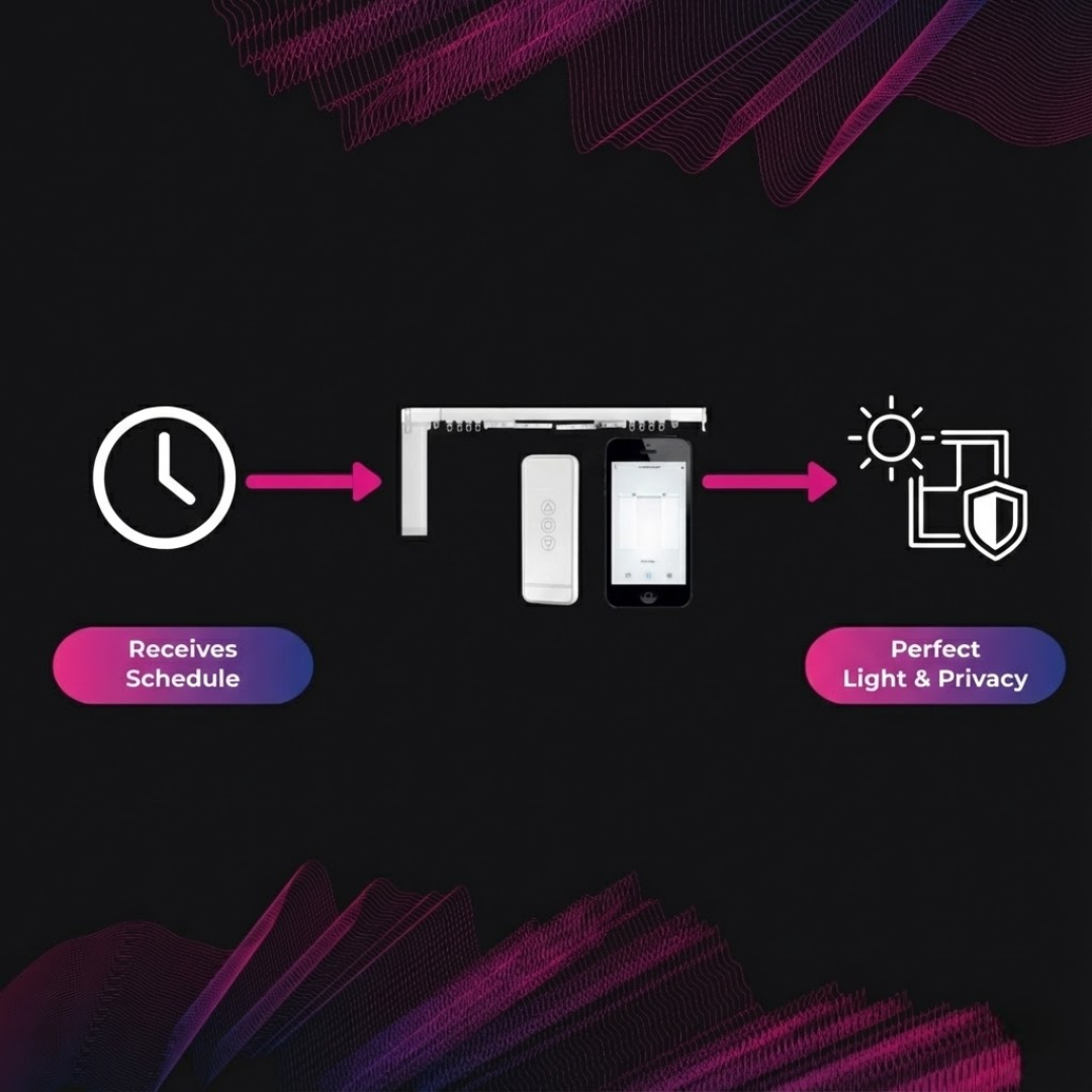 Enjoy elegant curtain automation that installs discreetly behind your existing C-track without visible hardware or complicated setup.