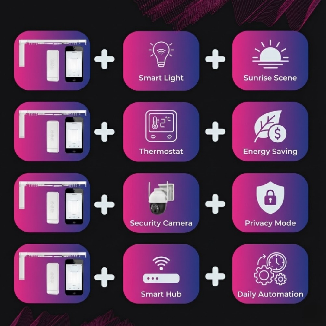 Transform any C-shaped curtain track into an intelligent window treatment that moves on your command. Experience the luxury of automated curtains that glide open with sunrise and close for perfect privacy at night.