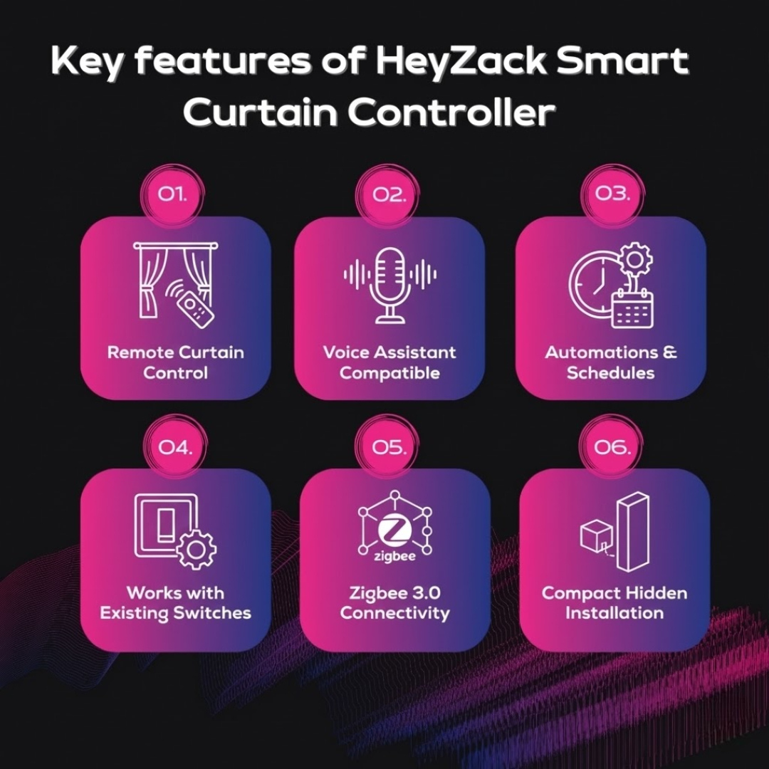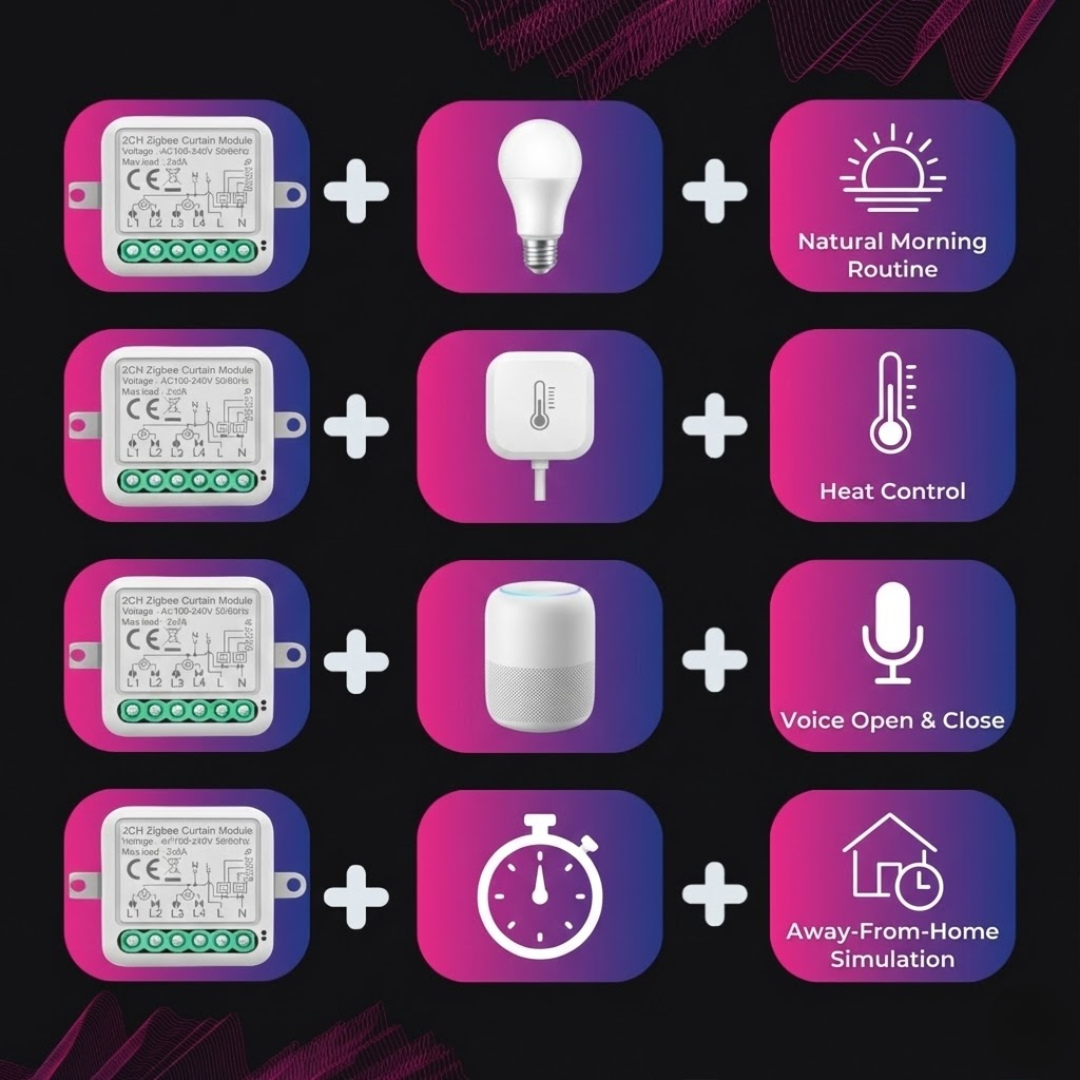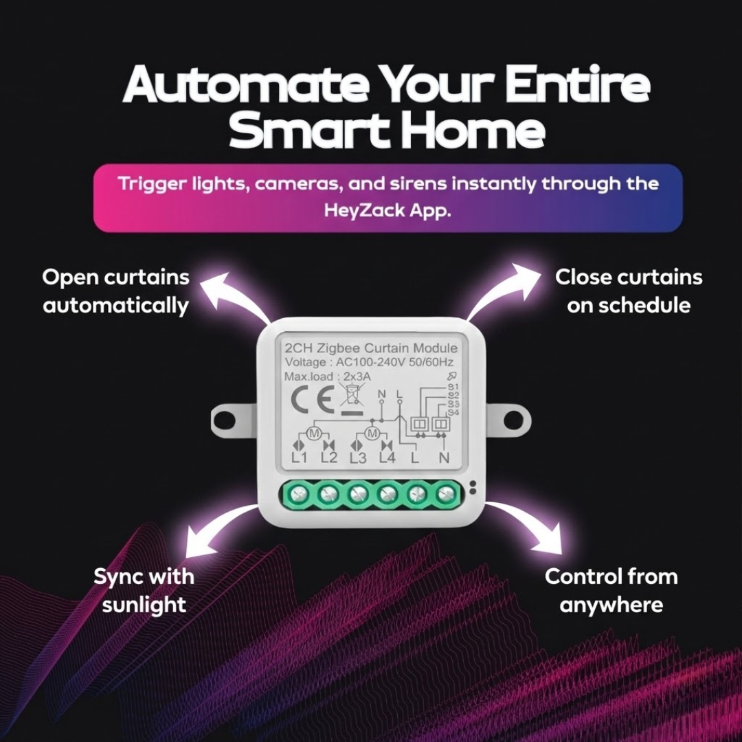 Transform your curtains into intelligent window coverings that respond to your daily rhythm. Open to sunrise, close for privacy, all without lifting a finger.