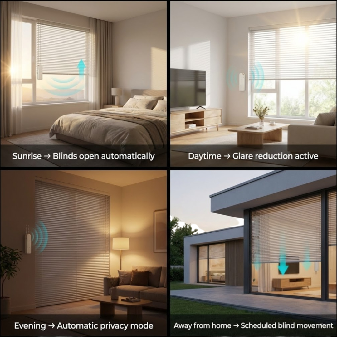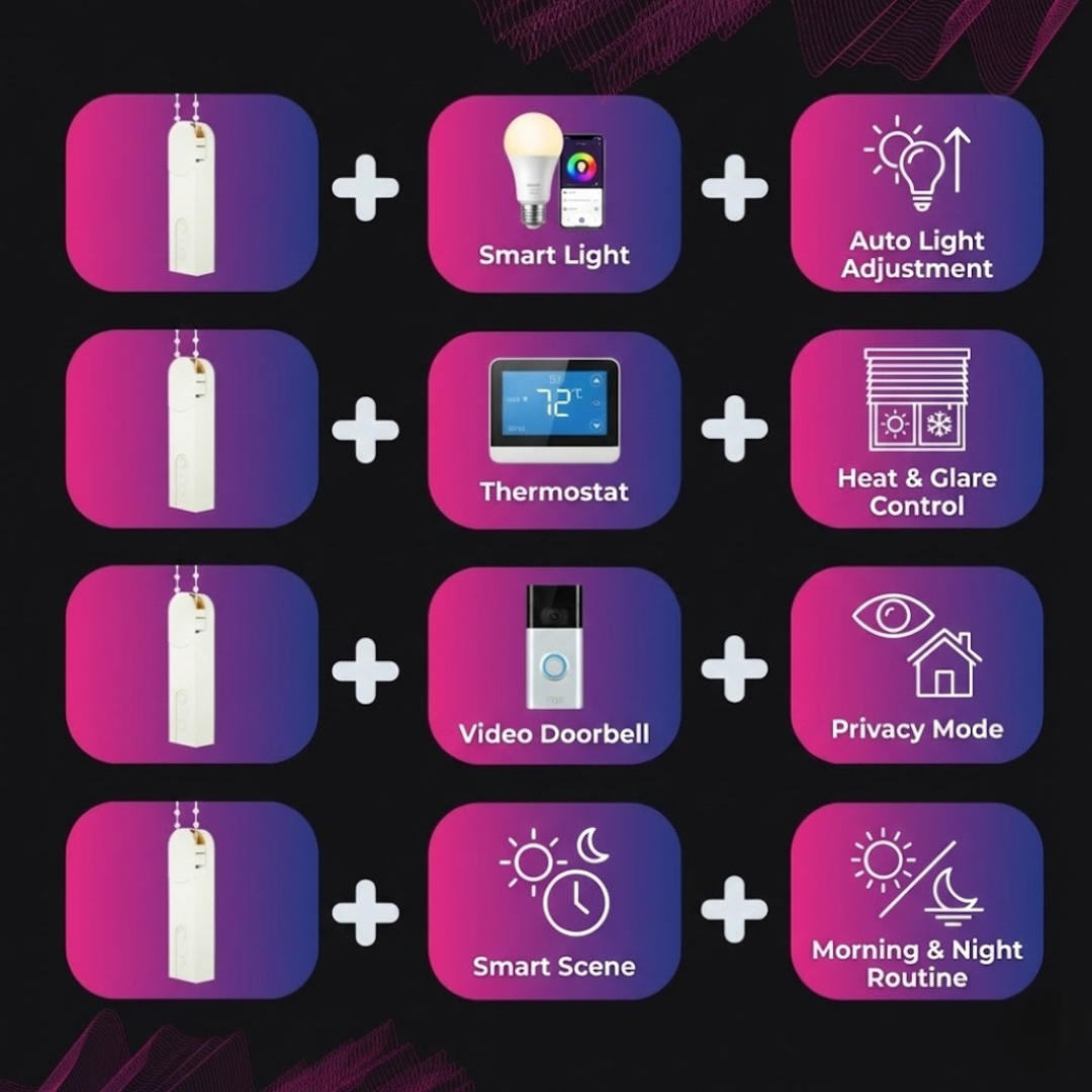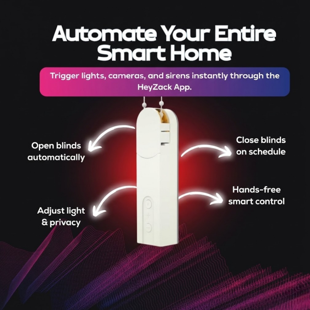 Transform every rope-pull blind in your home into an automated shade that moves at your command. Wake to gentle sunrise, dim the room for movie night, or secure privacy from bed with a simple word.