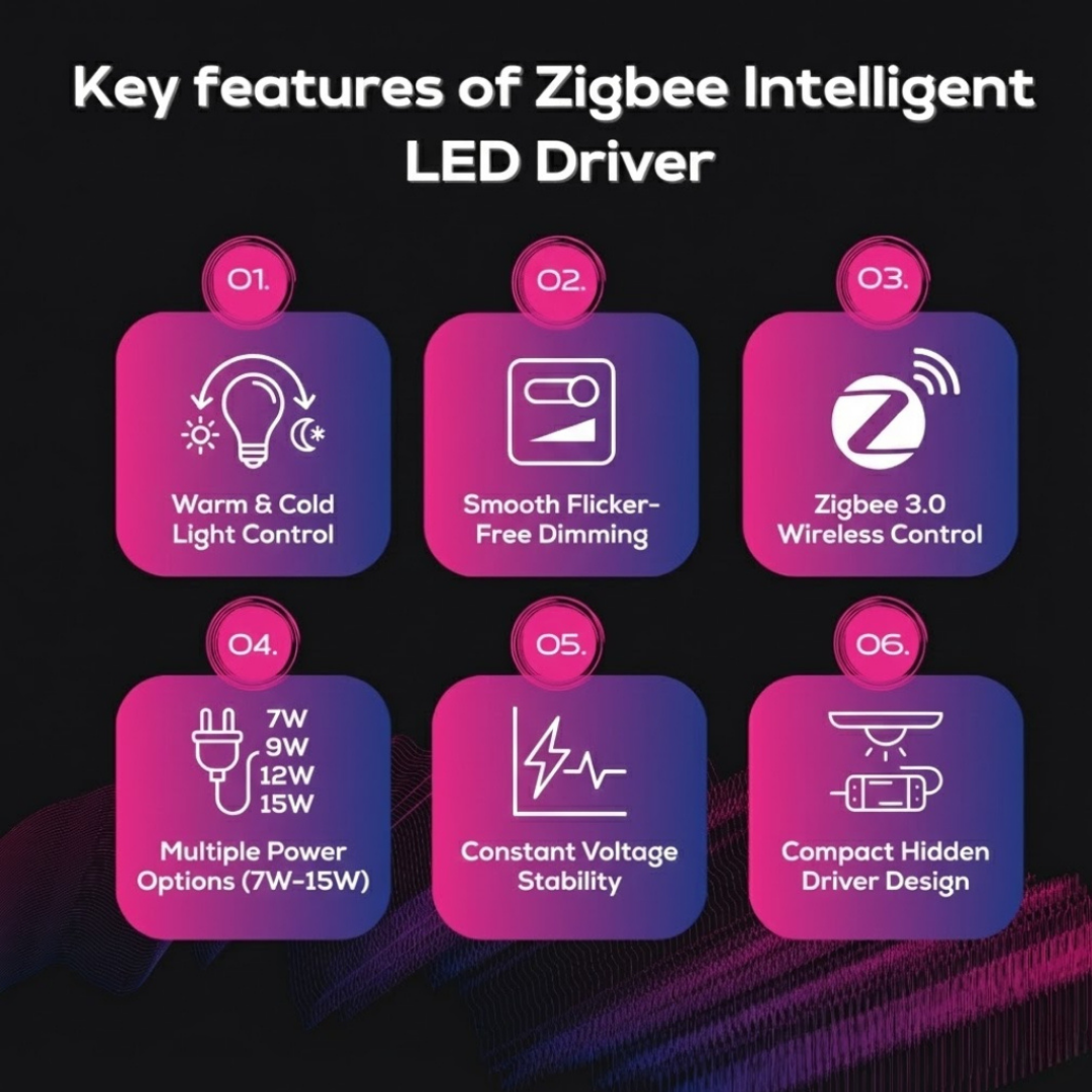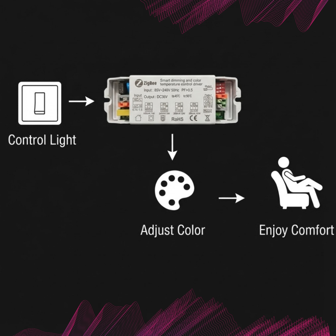 Transform any space with intelligent lighting that responds to your every need. The Zigbee Intelligent LED driver brings professional-grade control to your fingertips.
