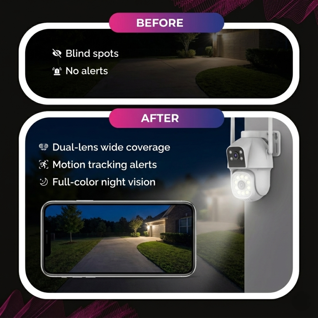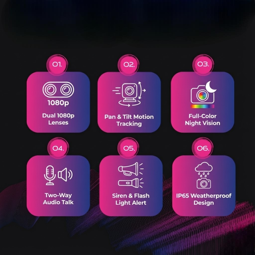 Get a comprehensive view of your property with two lenses covering different angles, so you never miss a moment.