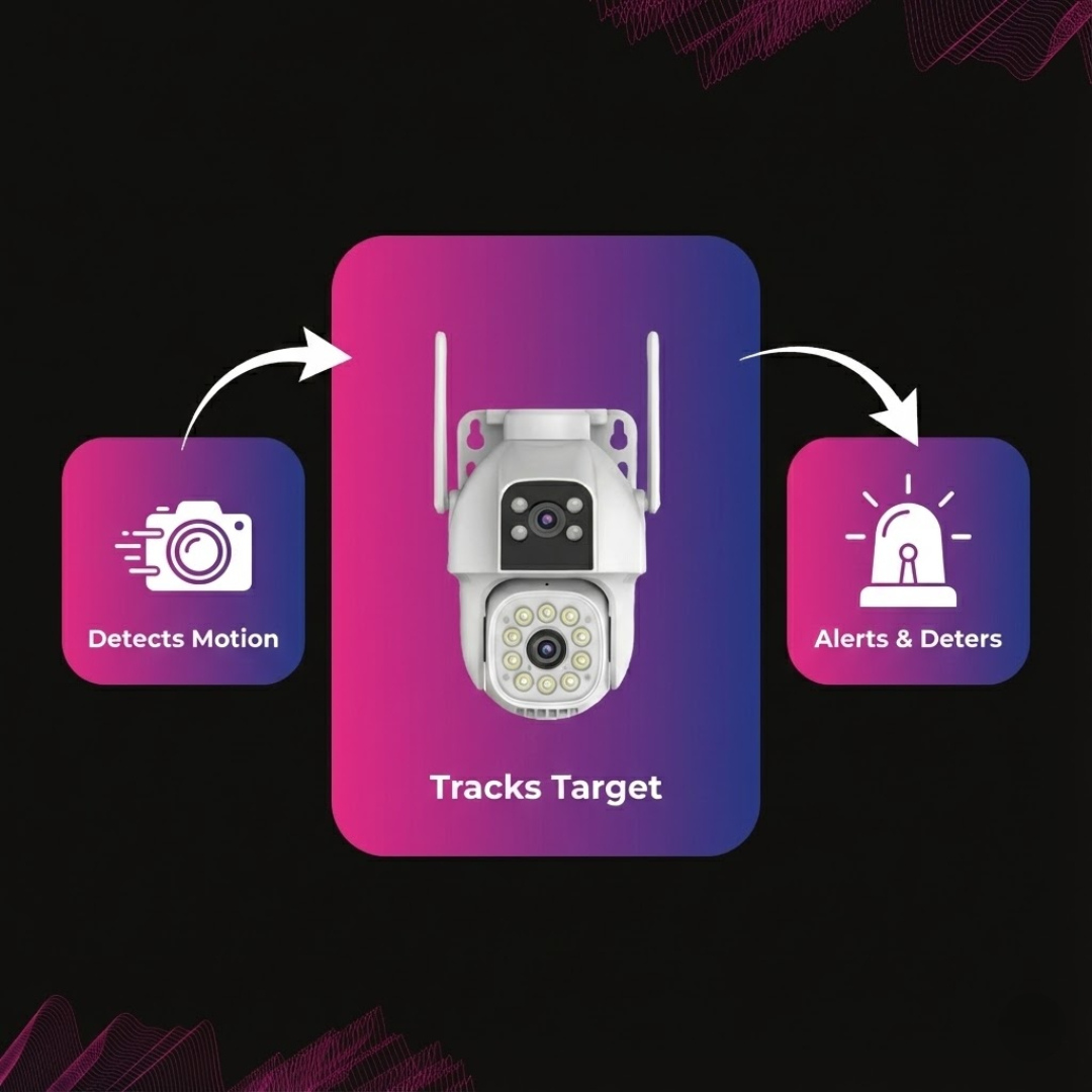 The camera follows intruders automatically, keeping them in frame and alerting you to suspicious activity.