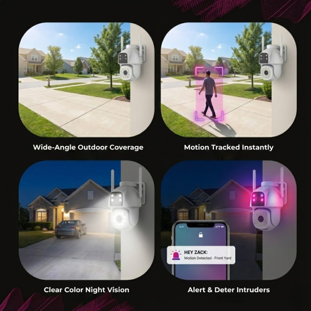 • Motion-Activated Alerts with Pan & Tilt Tracking