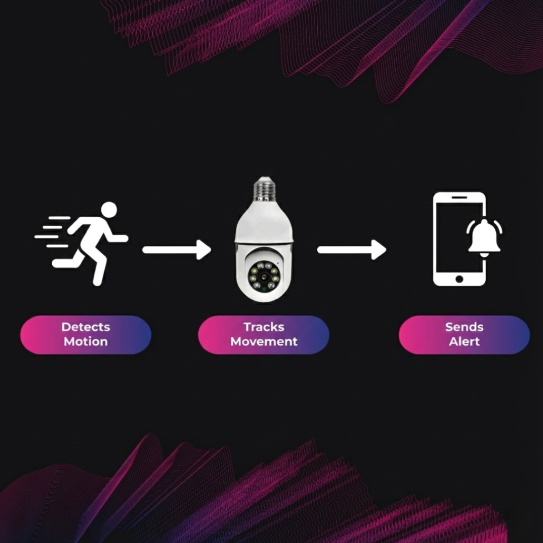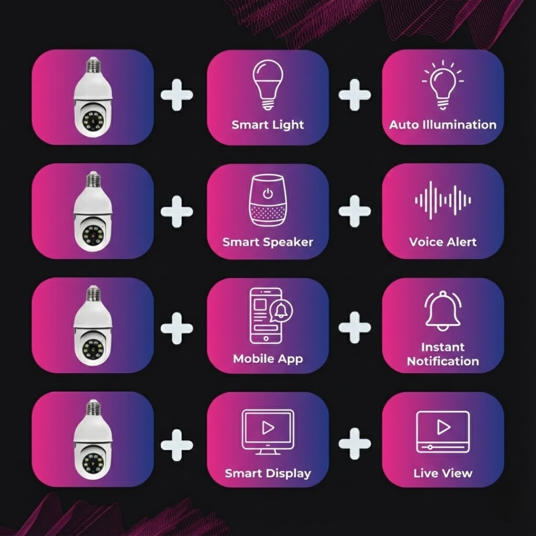 • Installs anywhere with standard E27 socket for instant surveillance.