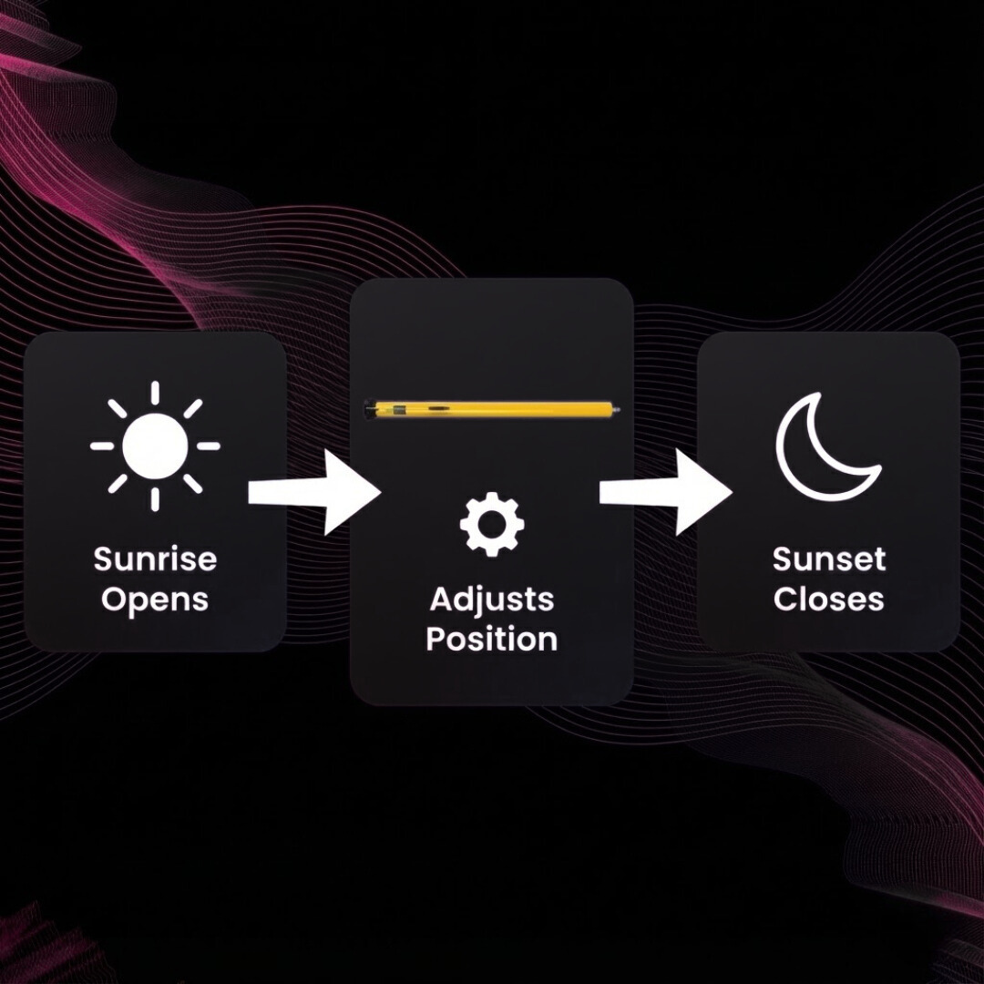 Opens shutters at 30 RPM for a smooth, gradual rise calm mornings, no alarms.