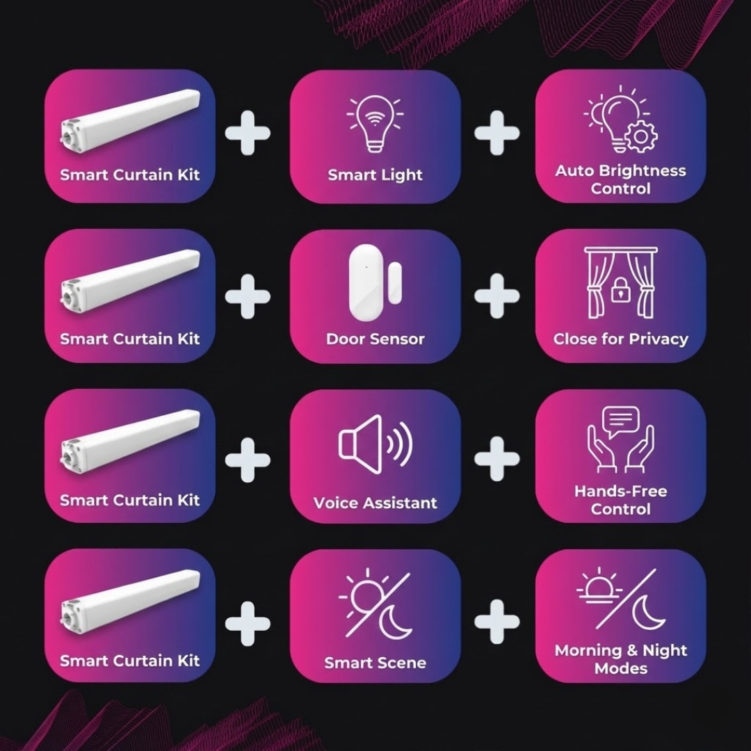 • Syncs with smart lights to adjust brightness when curtains move