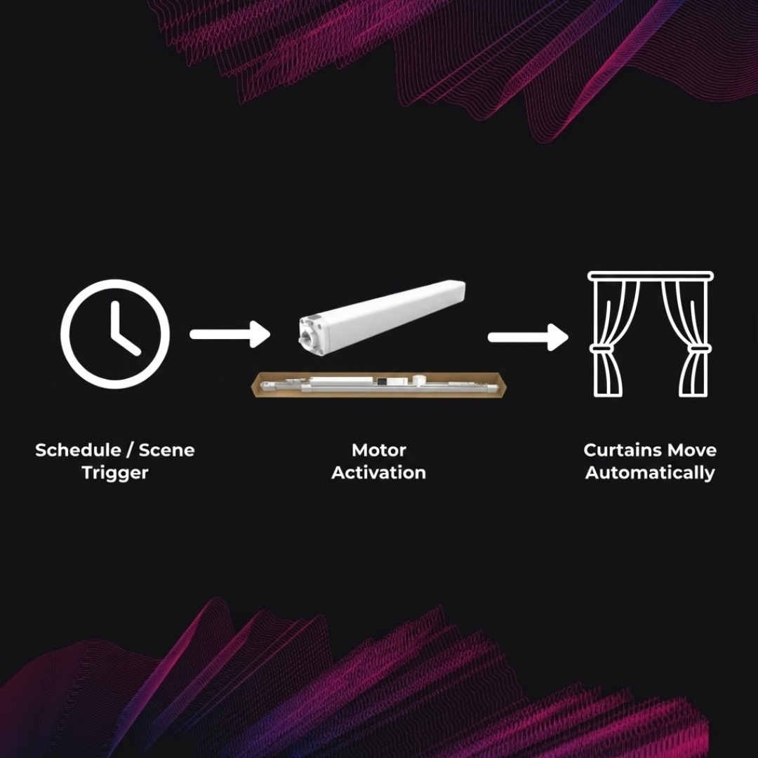• Action*: Curtains open automatically
