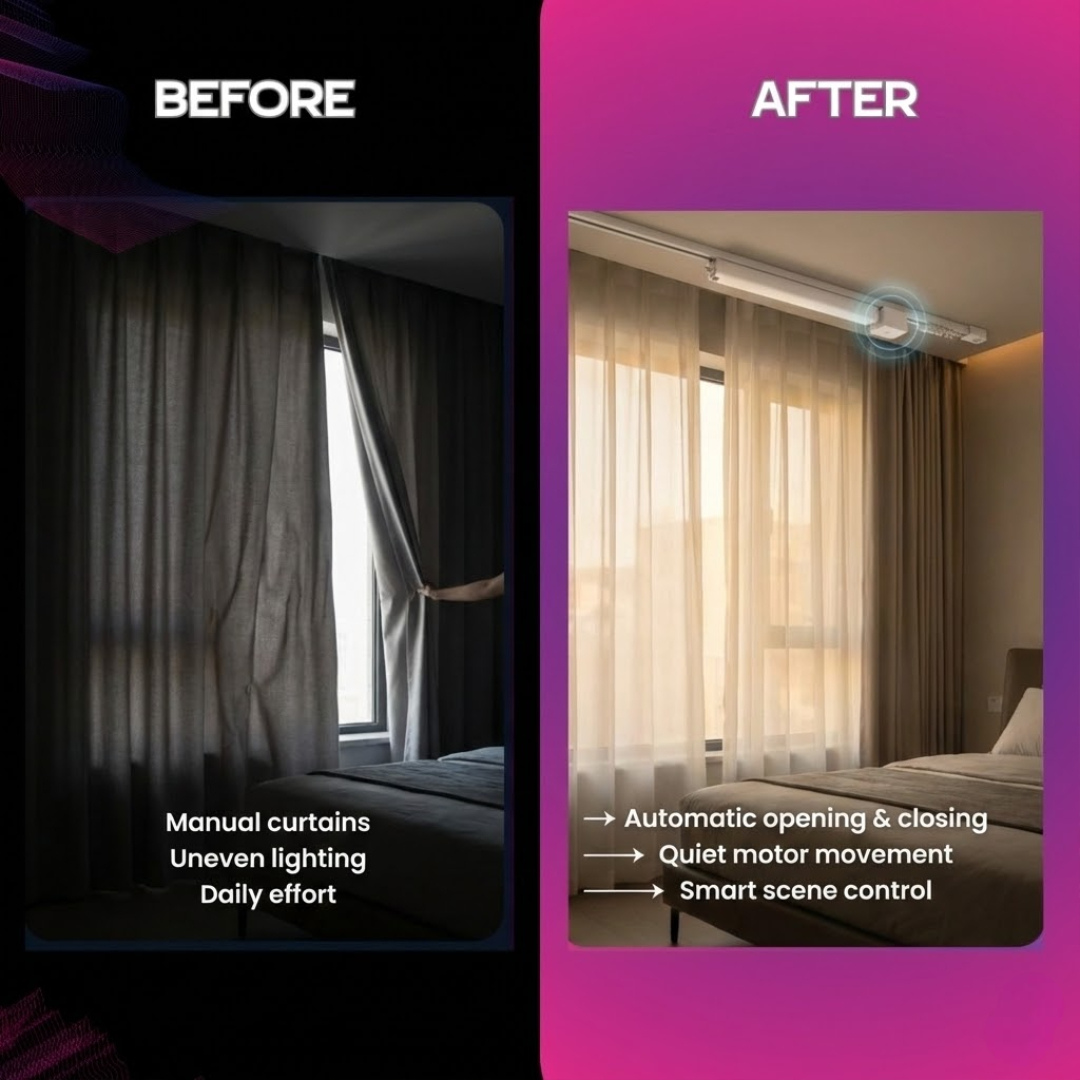 Transform your existing Roman rod curtains into smart curtains instantly, no expensive track replacements or professional installation required.