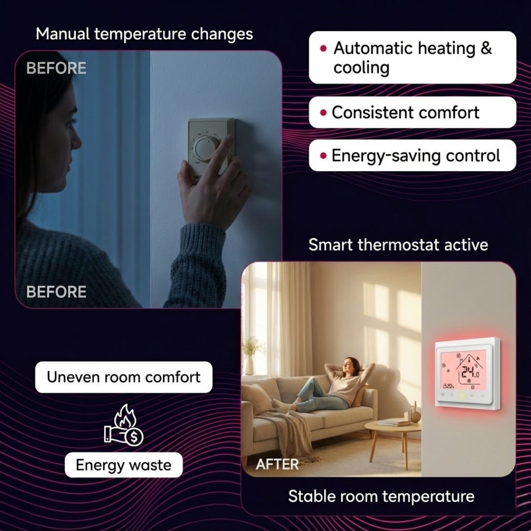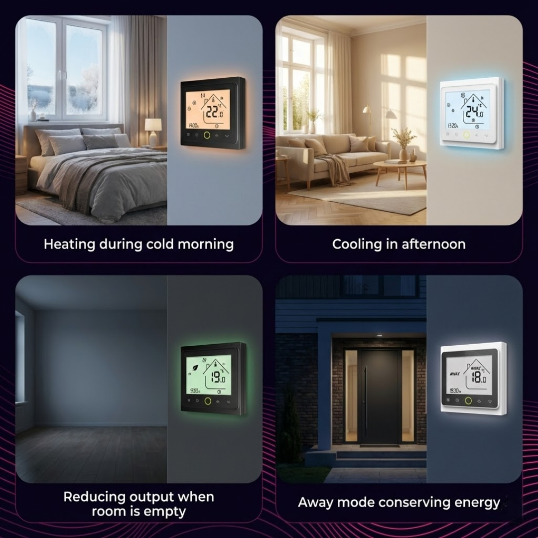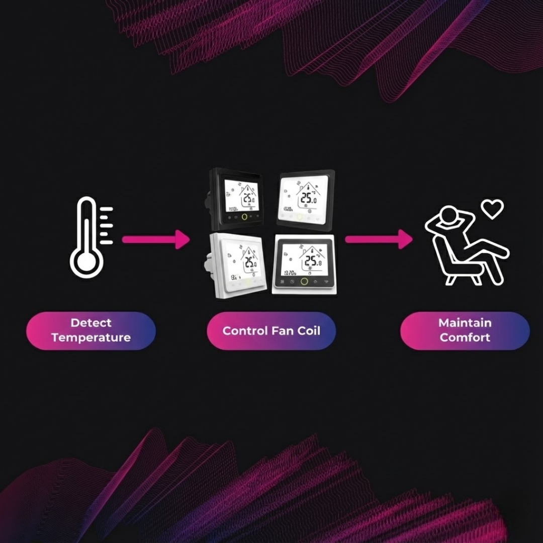 Precise control over your fan coil unit and motorized valve helps optimize energy use, potentially lowering your utility bills while keeping your home comfortable.