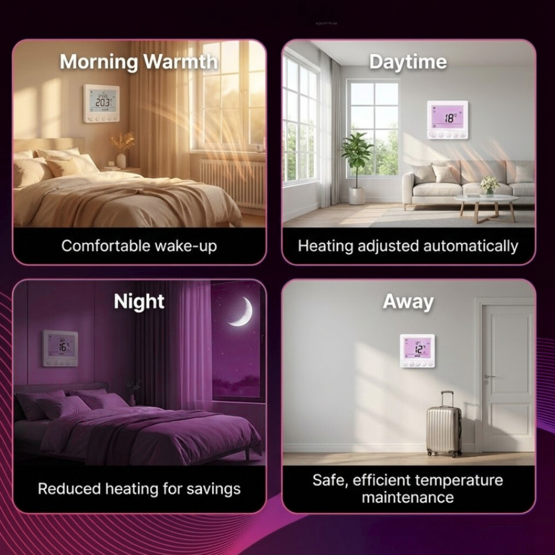 • Useful for energy efficiency by preheating the space only when needed, saving on heating costs