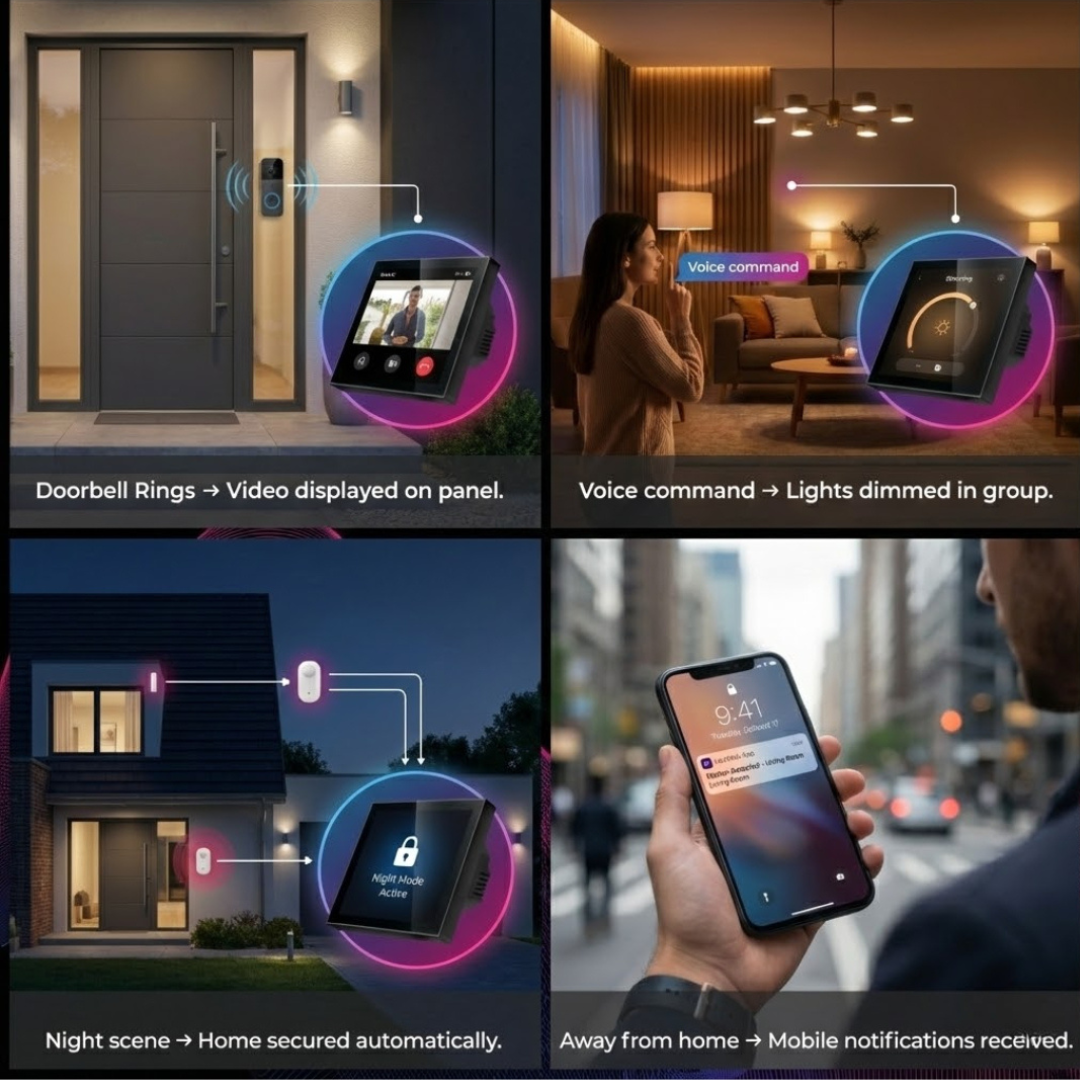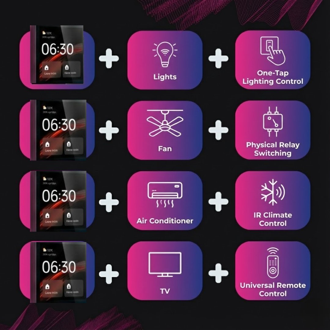 • Command every light, lock, and scene from one elegant 4-inch display.