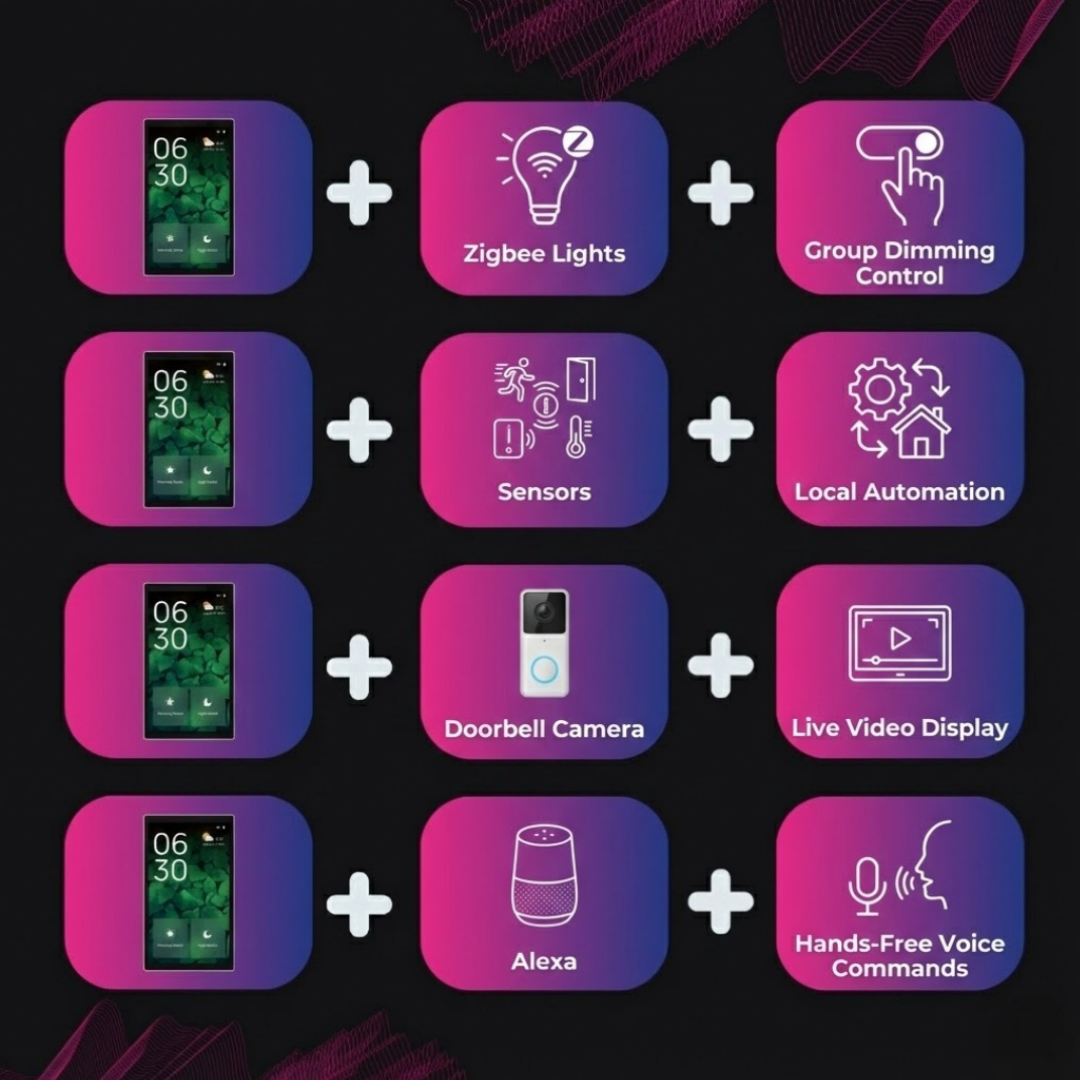 Seamlessly integrates with existing smart speakers and voice assistants throughout your home. Manage everything from smart displays and mobile devices with one centralized hub.