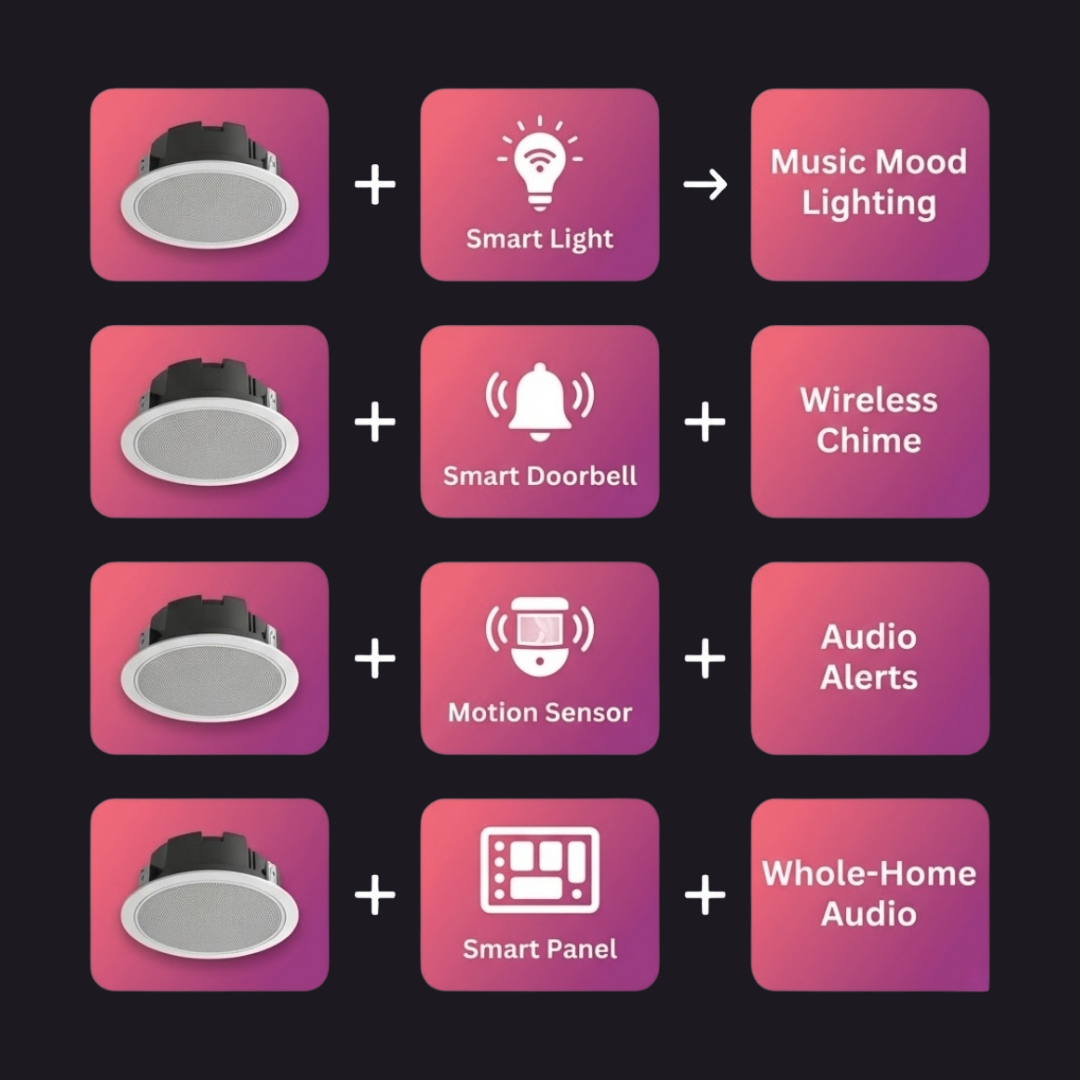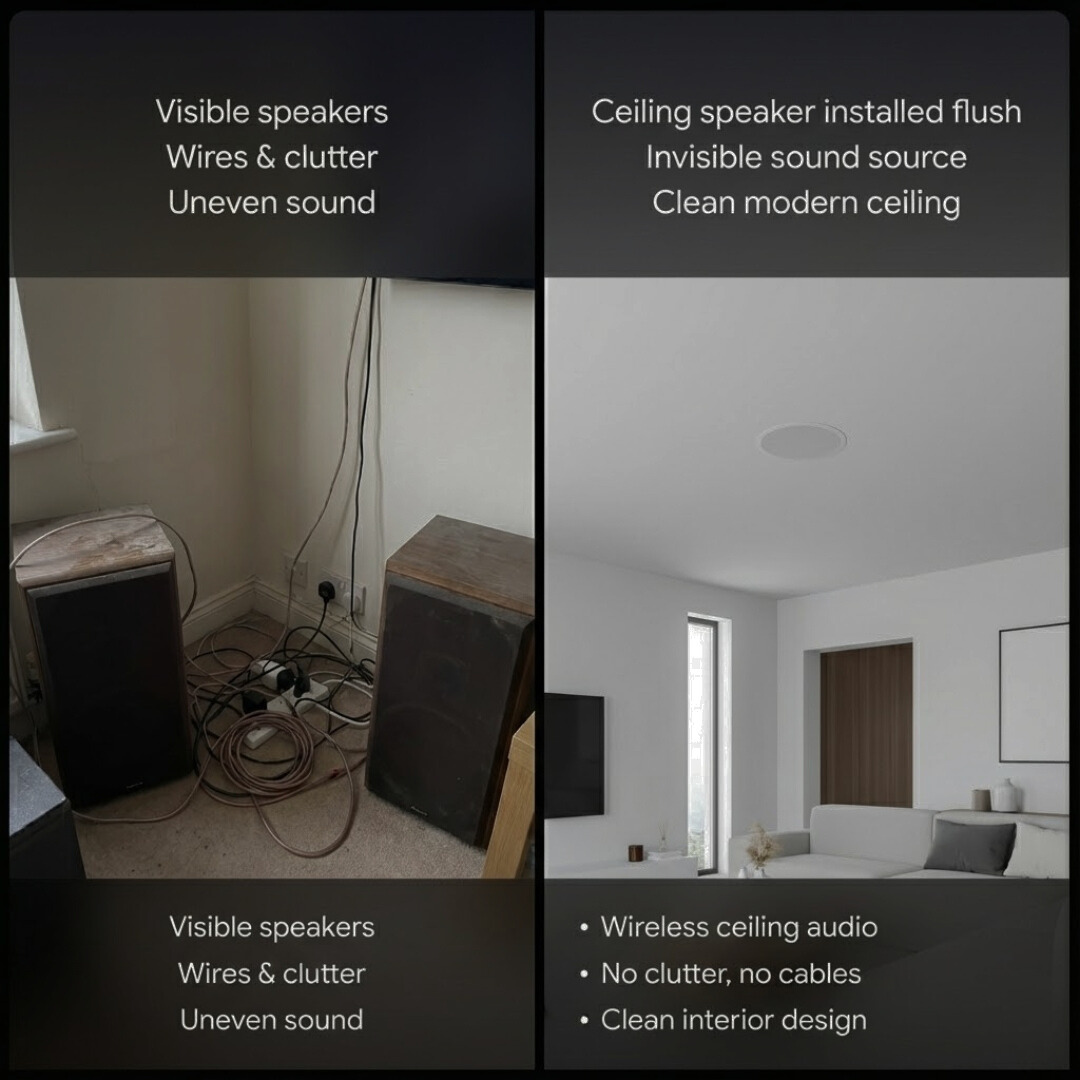 Install these flush-mount speakers in your ceiling to enjoy full-range audio that disappears into your décor, eliminating the need for bulky floor speakers or visible wires.