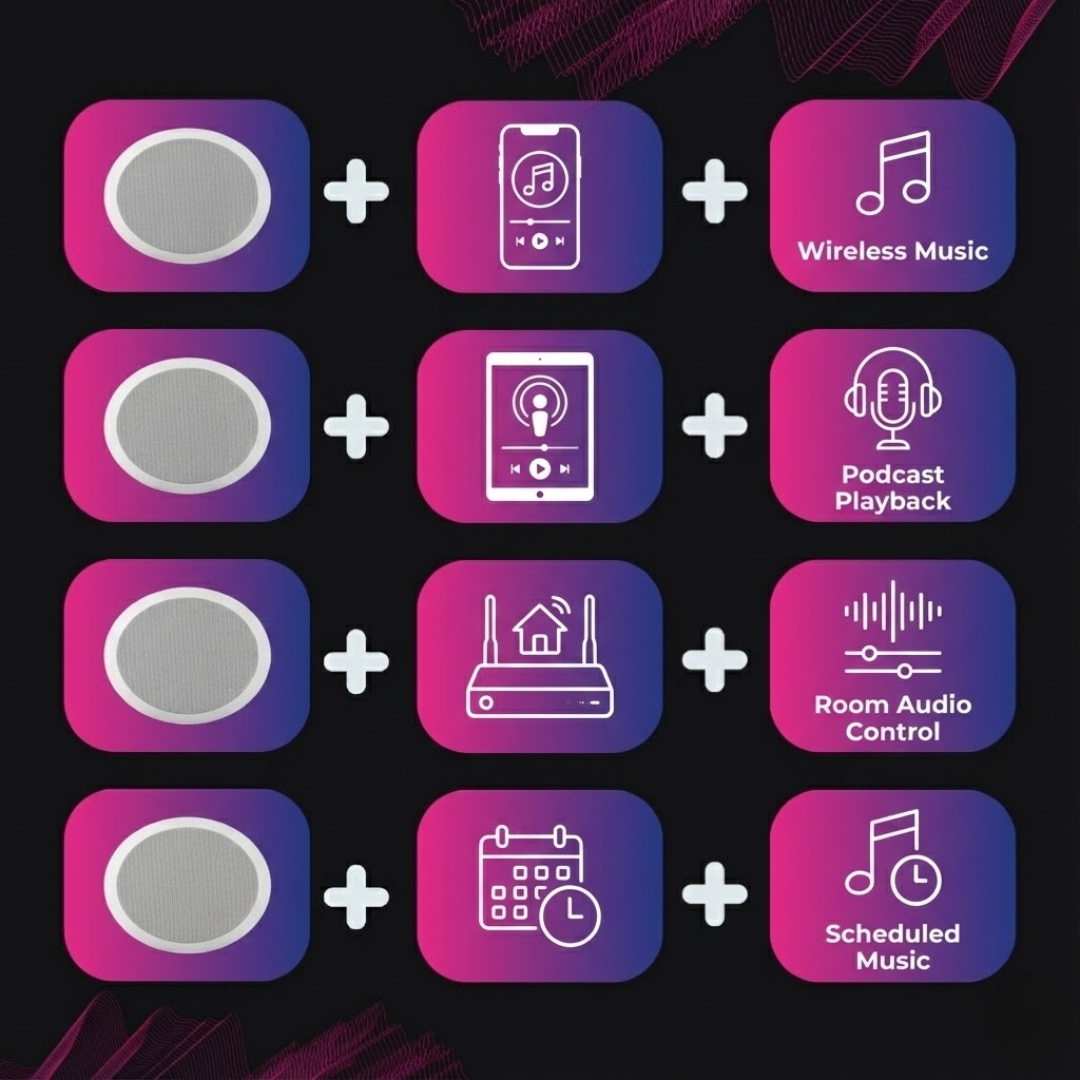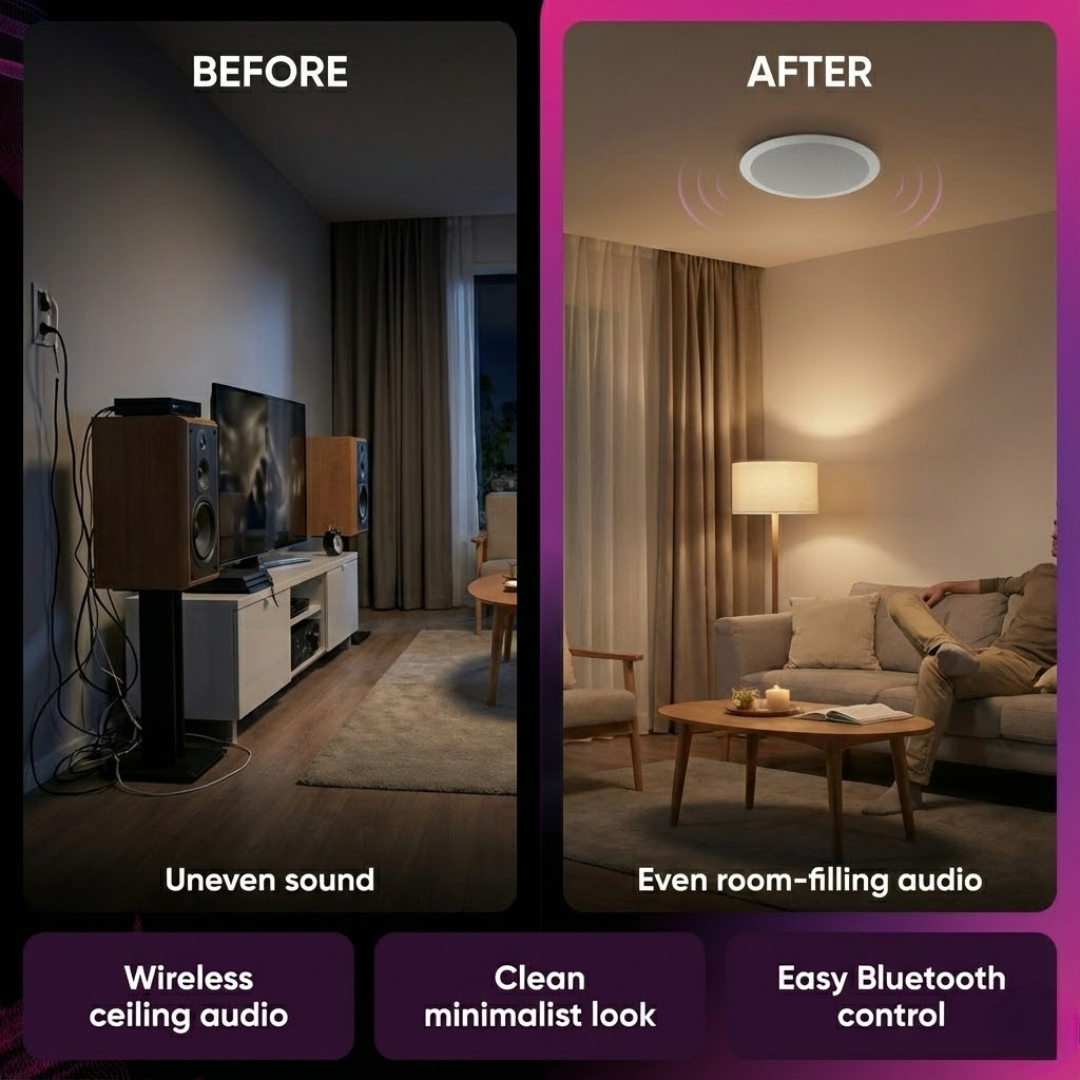Music follows you through every room without a single visible speaker. Your ceiling becomes an invisible symphony that responds to your every mood.