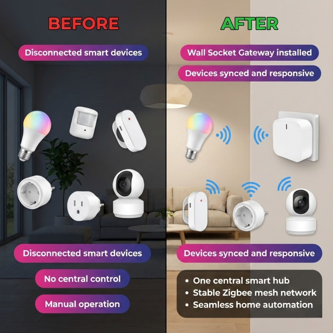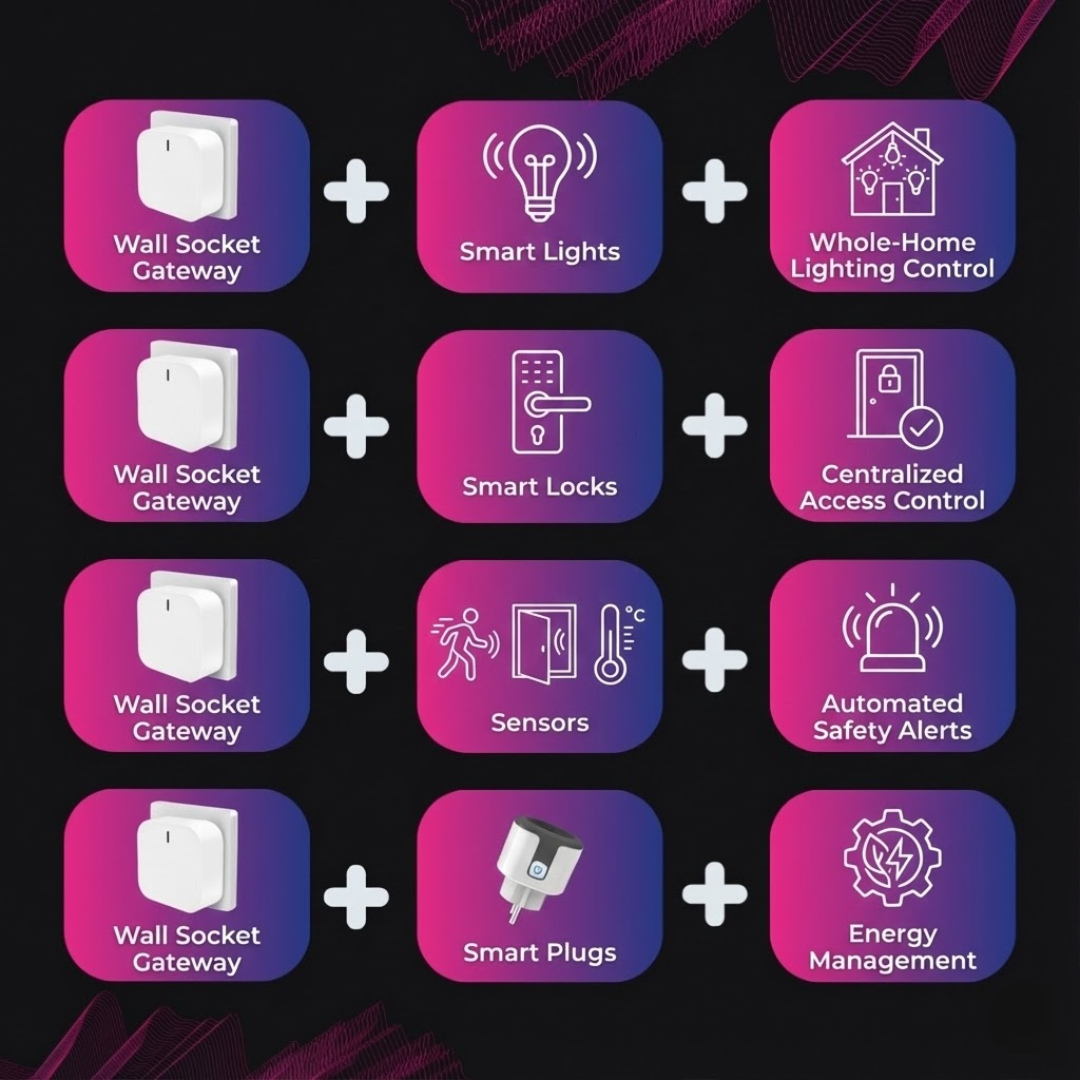 Transform any wall outlet into your home's command center. Wall socket Gateway brings intelligence to every room.