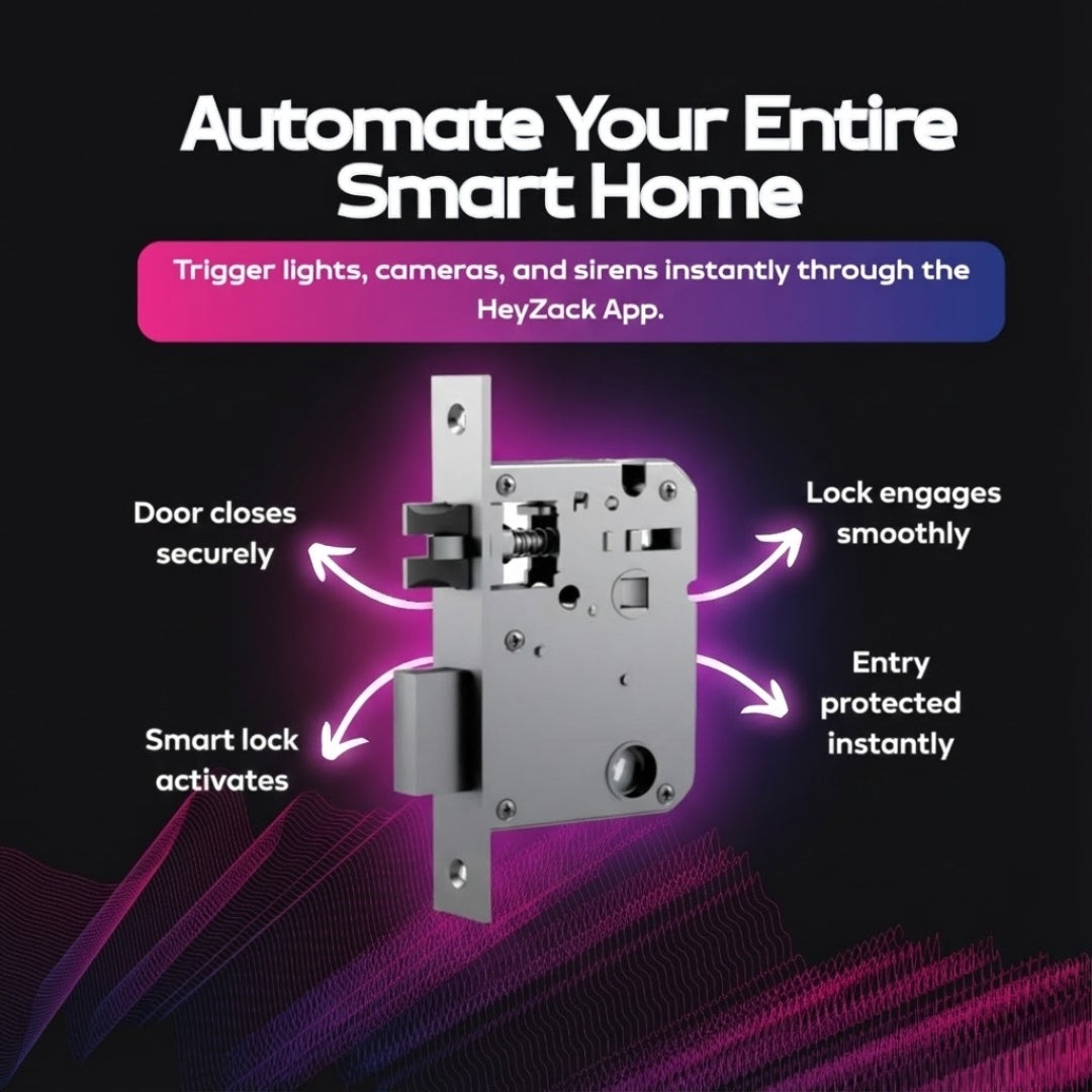 Control lights, locks, climate, and scenes from anywhere with the HeyZack Smart Control app — free on iOS and Android.
