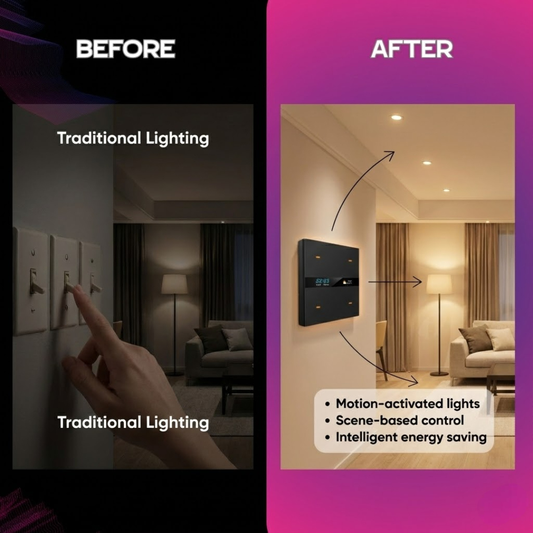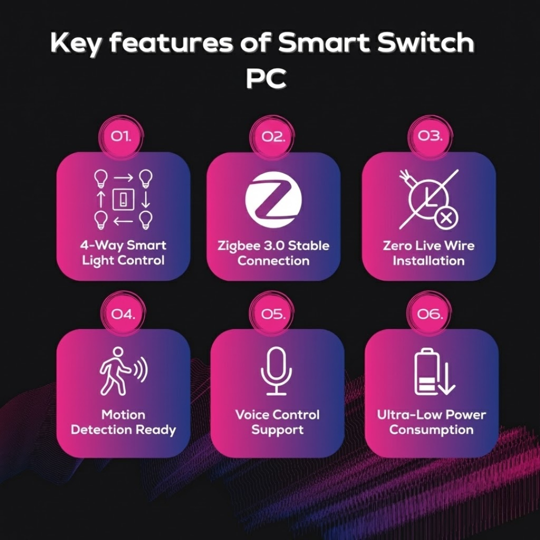 Transform any space into a responsive, connected room with one sleek wall tap. Smart switch PC puts instant command of lights, fans, and outlets at your fingertips.