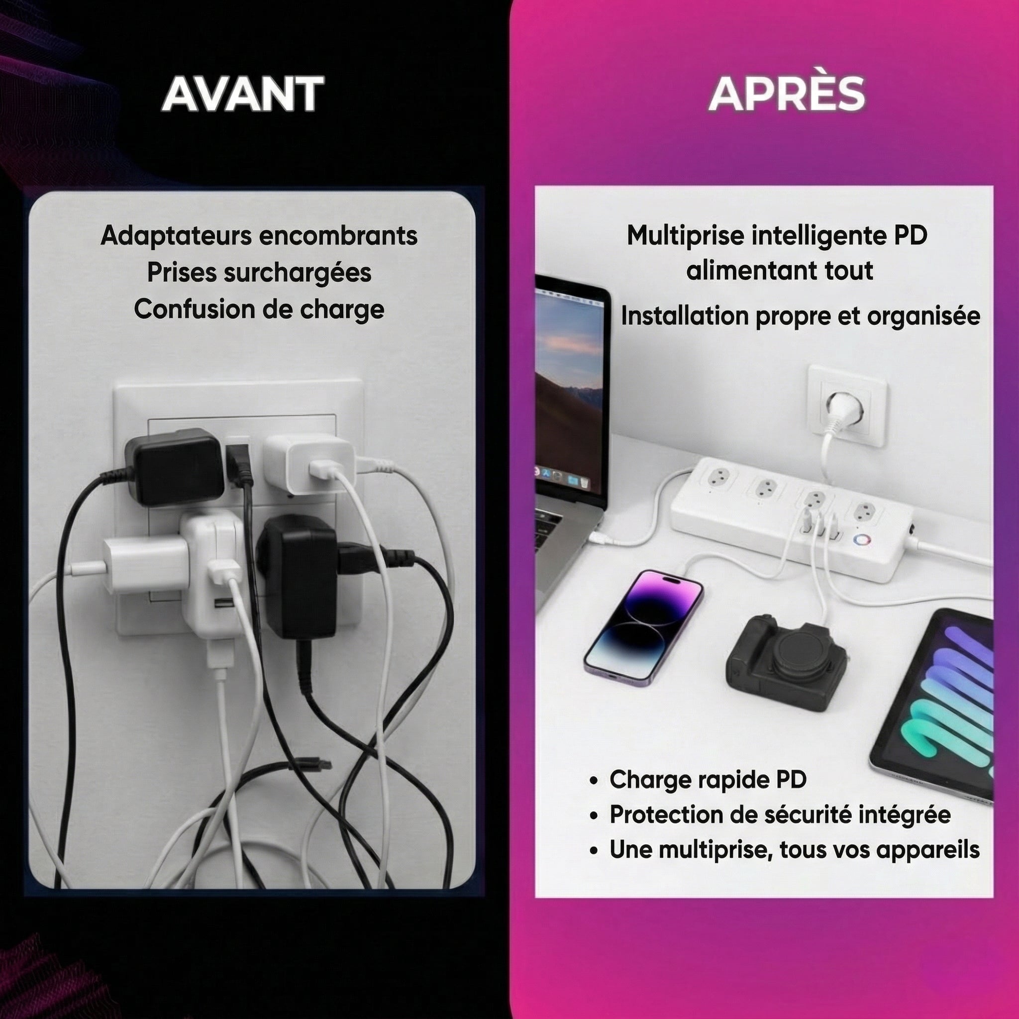 La multiprise intelligente PD transforme chaque prise en une station de recharge intelligente qui fonctionne exactement quand vous en avez besoin.