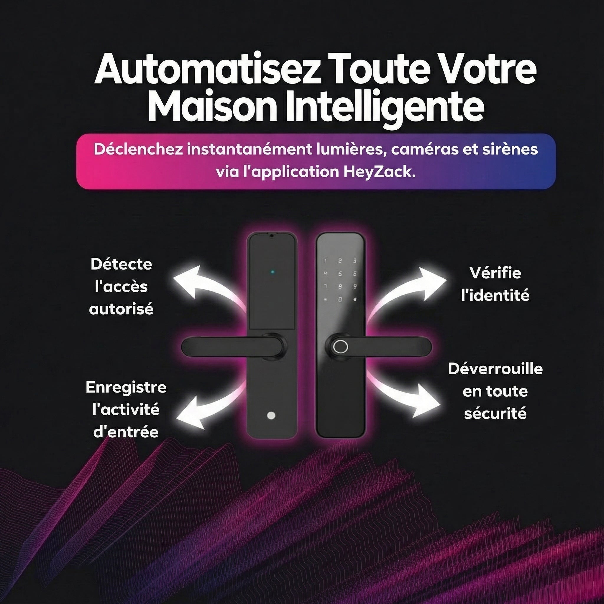 Contrôlez l'éclairage, les serrures, la climatisation et les scénarios depuis n'importe où grâce à l'application HeyZack Smart Control — gratuite sur iOS et Android.