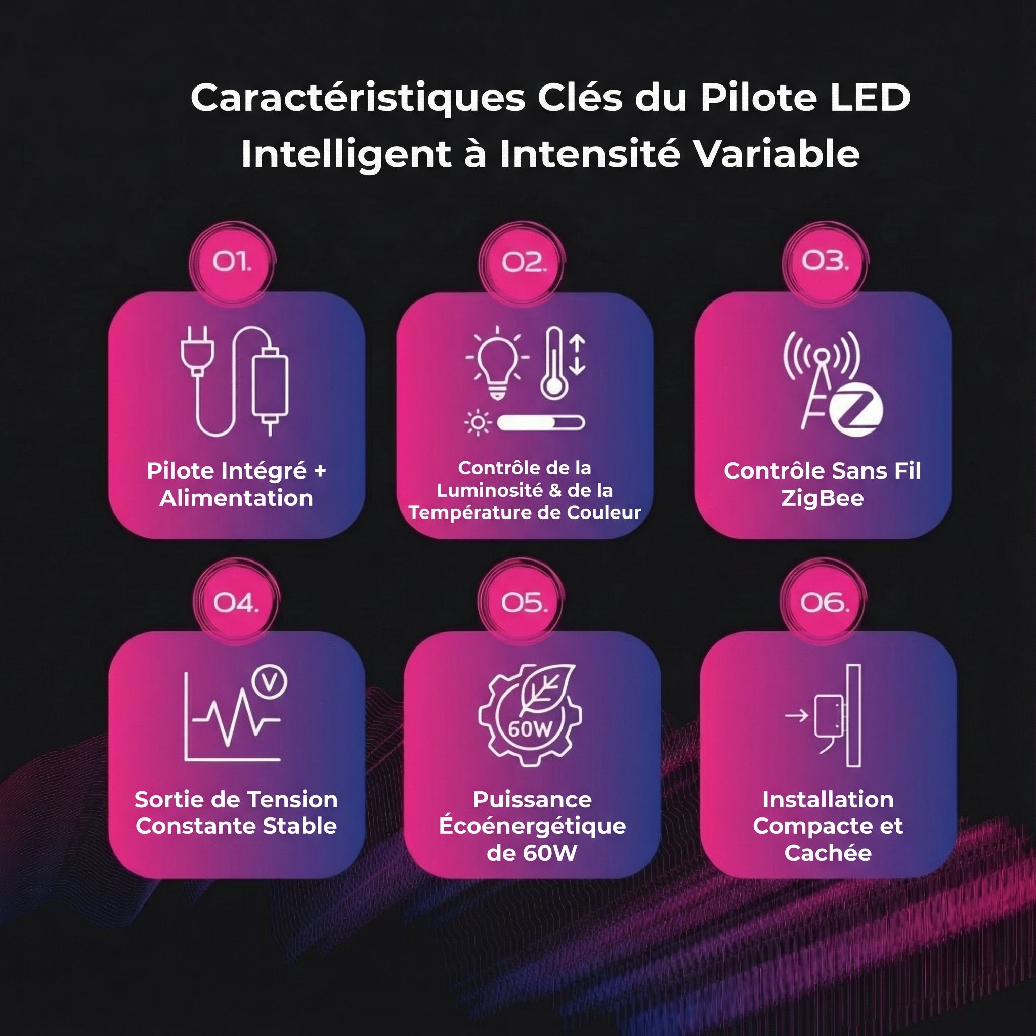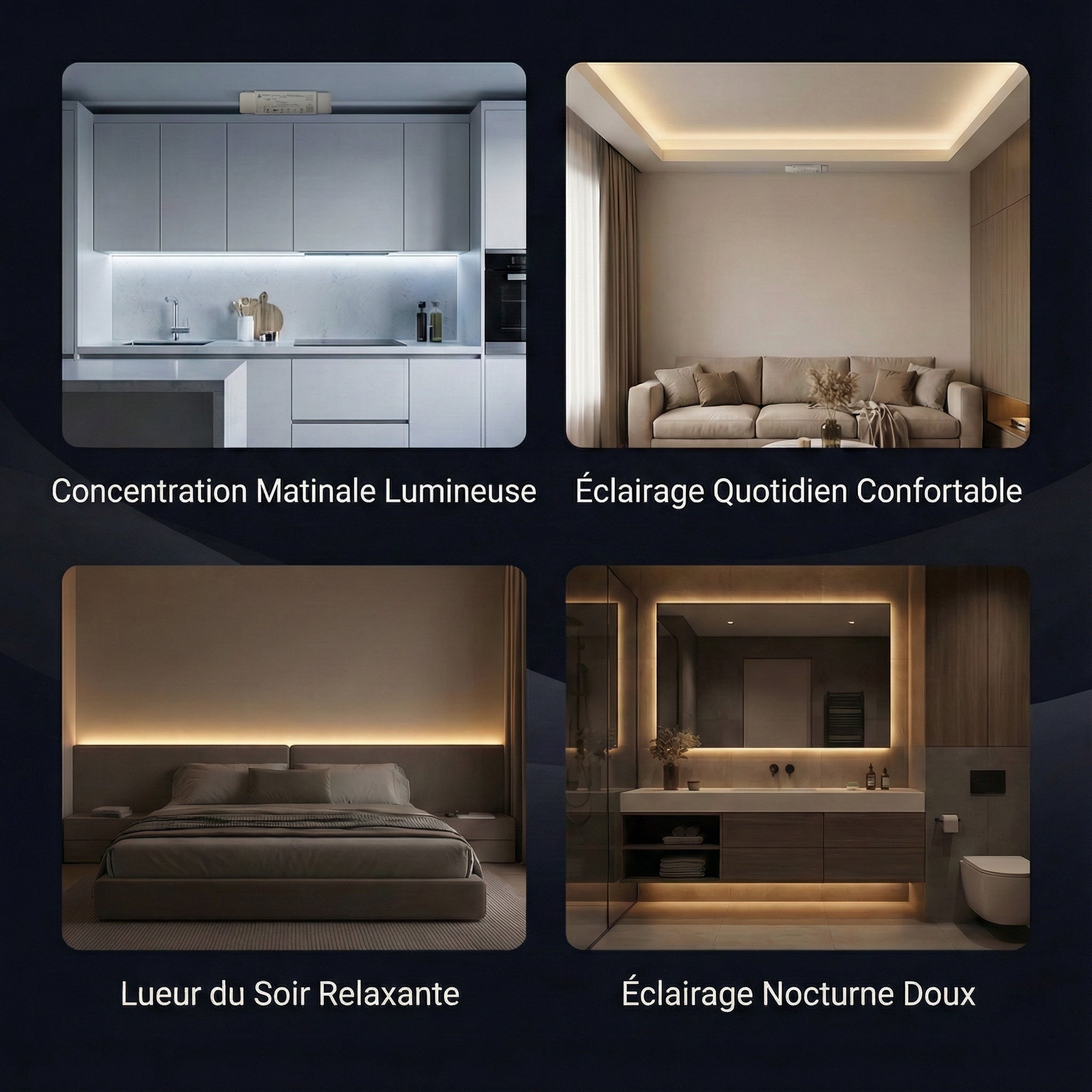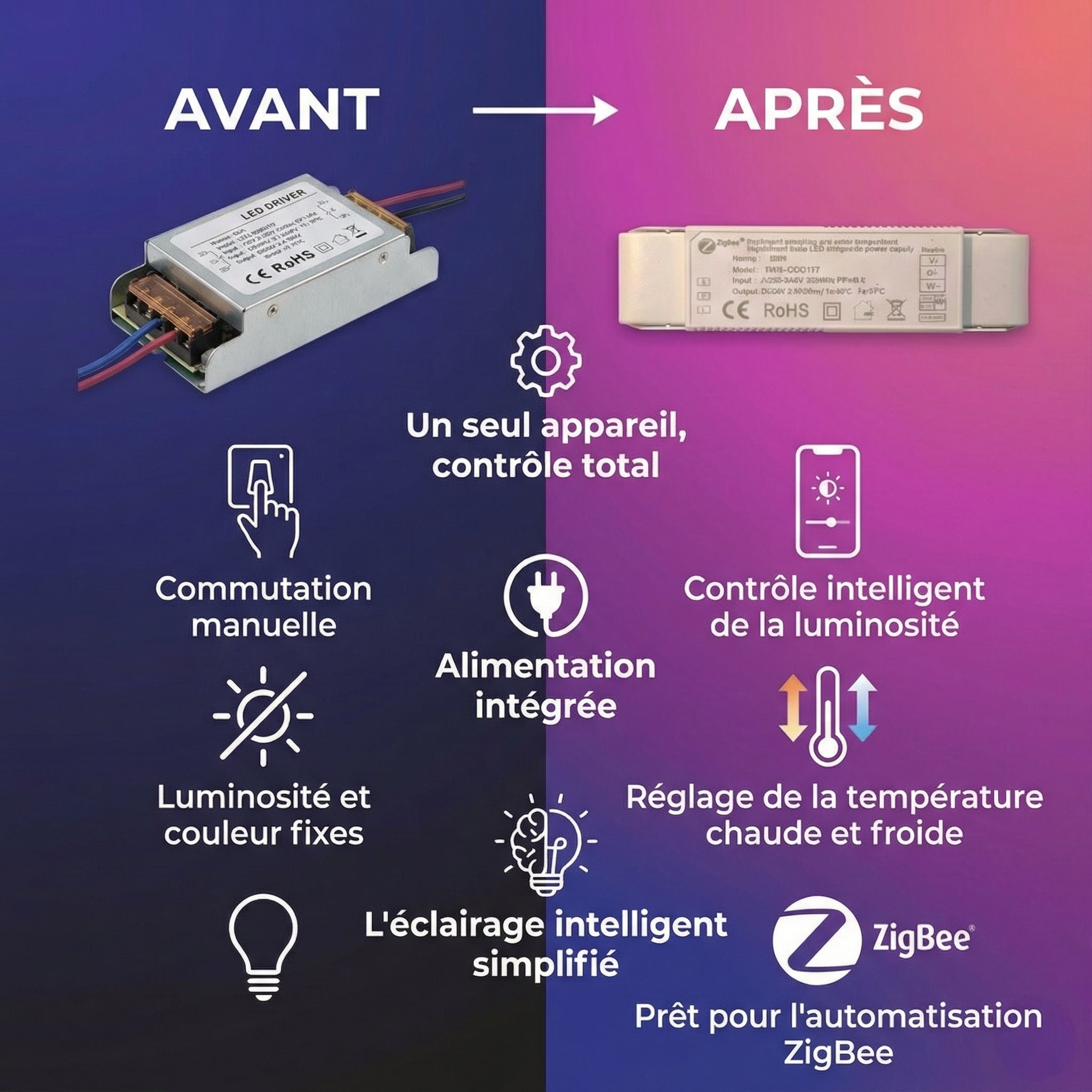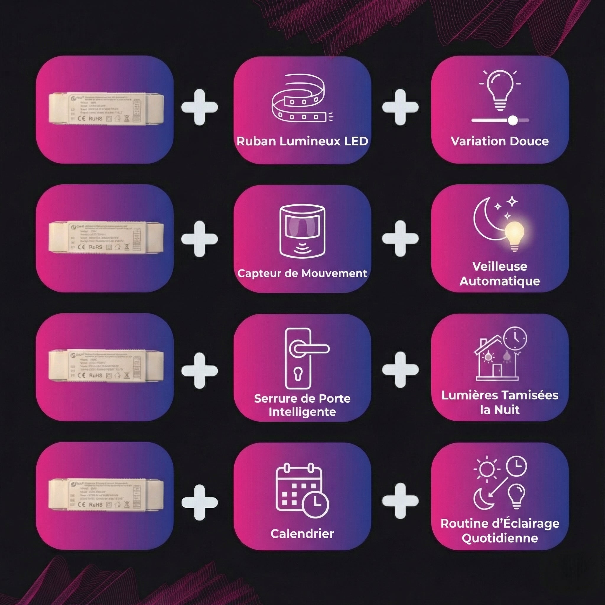 Pilote de bande lumineuse LED intelligent à intensité variable et alimentation 2 en 1