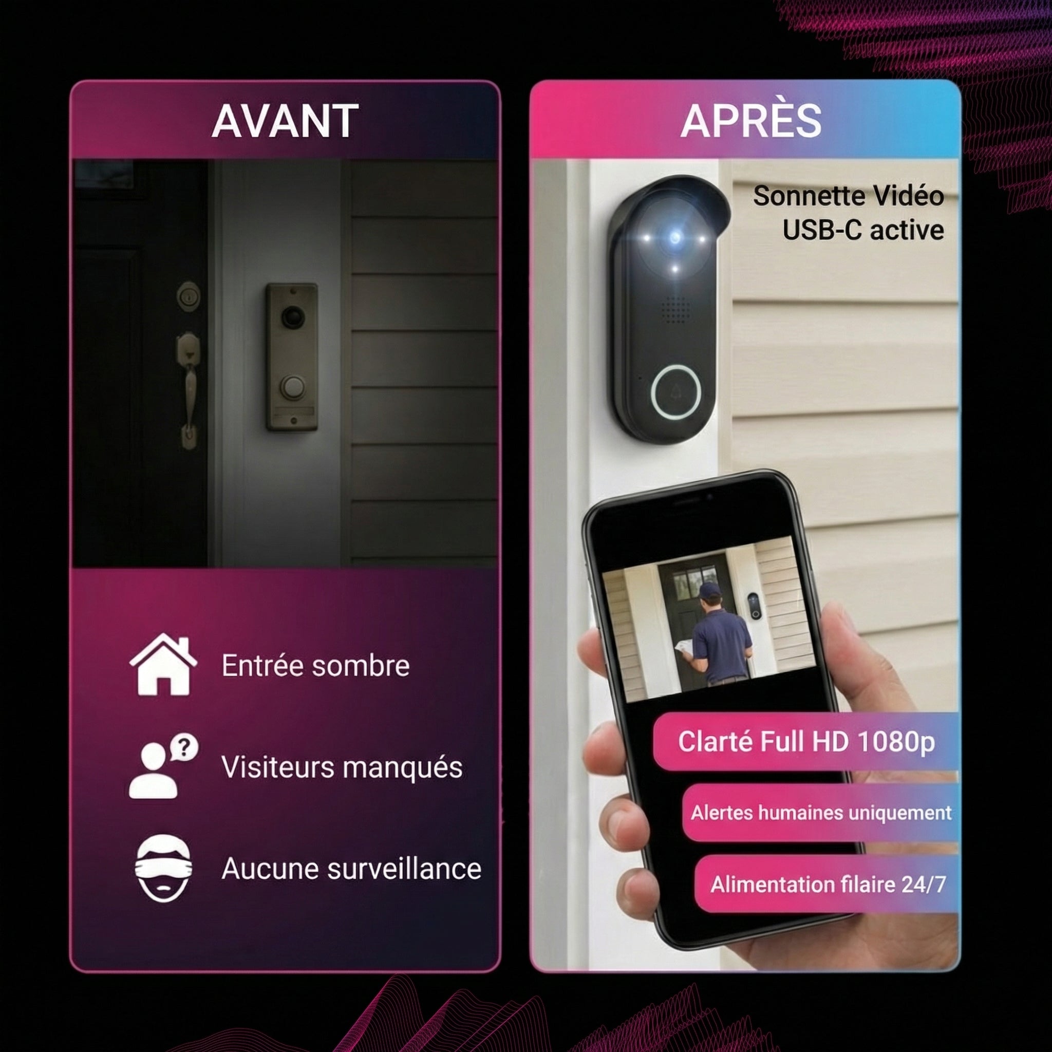 Observez chaque visiteur avant de répondre. Sachez que votre maison est protégée, jour et nuit.
