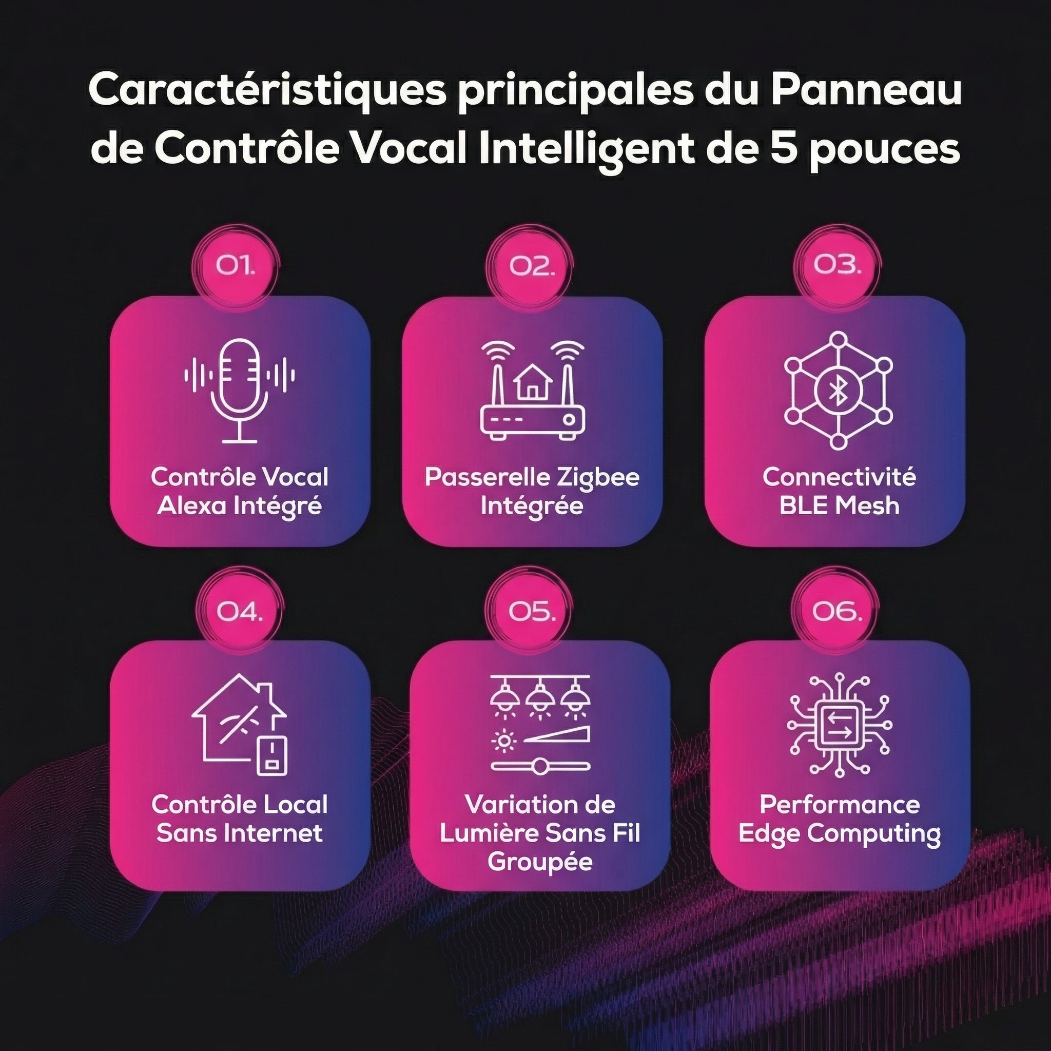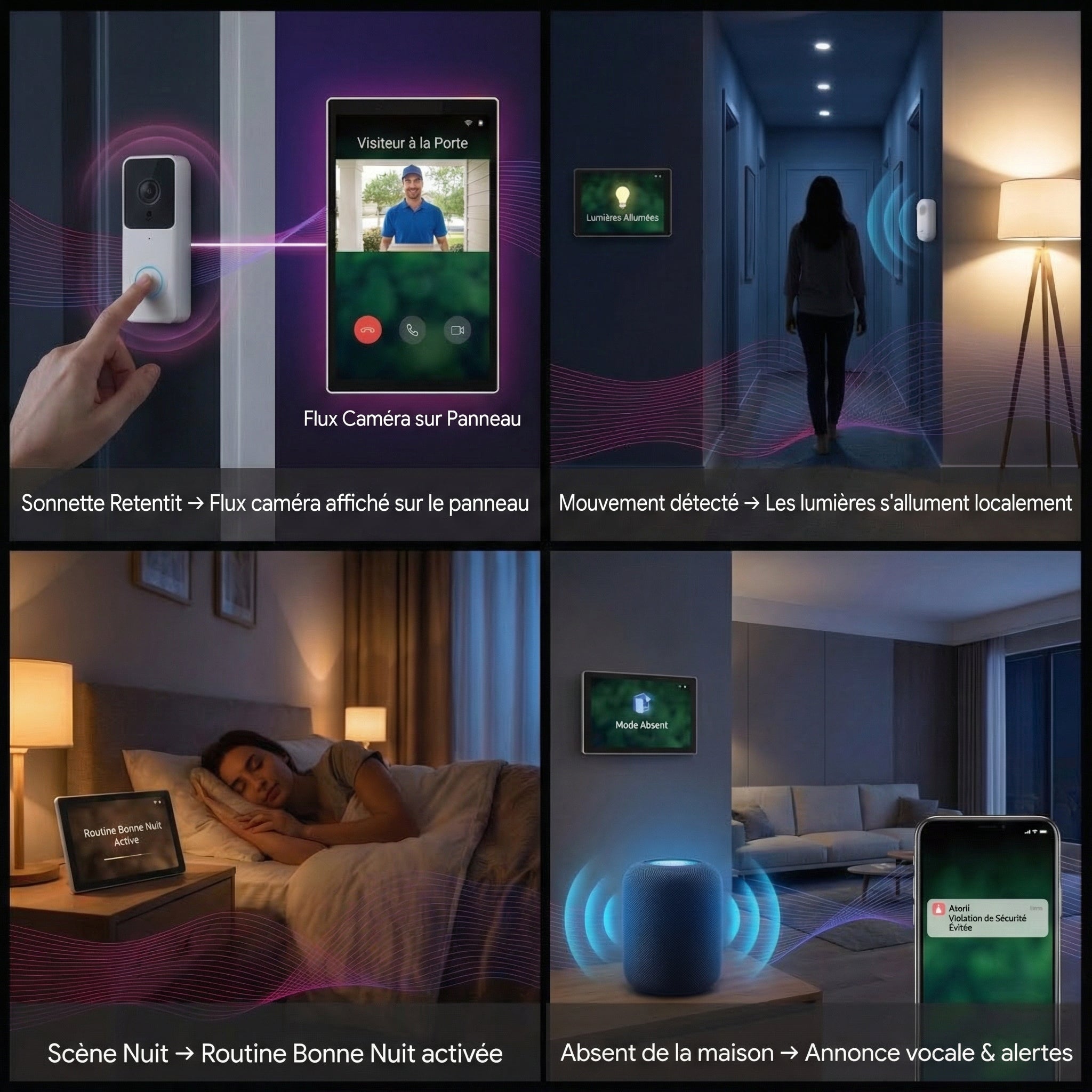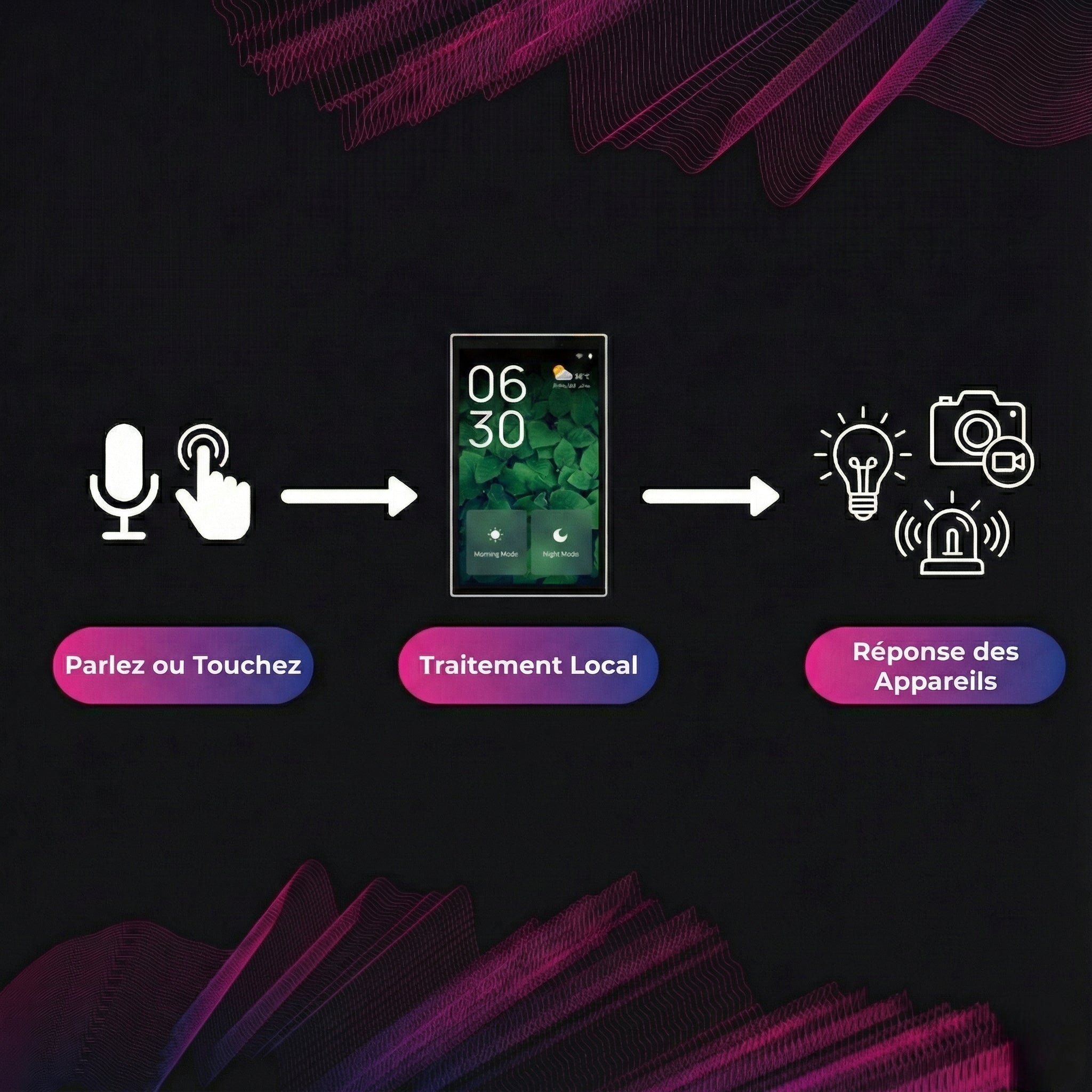 Contrôlez chaque pièce depuis un seul écran élégant. Votre maison entière répond désormais à vos commandes tactiles et vocales.