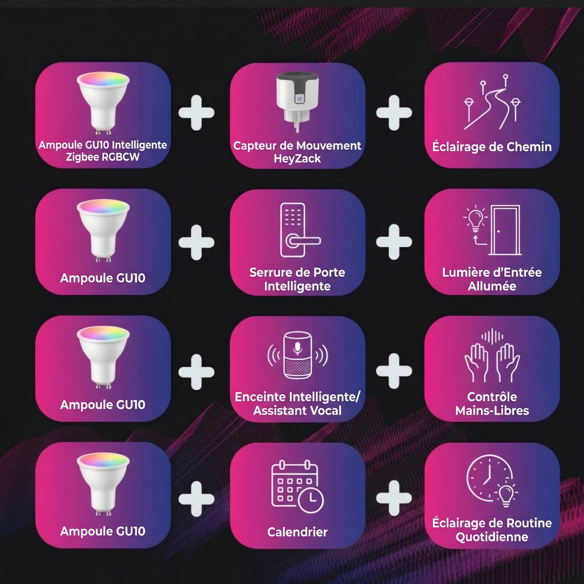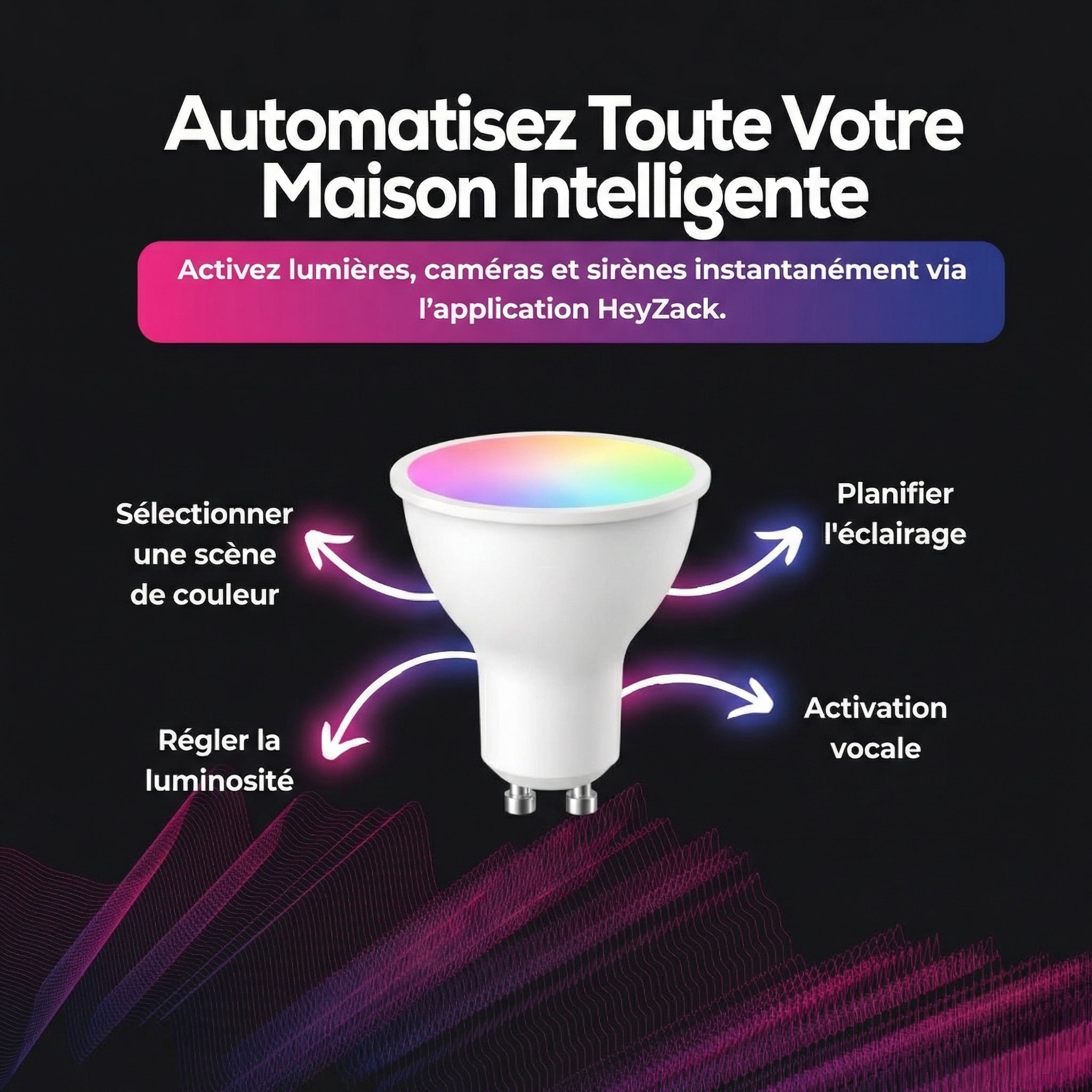 Contrôlez l'éclairage, les serrures, la climatisation et les scénarios depuis n'importe où grâce à l'application HeyZack Smart Control — gratuite sur iOS et Android.