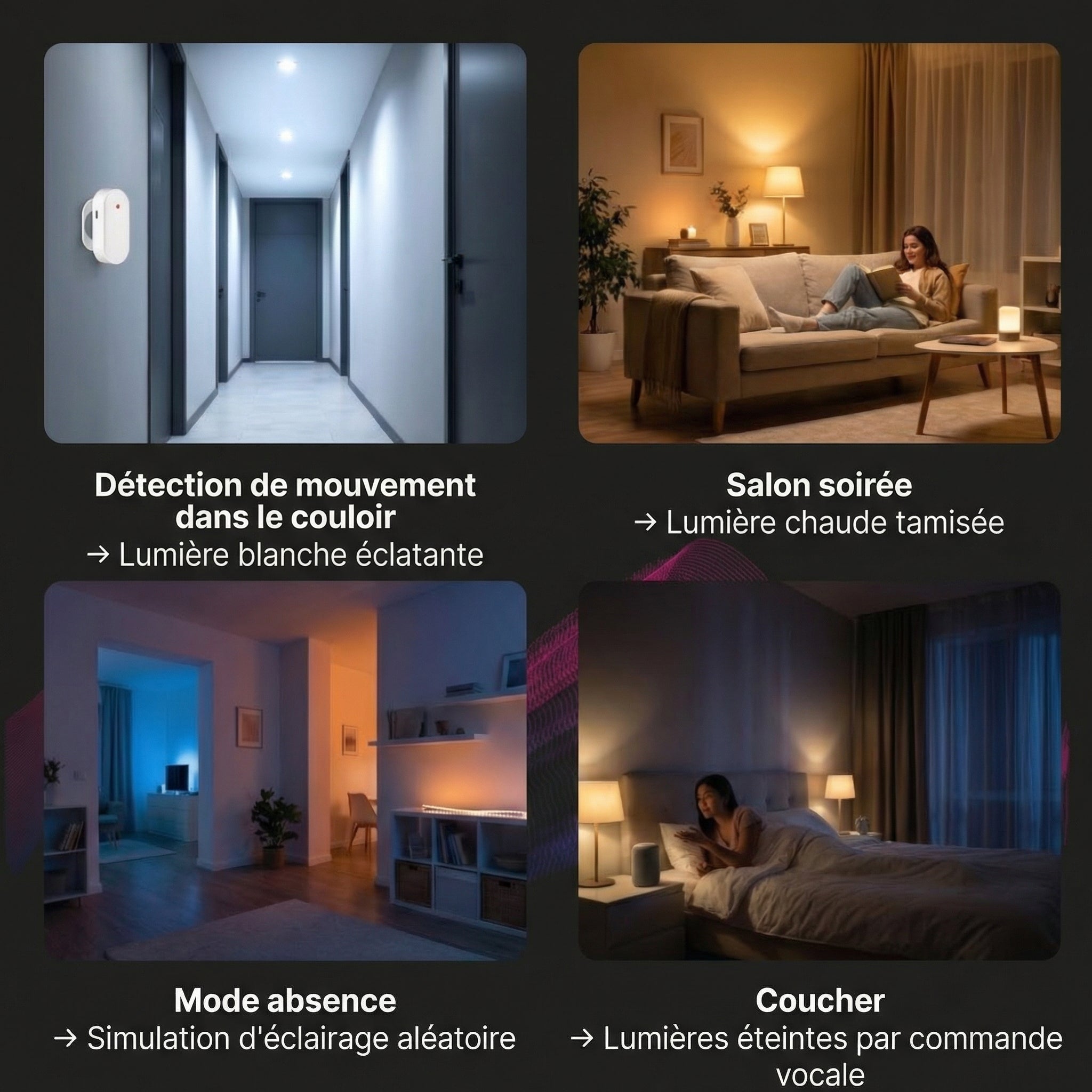 • Créez des programmes d'éclairage automatisés qui vous accueillent chaque jour à votre retour à la maison.