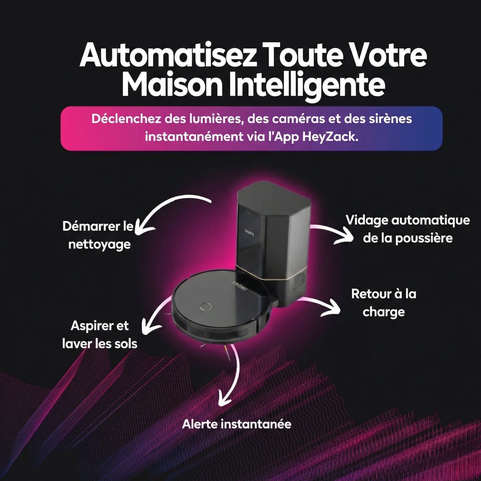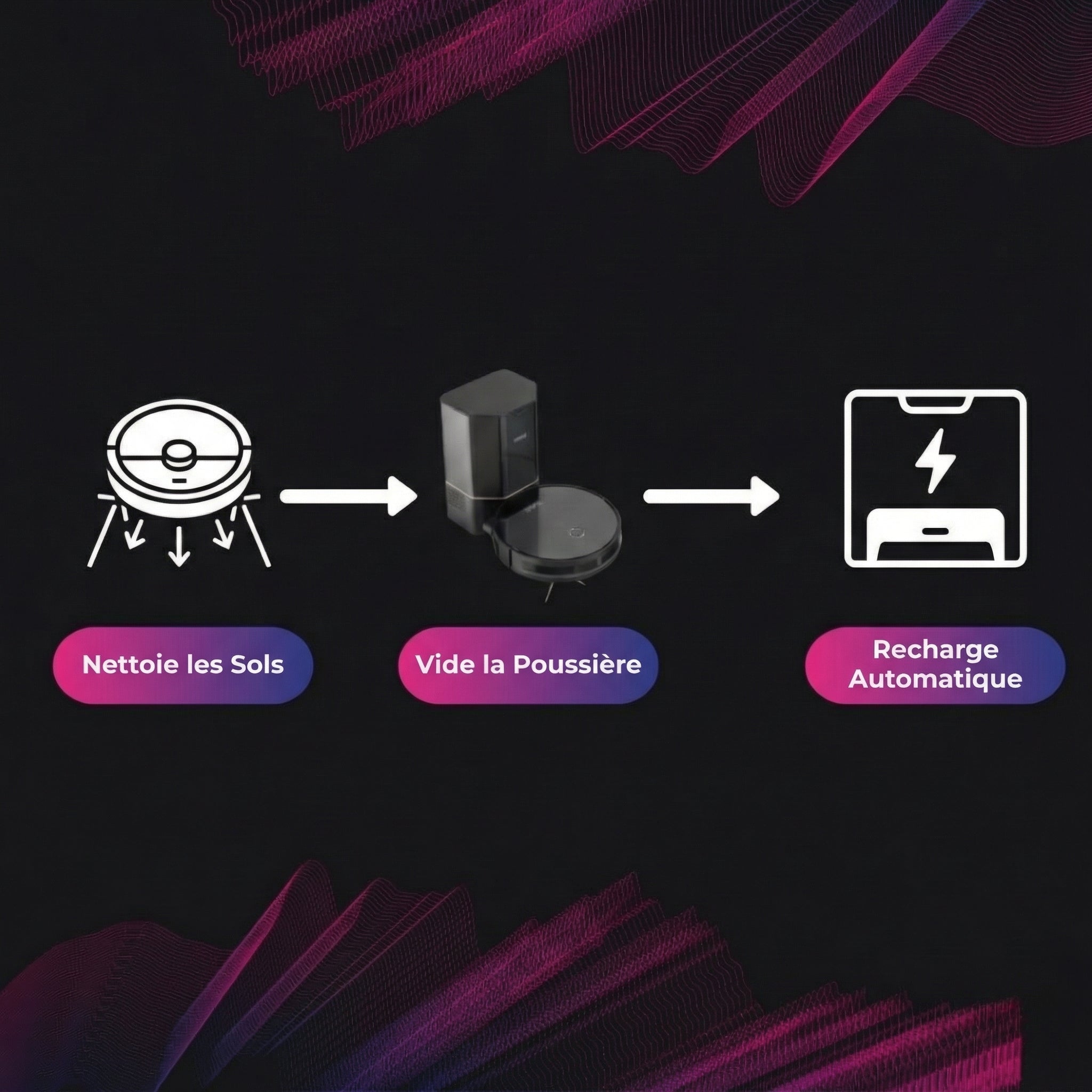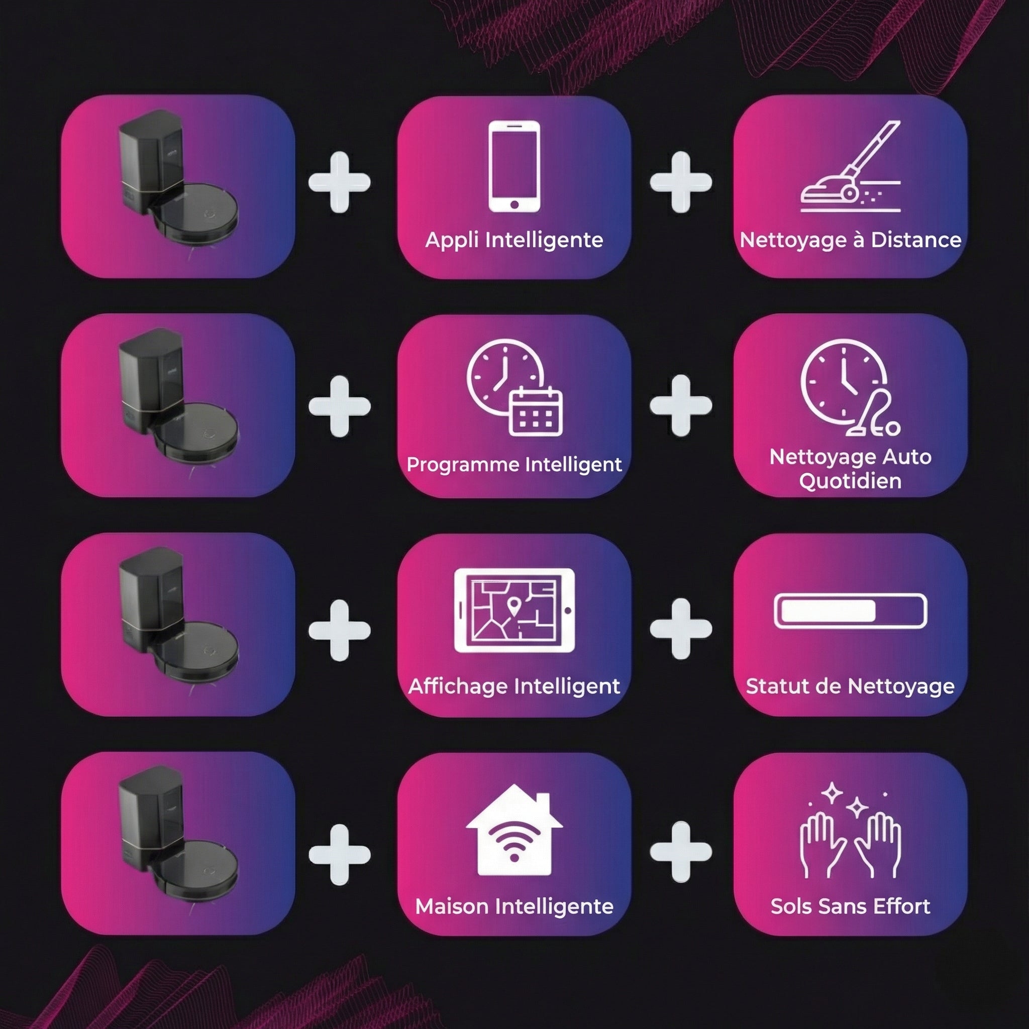 • La navigation intelligente cartographie votre maison pour une couverture complète sans zones oubliées.