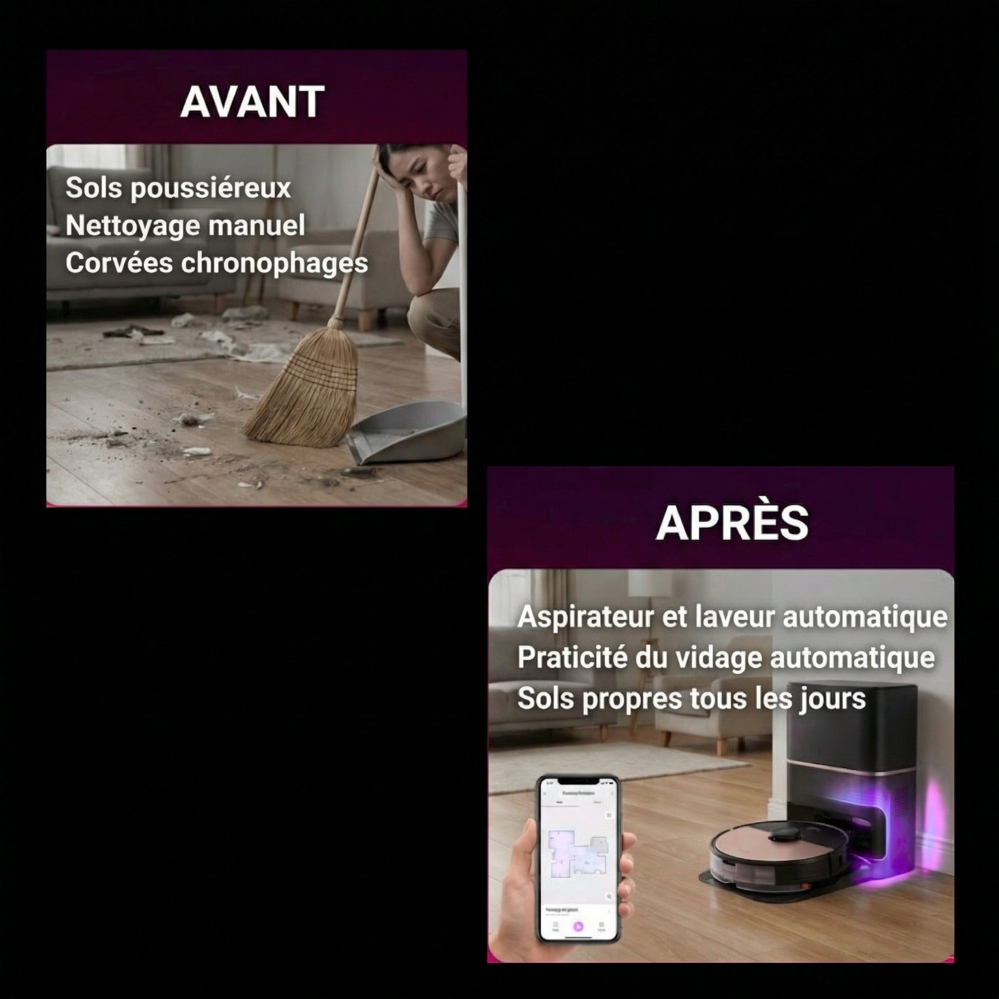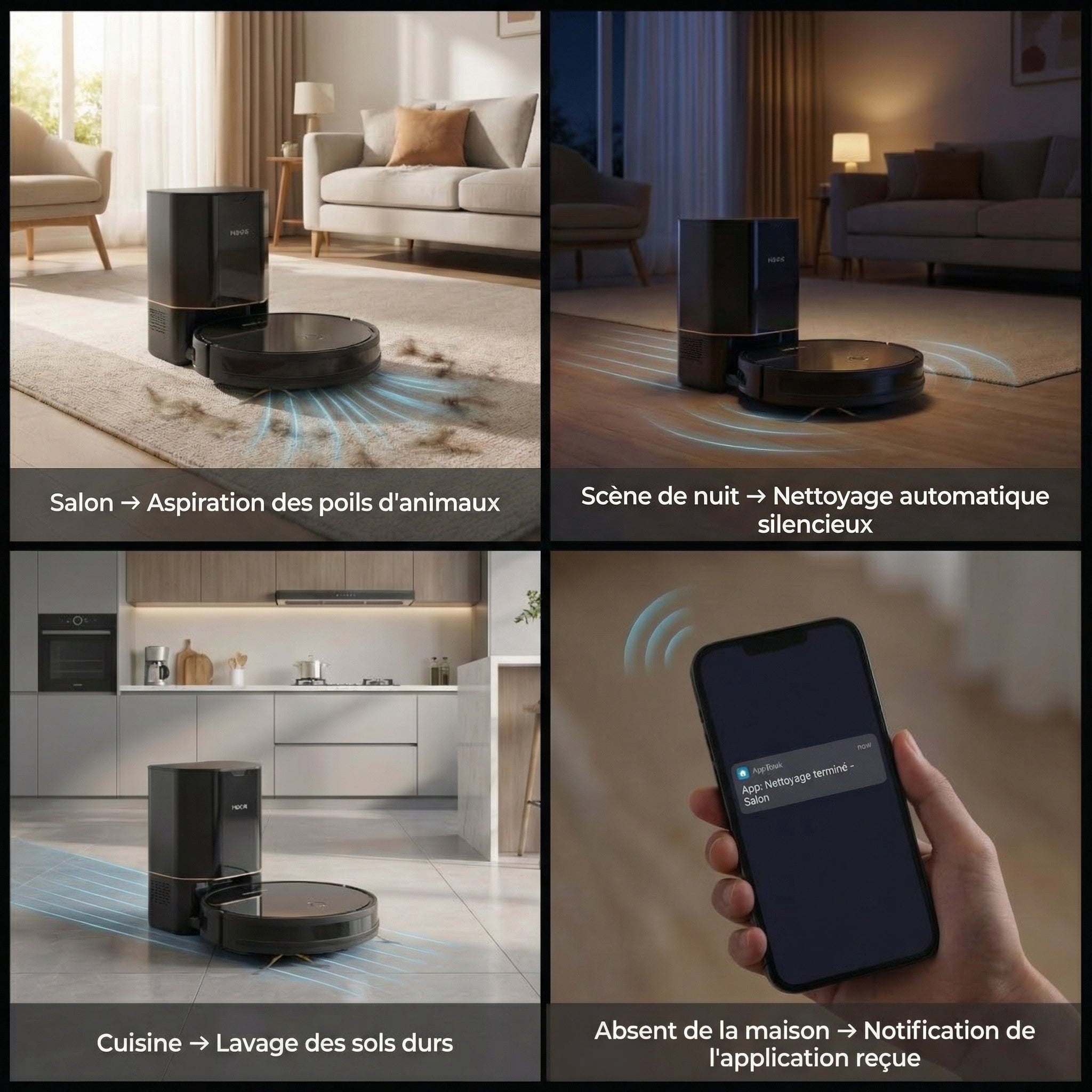 • Un nettoyage régulier permet de garder les sols impeccables même en votre absence.