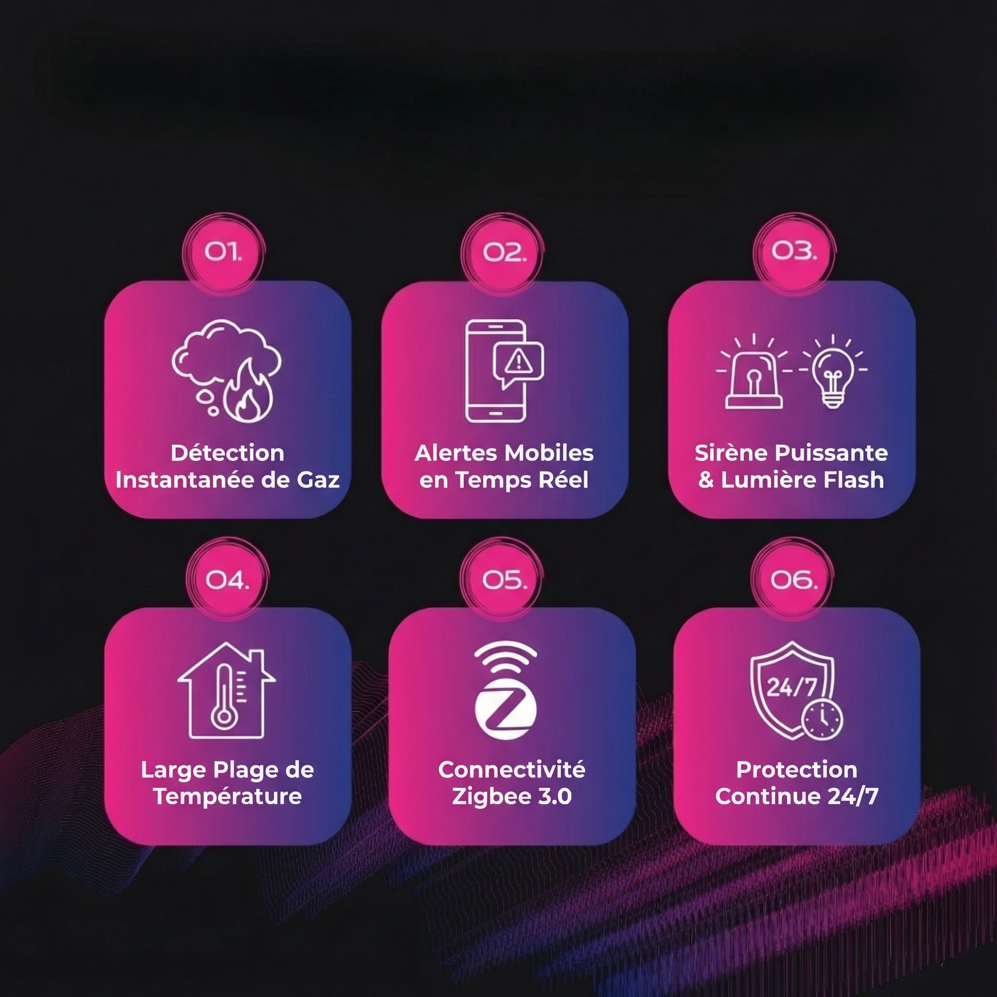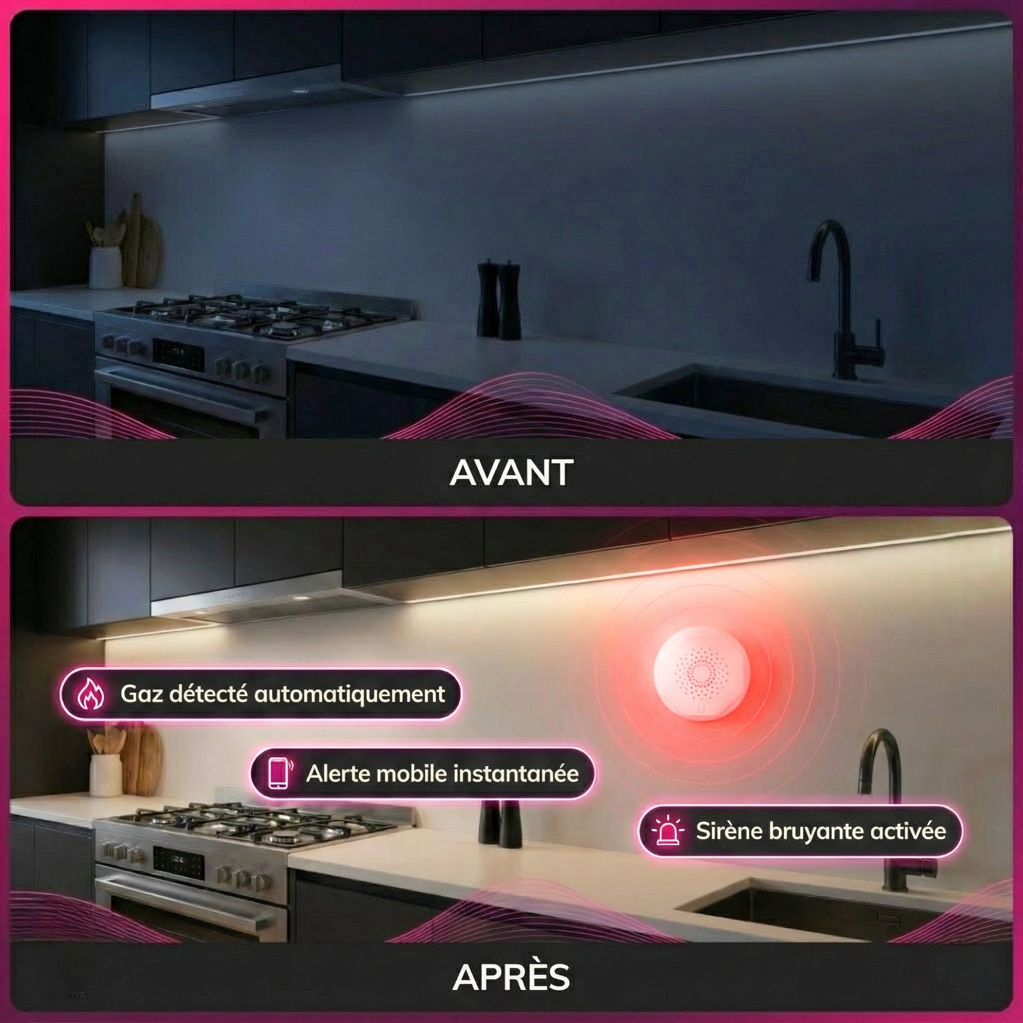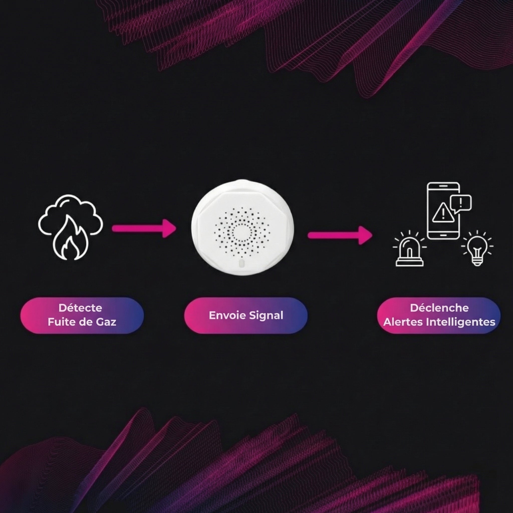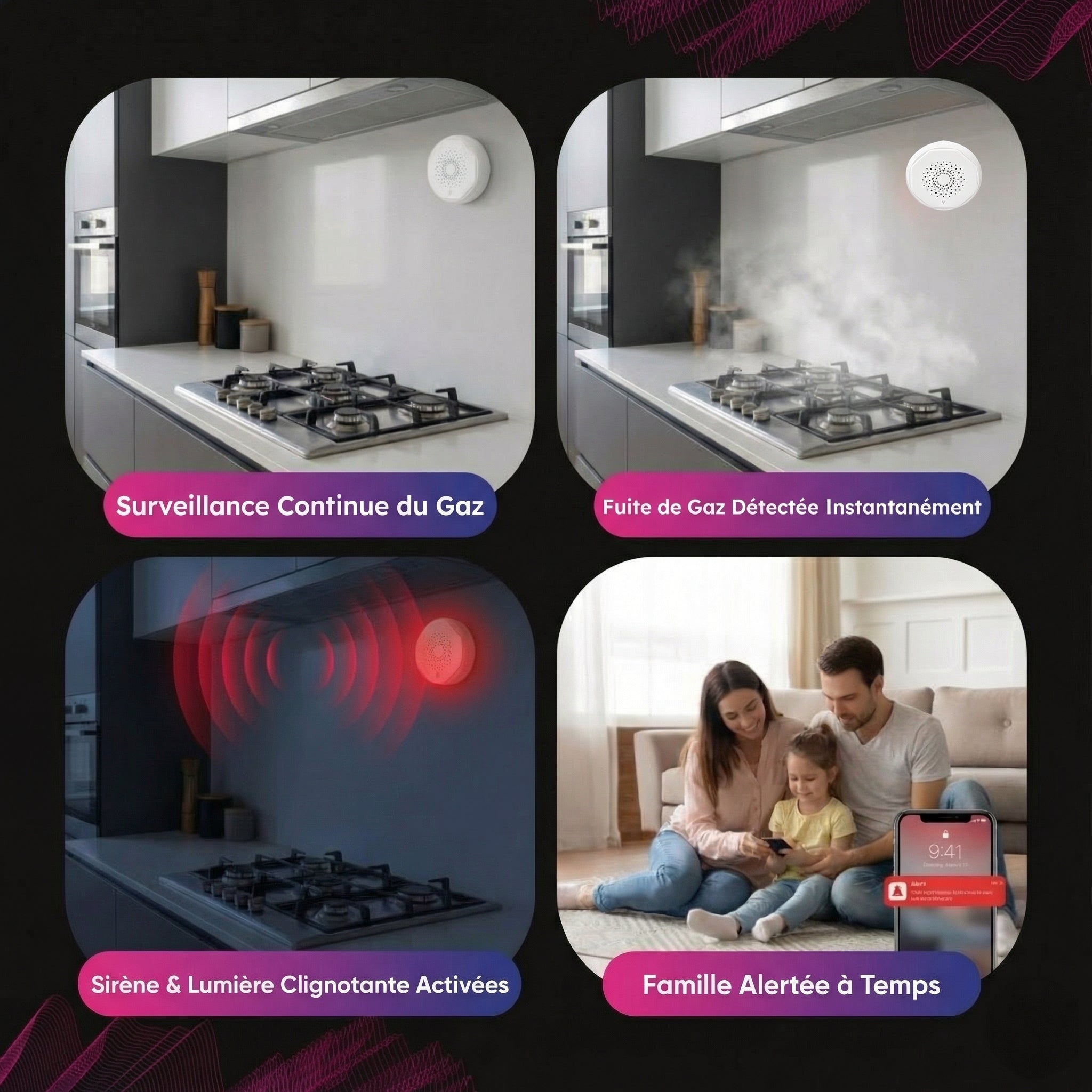 Respirez en toute tranquillité, votre maison est toujours protégée. Le détecteur de gaz intelligent transforme un danger silencieux en alerte instantanée.