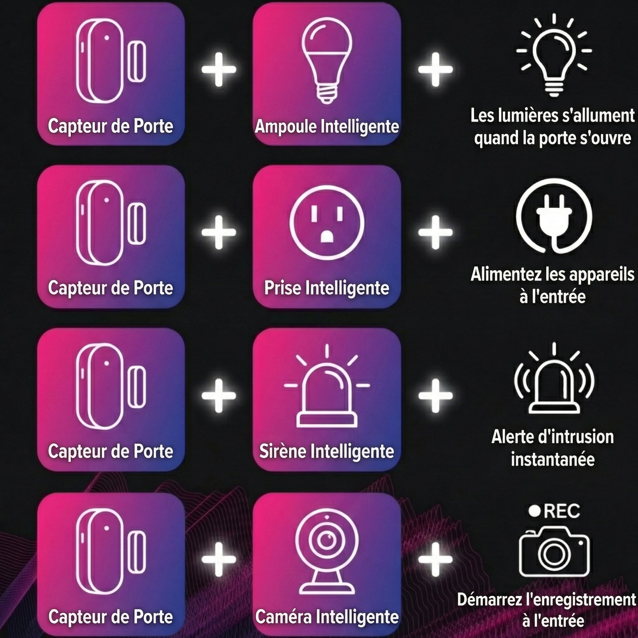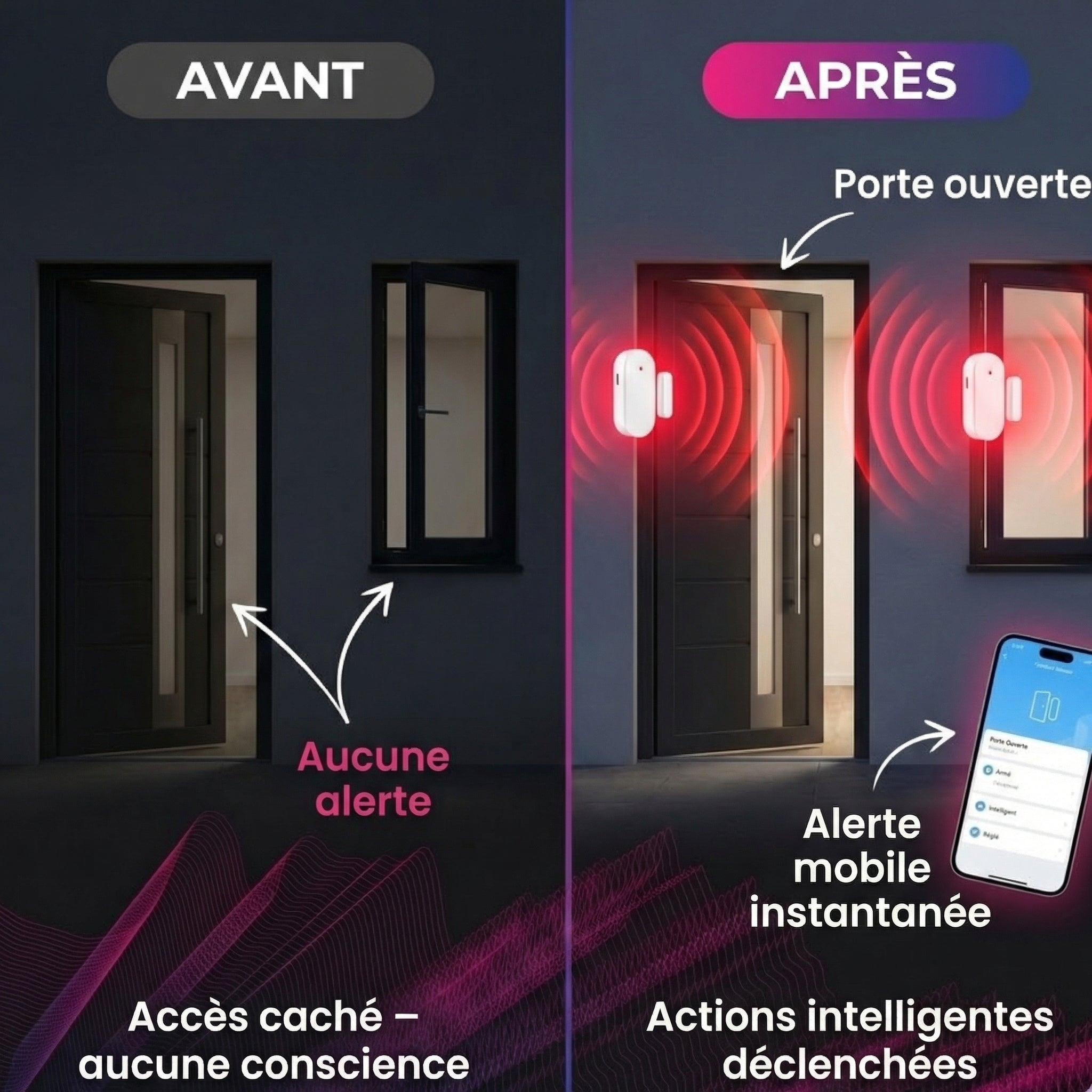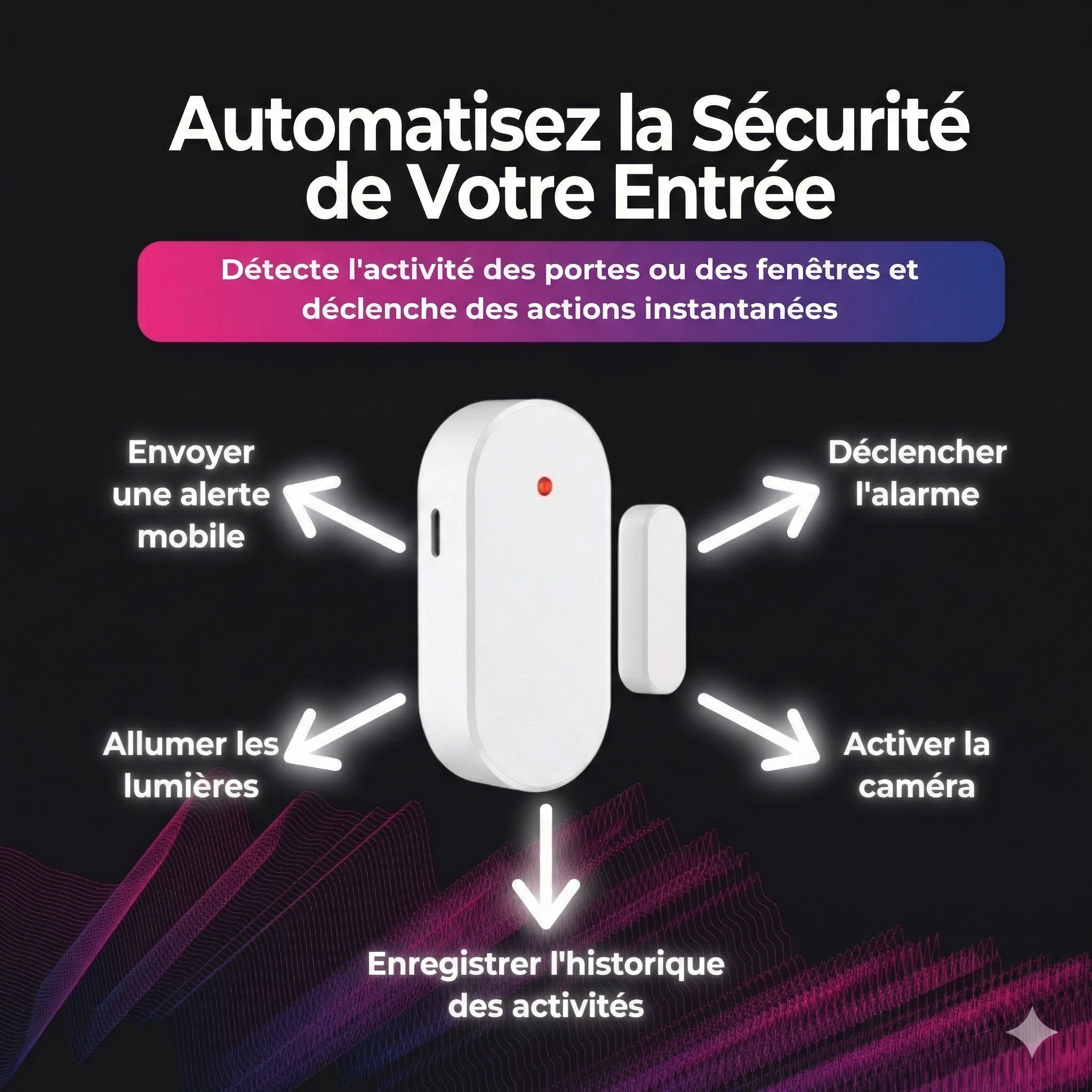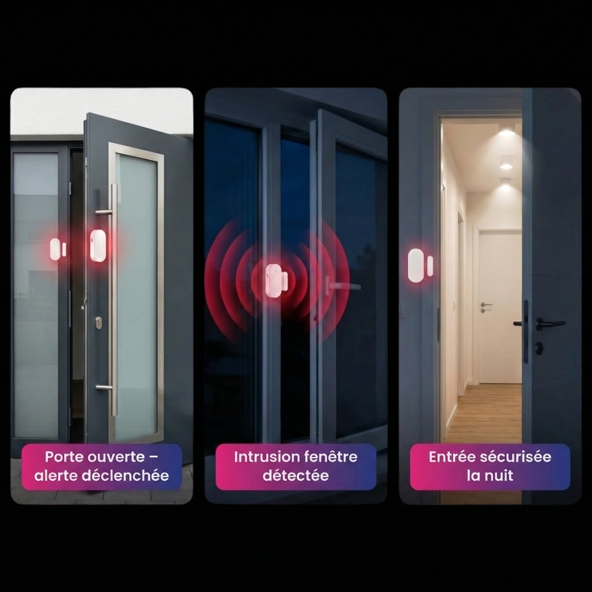 • Alertes instantanées en cas d'ouverture inattendue de portes ou de fenêtres.