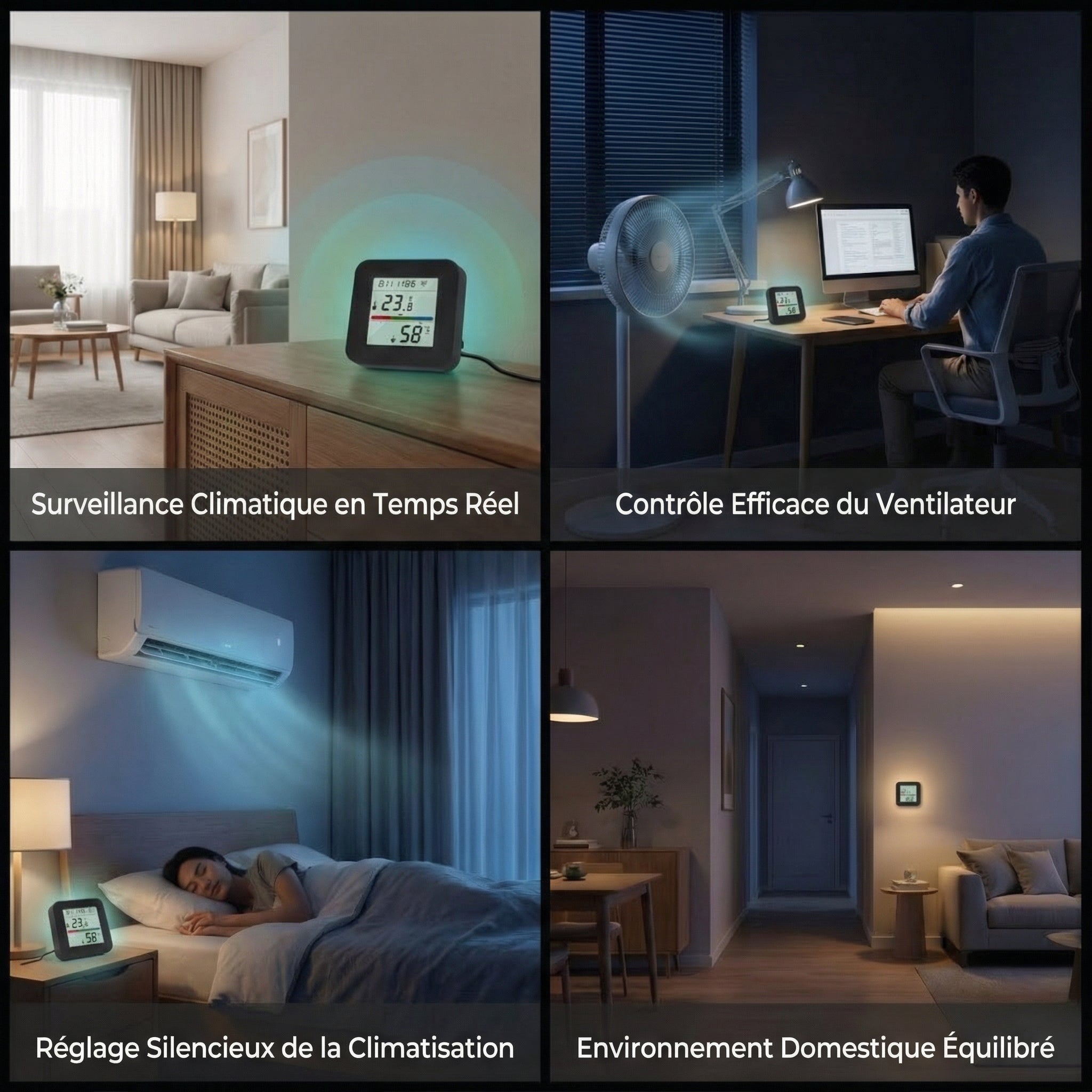 • Alerte les déshumidificateurs intelligents lorsque l'humidité dépasse les seuils définis pour une intervention rapide