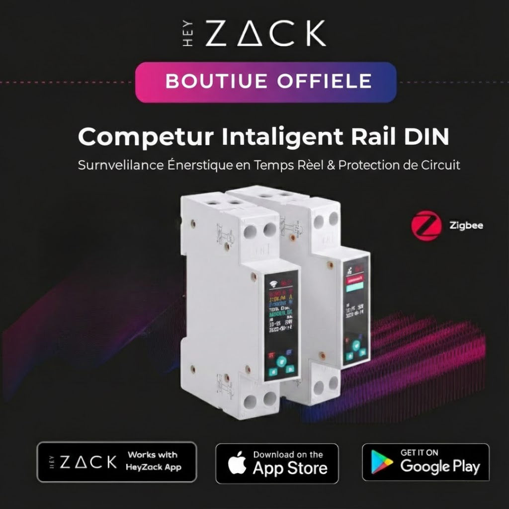 Contrôlez l'éclairage, les serrures, la climatisation et les scénarios depuis n'importe où grâce à l'application HeyZack Smart Control — gratuite sur iOS et Android.
