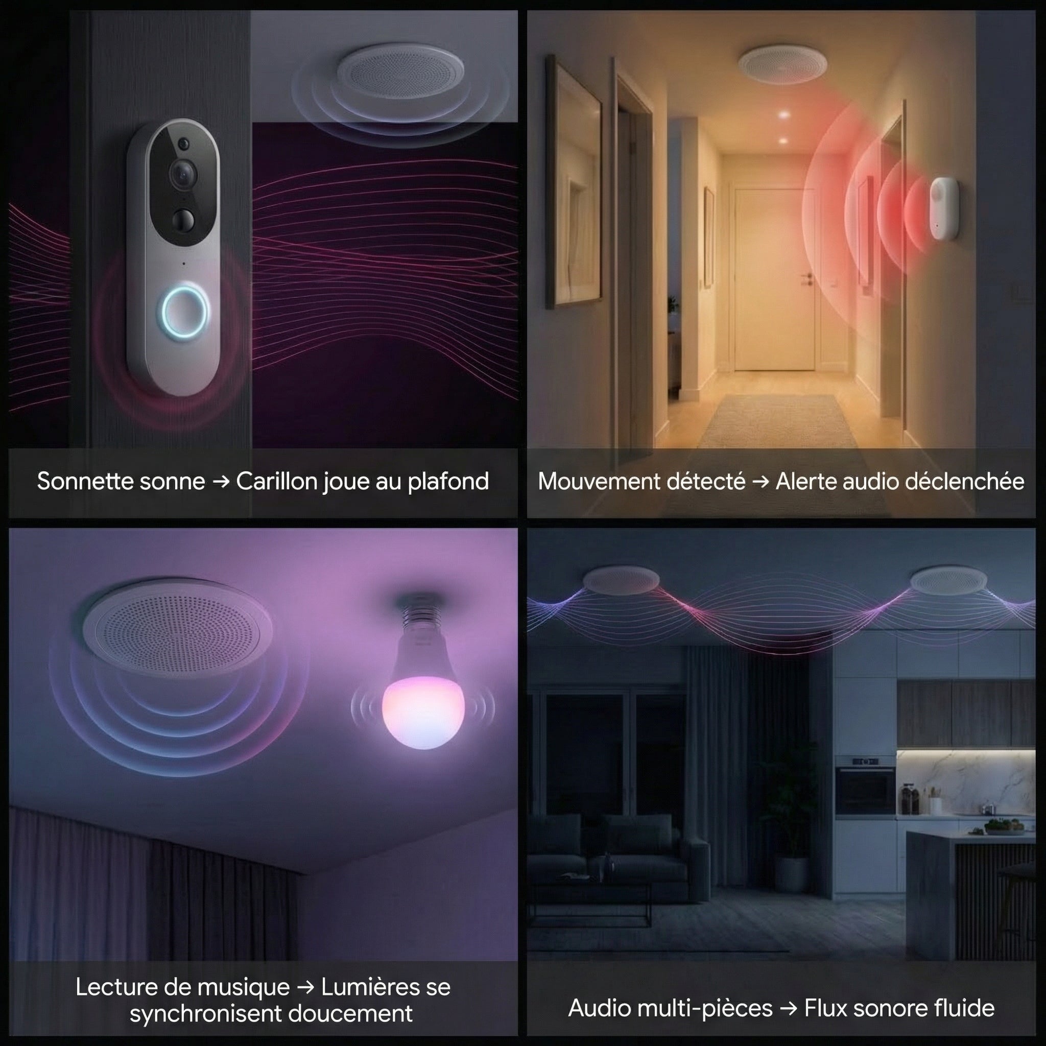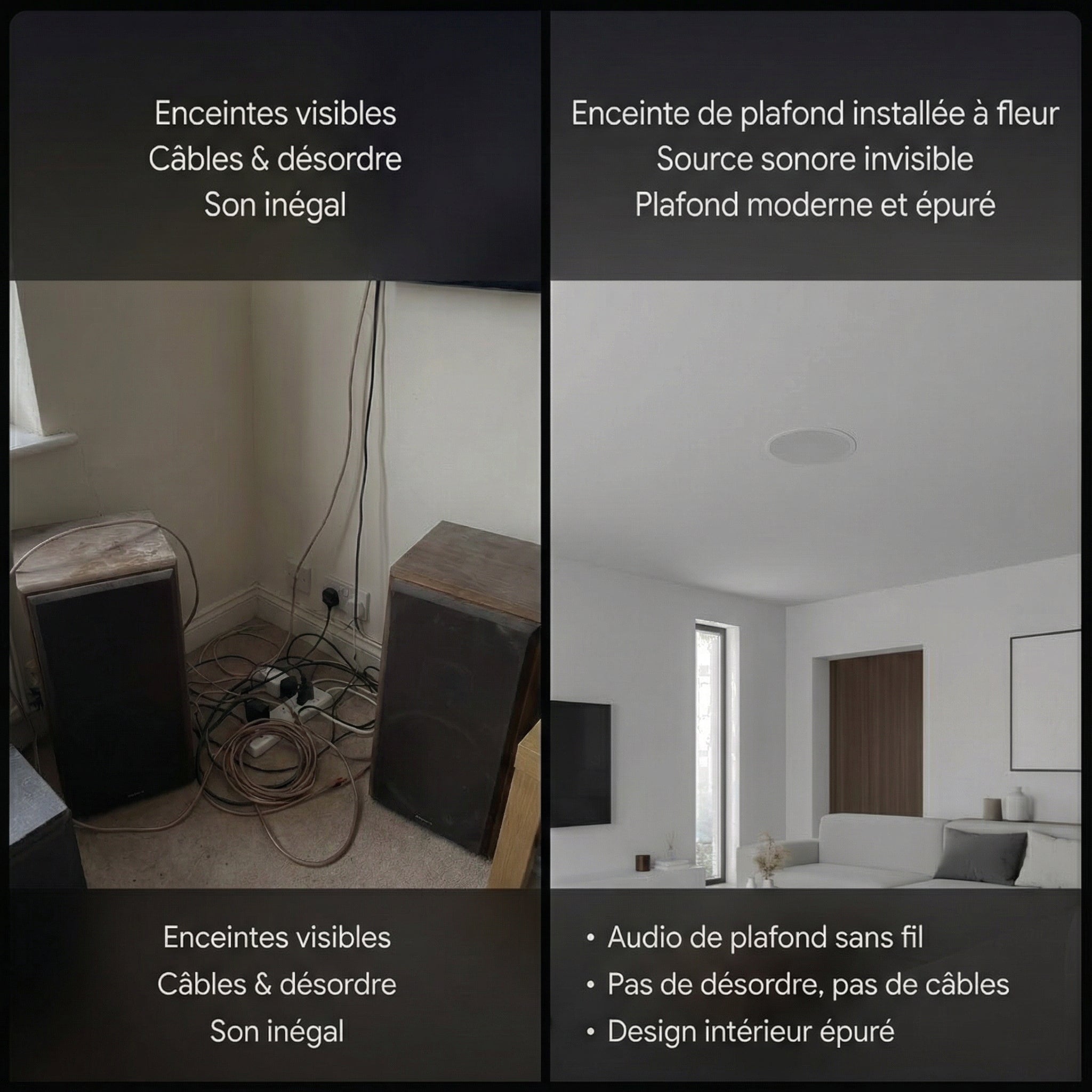 La musique se fond dans votre plafond. Le son emplit toute votre maison.