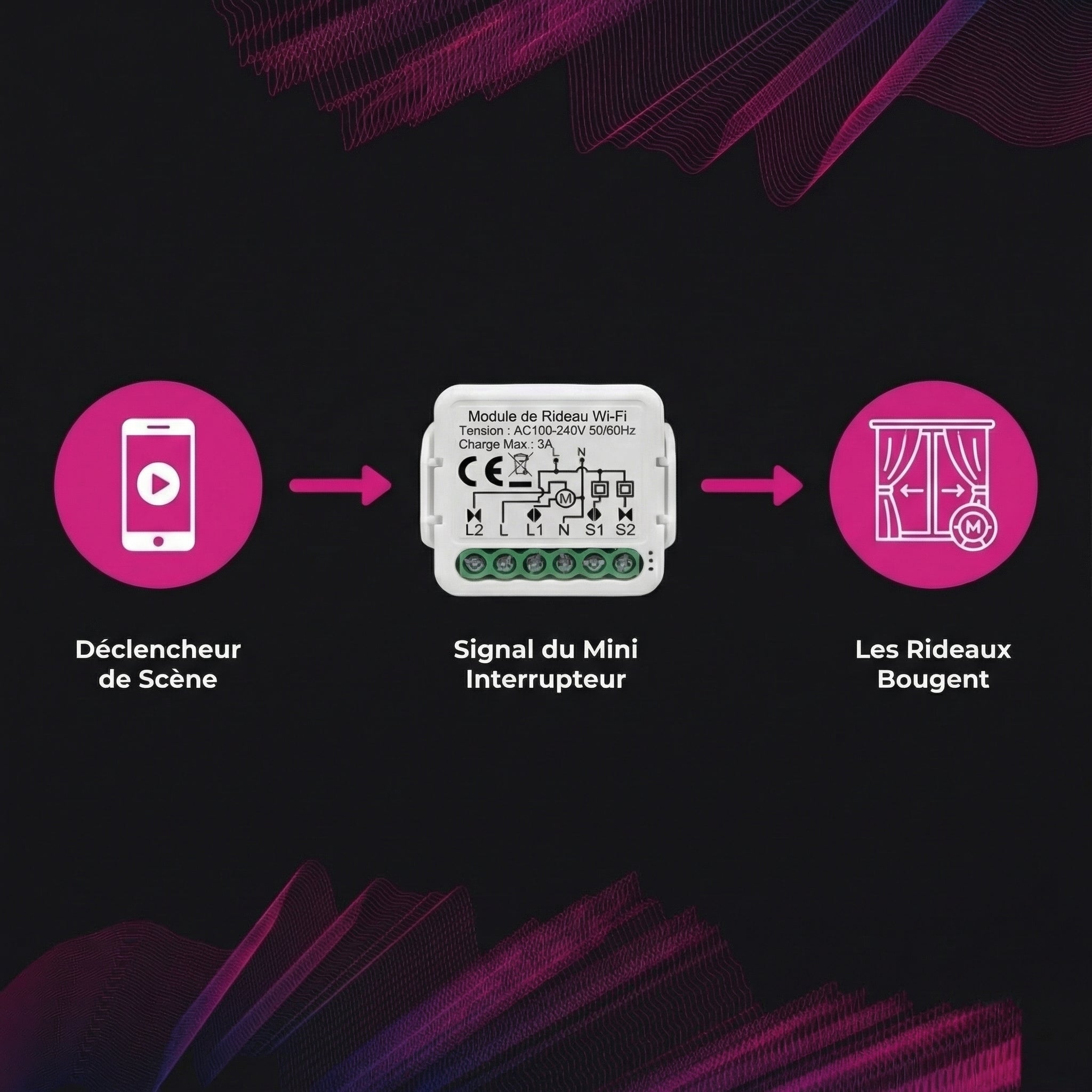 • Ouvrez, fermez ou mettez en pause les rideaux depuis n'importe où dans votre maison.