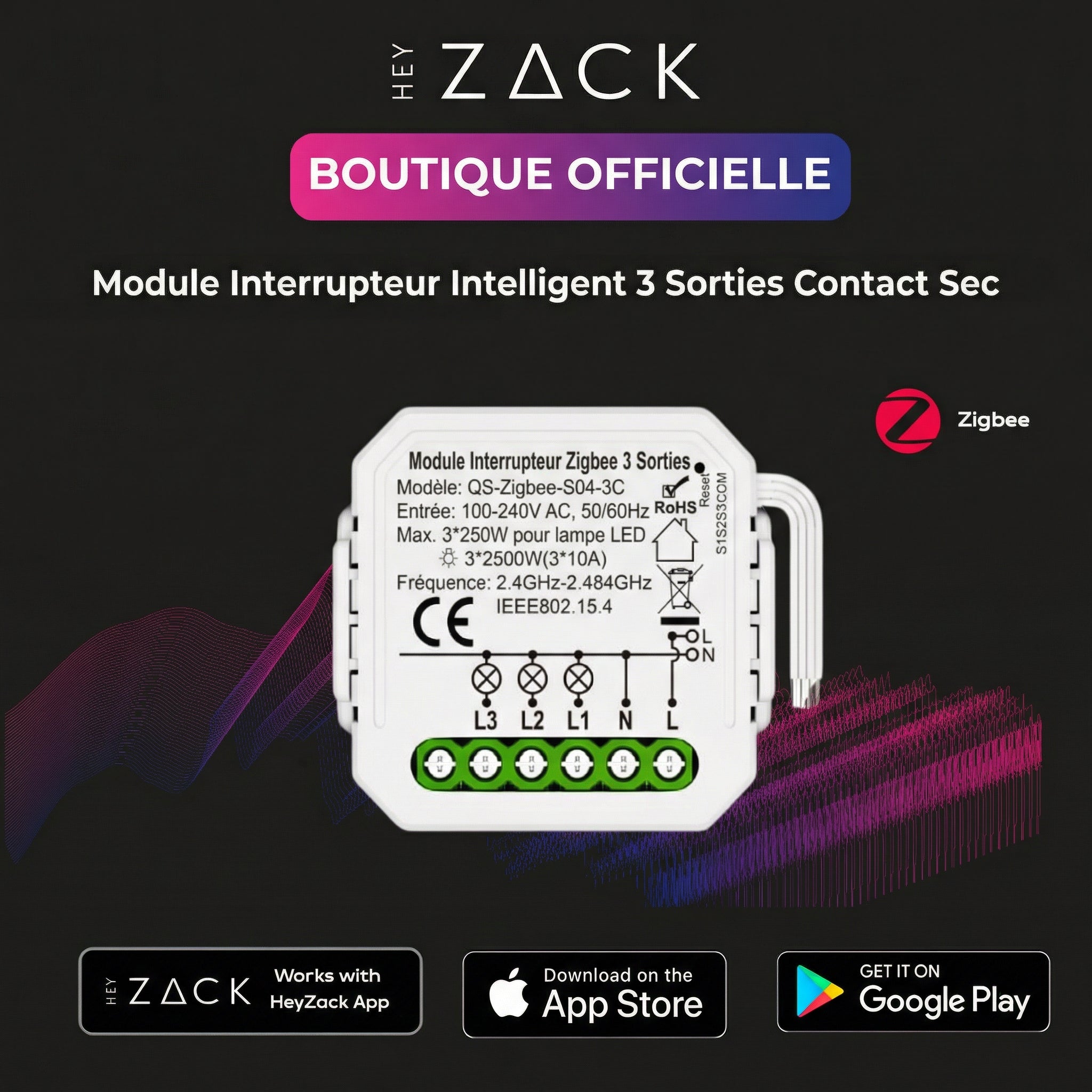 Contrôlez l'éclairage, les serrures, la climatisation et les scénarios depuis n'importe où grâce à l'application HeyZack Smart Control — gratuite sur iOS et Android.