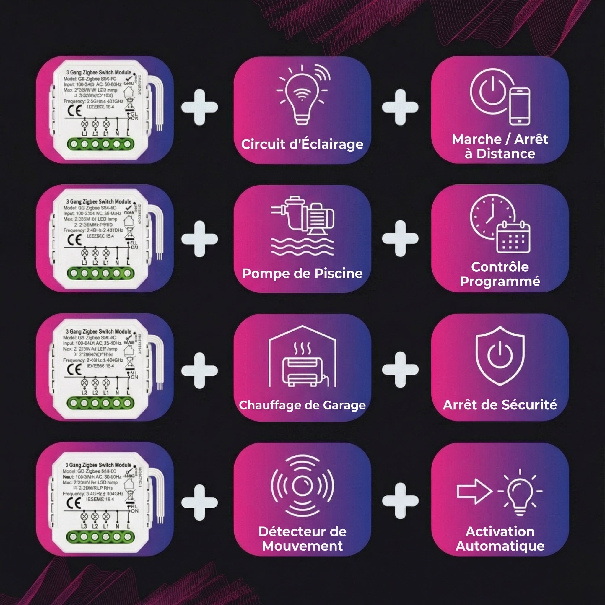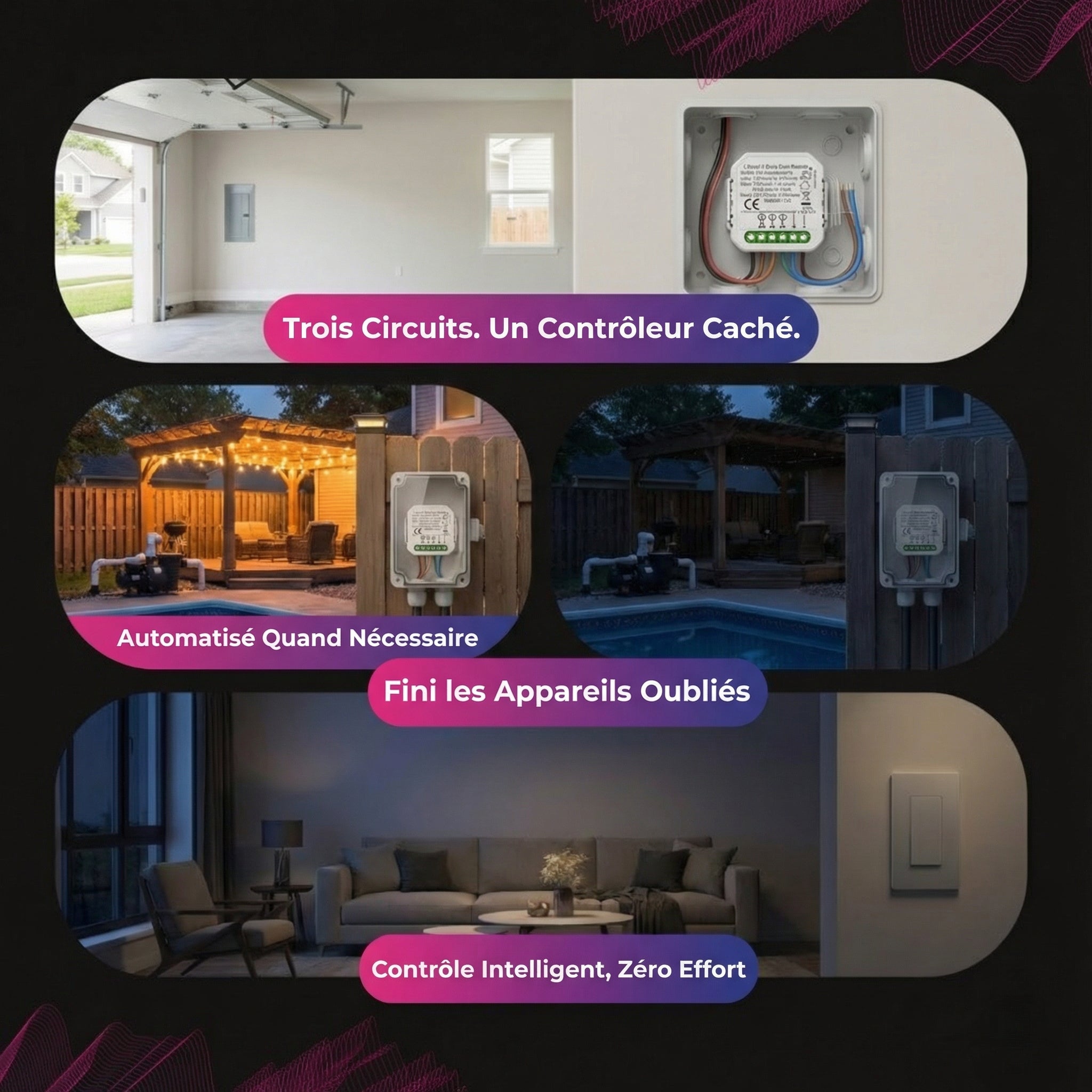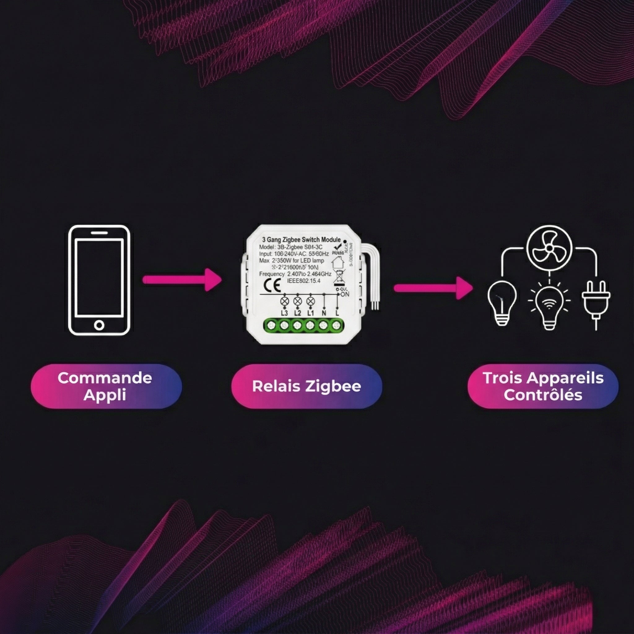 • Contrôlez trois circuits de 16 A indépendamment via votre téléphone.