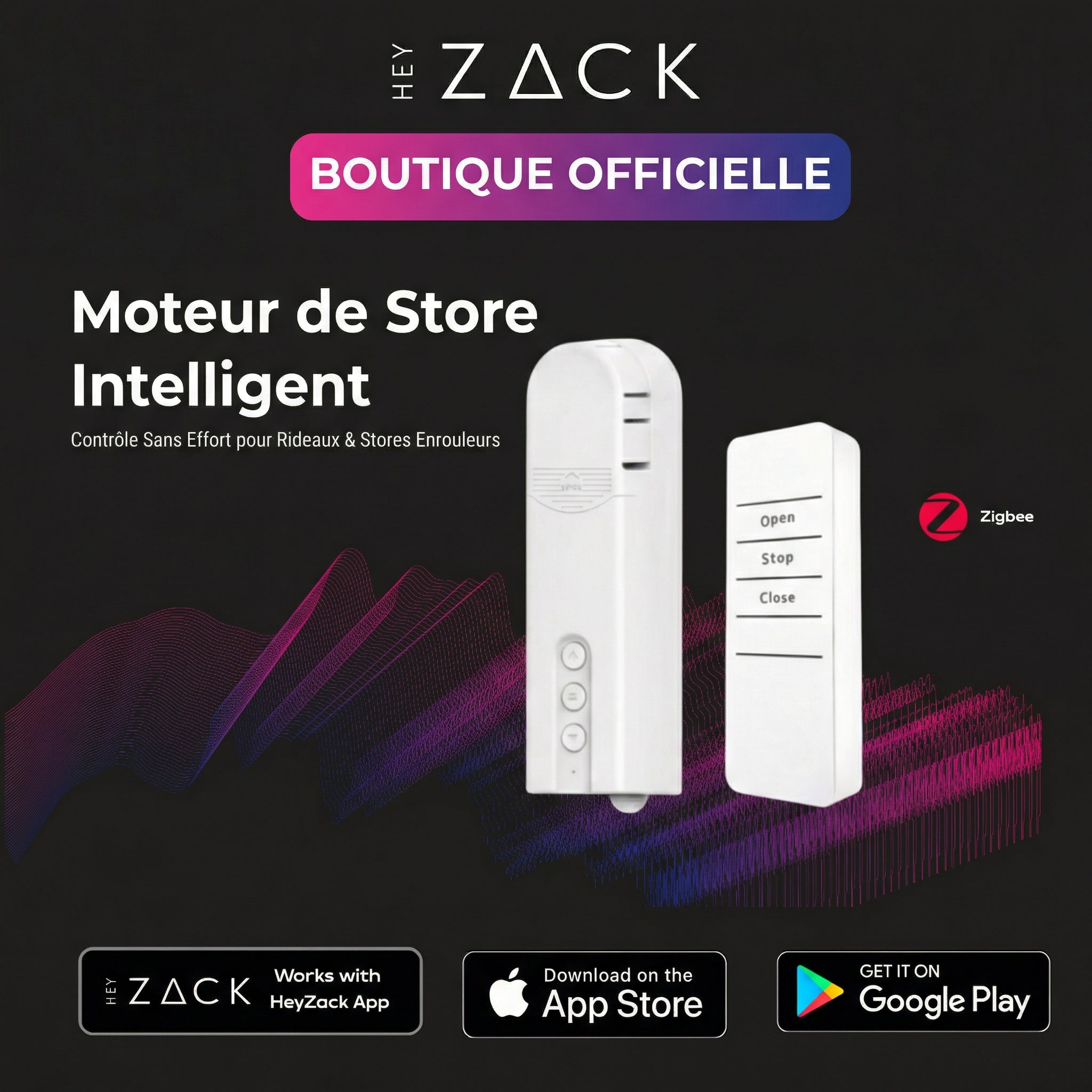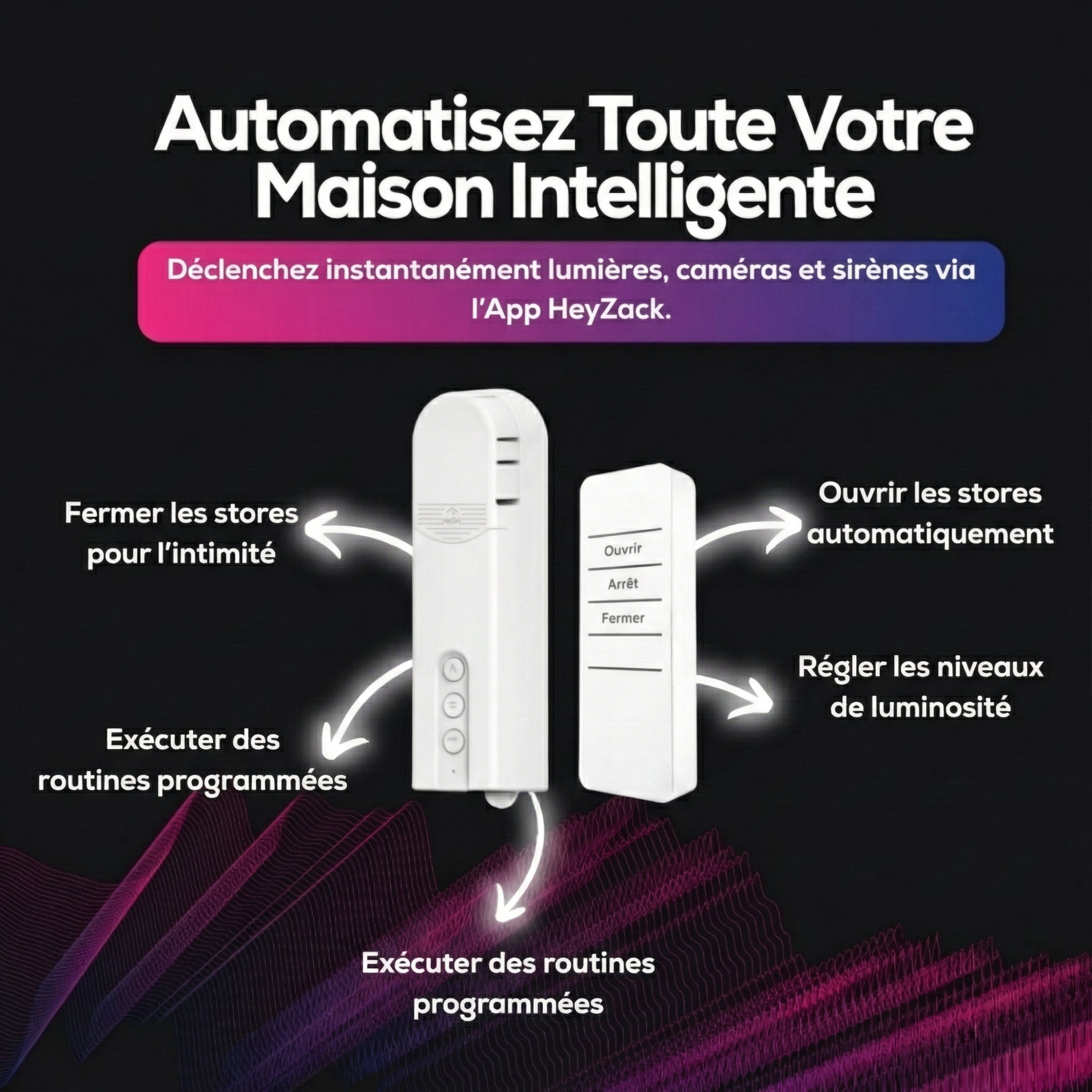 Contrôlez l'éclairage, les serrures, la climatisation et les scénarios depuis n'importe où grâce à l'application HeyZack Smart Control — gratuite sur iOS et Android.