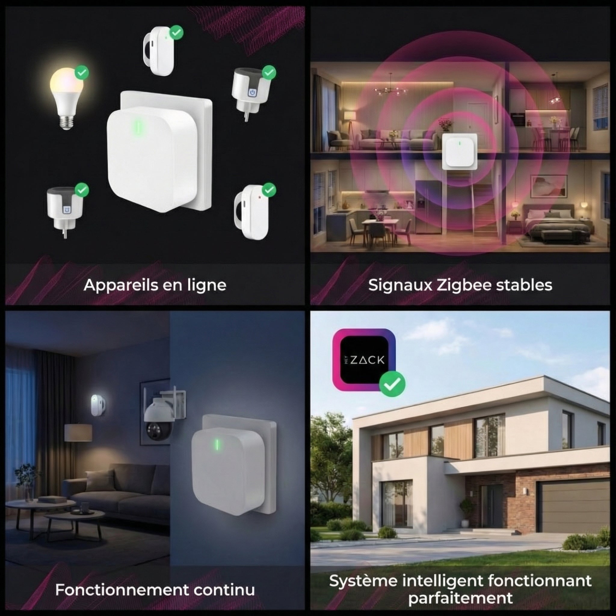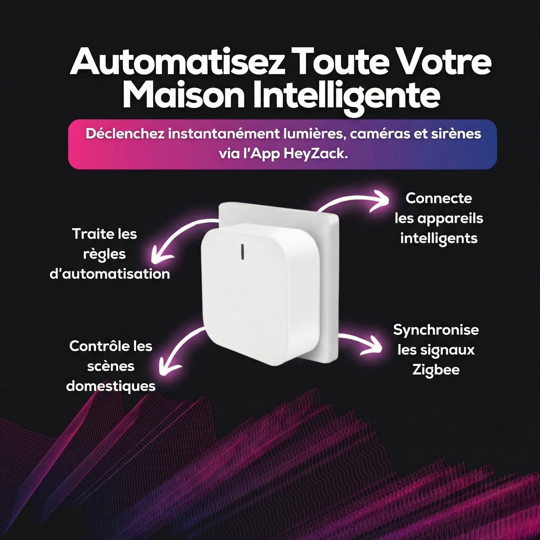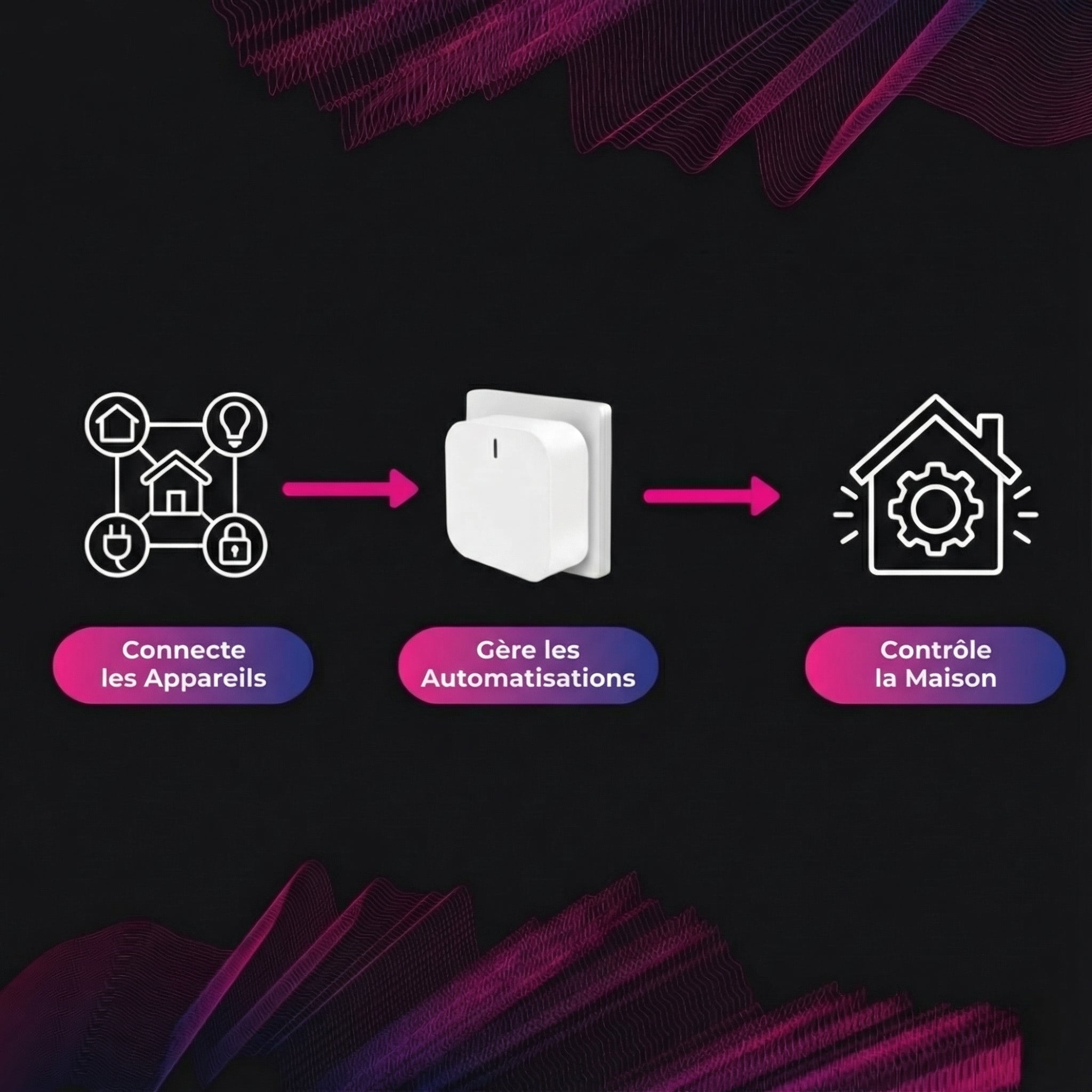 • Permet de connecter les éclairages, les serrures et les capteurs via un hub central.
