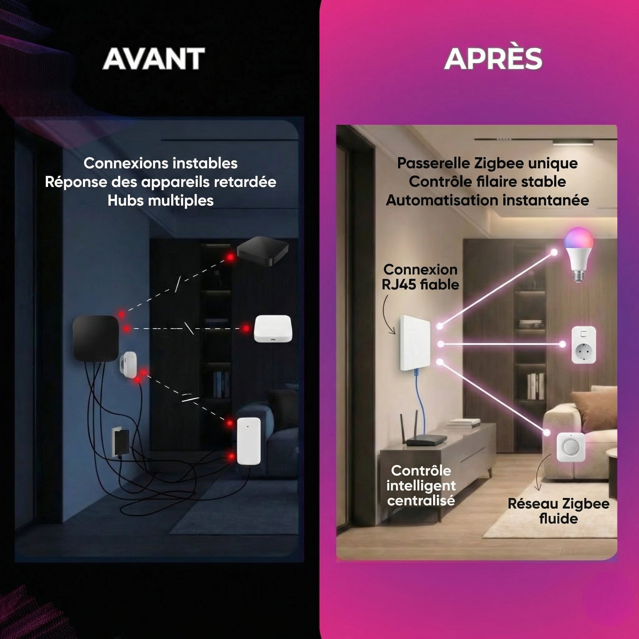Une seule passerelle. Un contrôle total. Bienvenue dans la maison connectée qui fonctionne tout simplement.