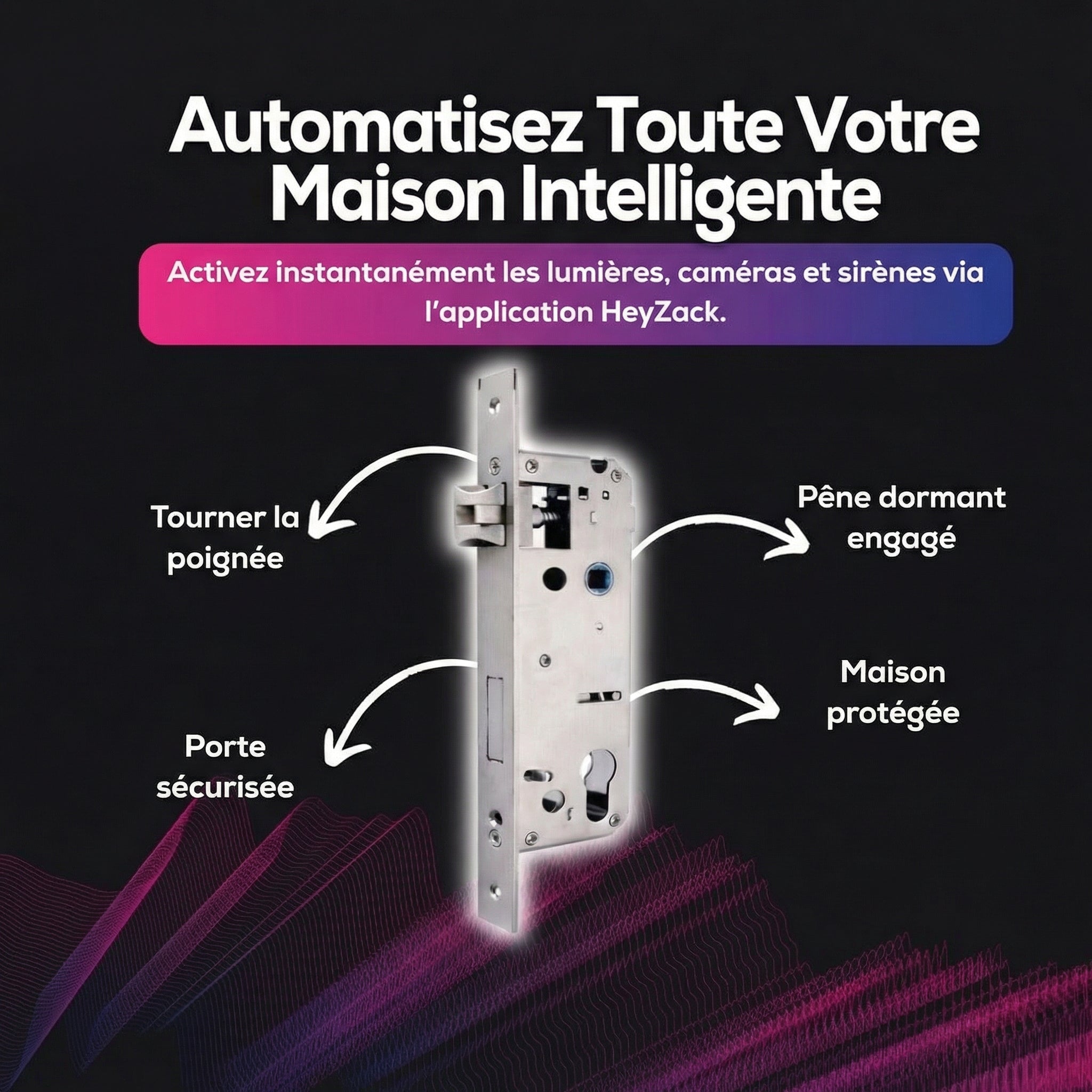 Contrôlez l'éclairage, les serrures, la climatisation et les scénarios depuis n'importe où grâce à l'application HeyZack Smart Control — gratuite sur iOS et Android.