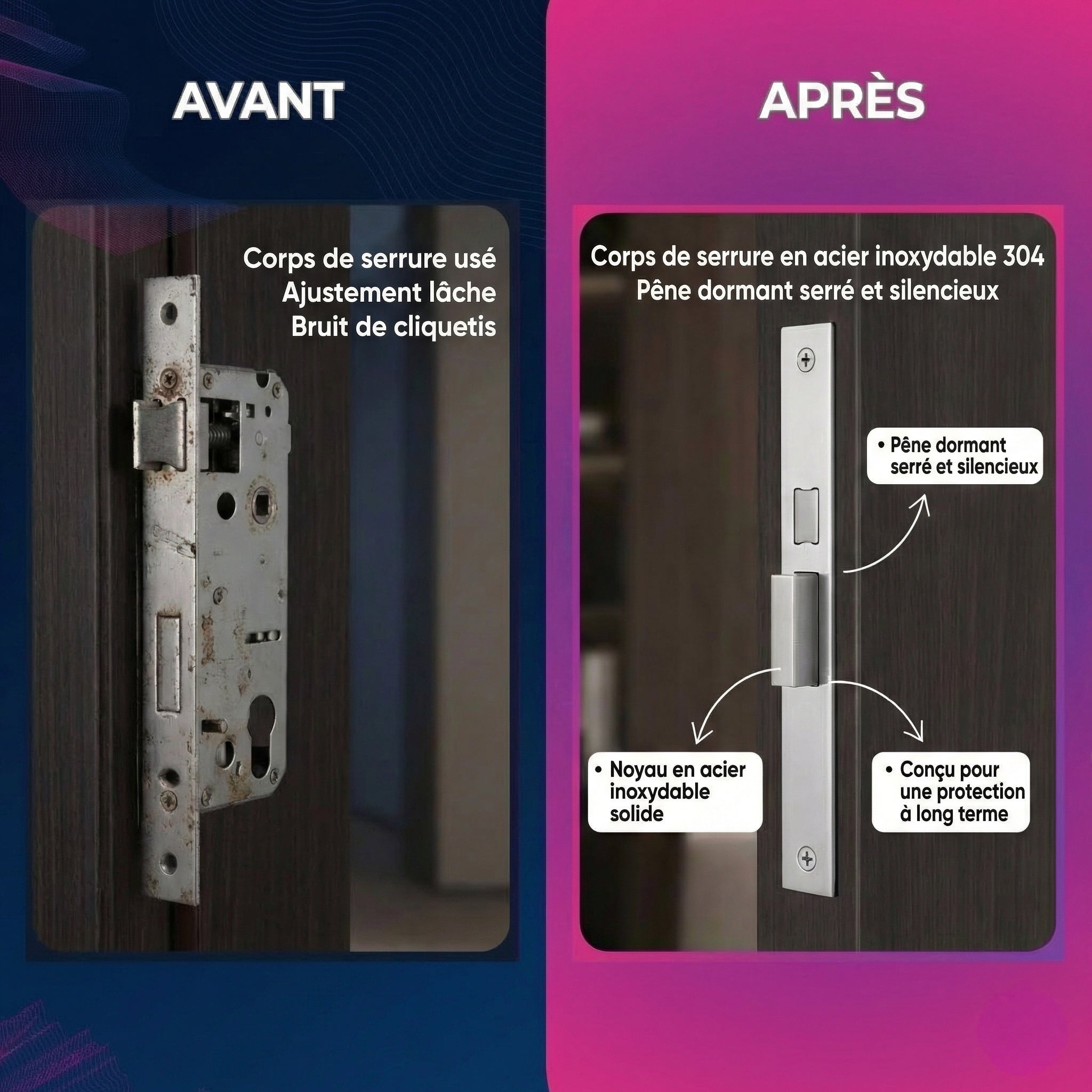Transformez votre porte d'entrée en une forteresse de sécurité moderne. Ce verrou simple offre une protection inviolable, le tout dans un style d'une élégance intemporelle.