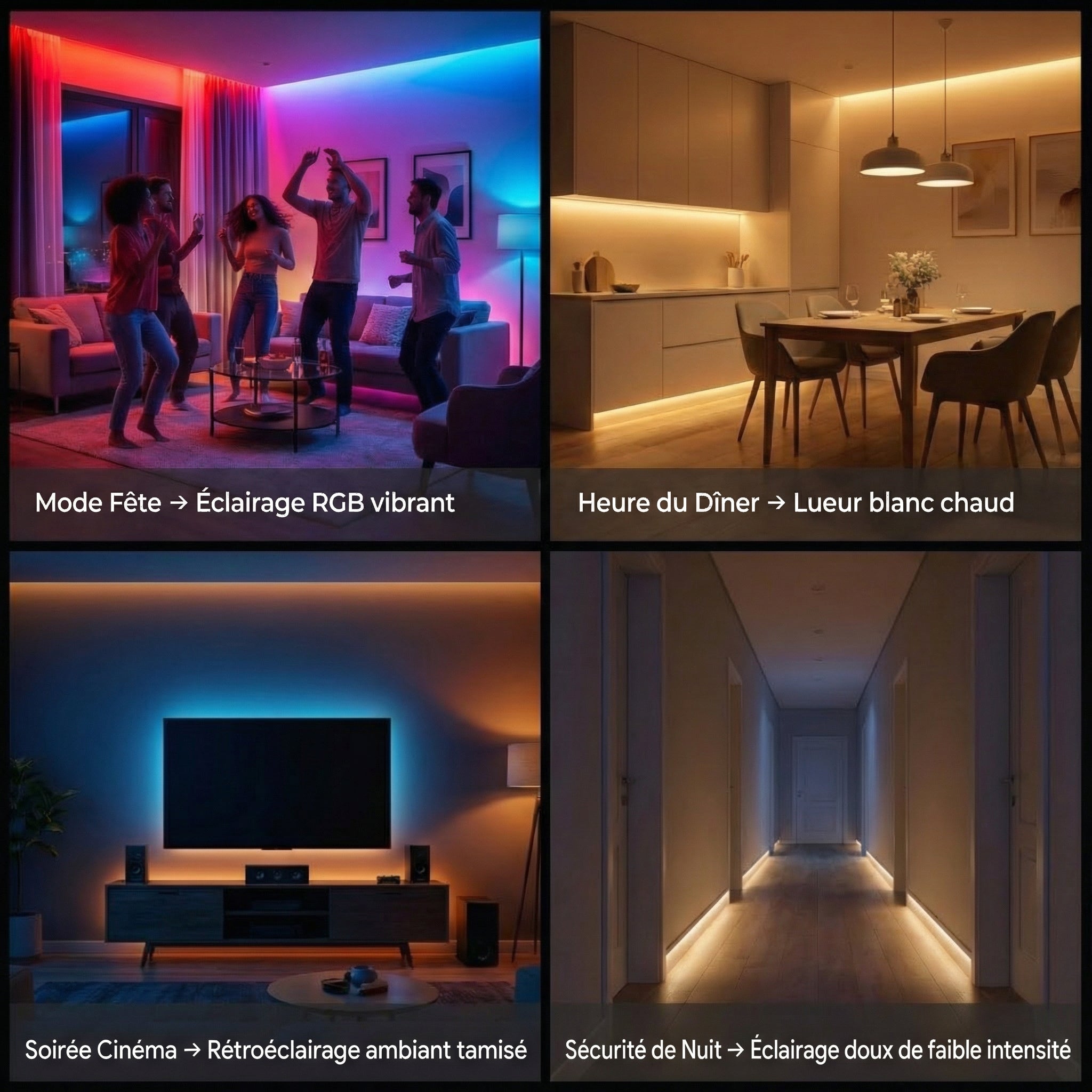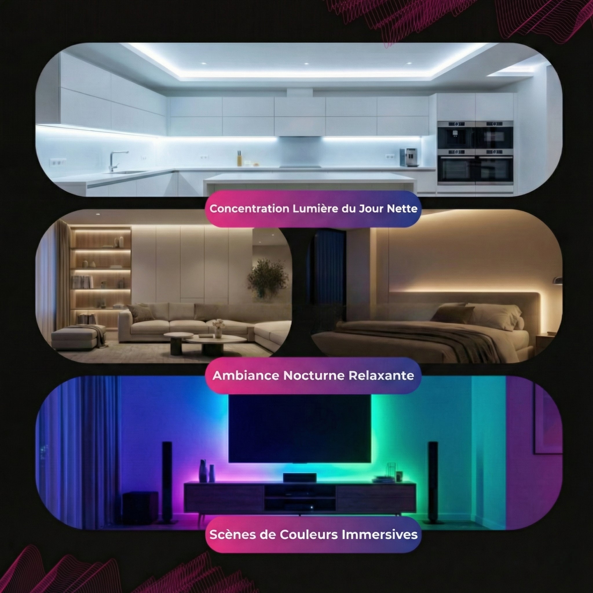 Transformez n'importe quel espace grâce à des couleurs cinématographiques. Votre pièce devient une toile de lumière vivante.