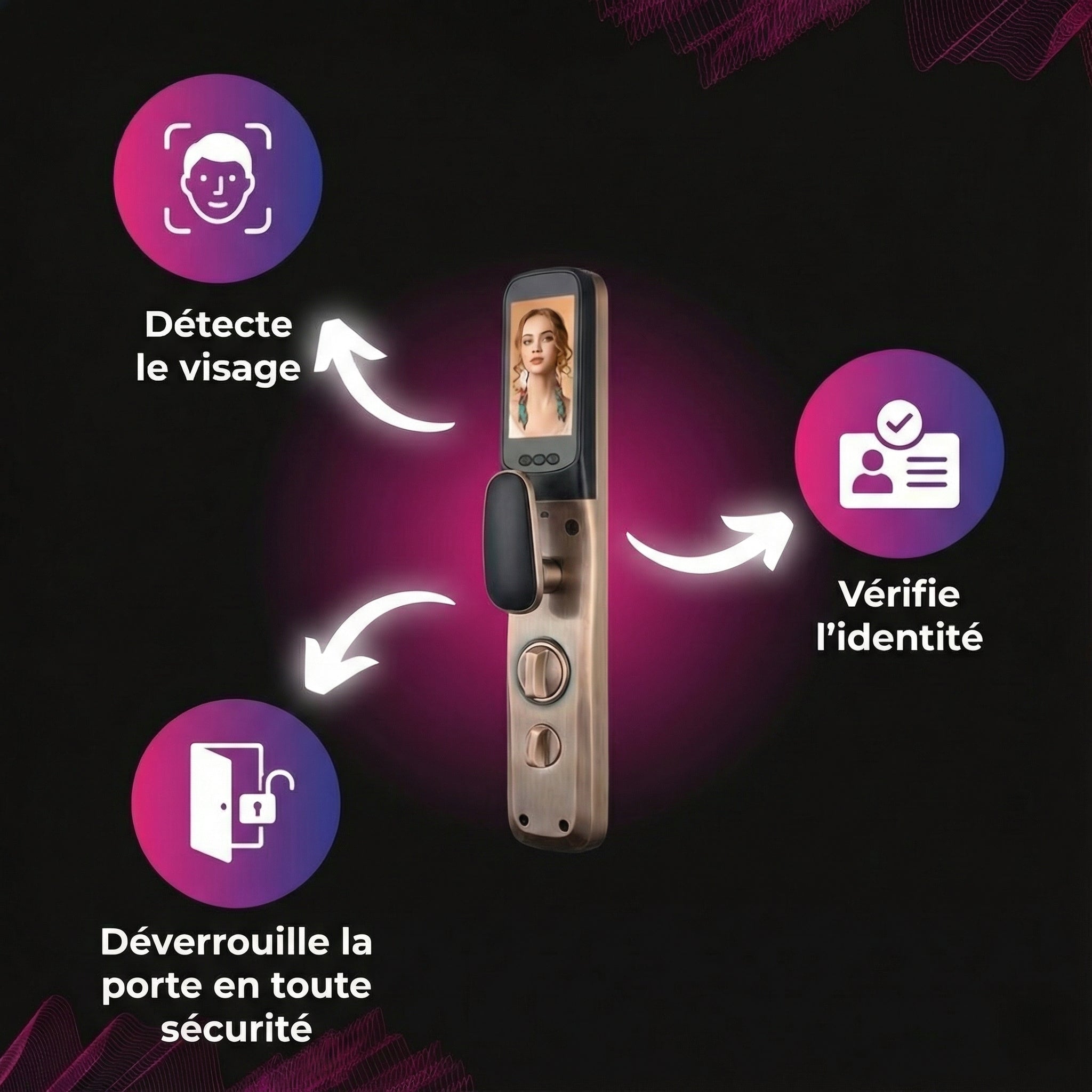 Sonnette 3D avec visage et vidéo, verrouillage automatique intelligent