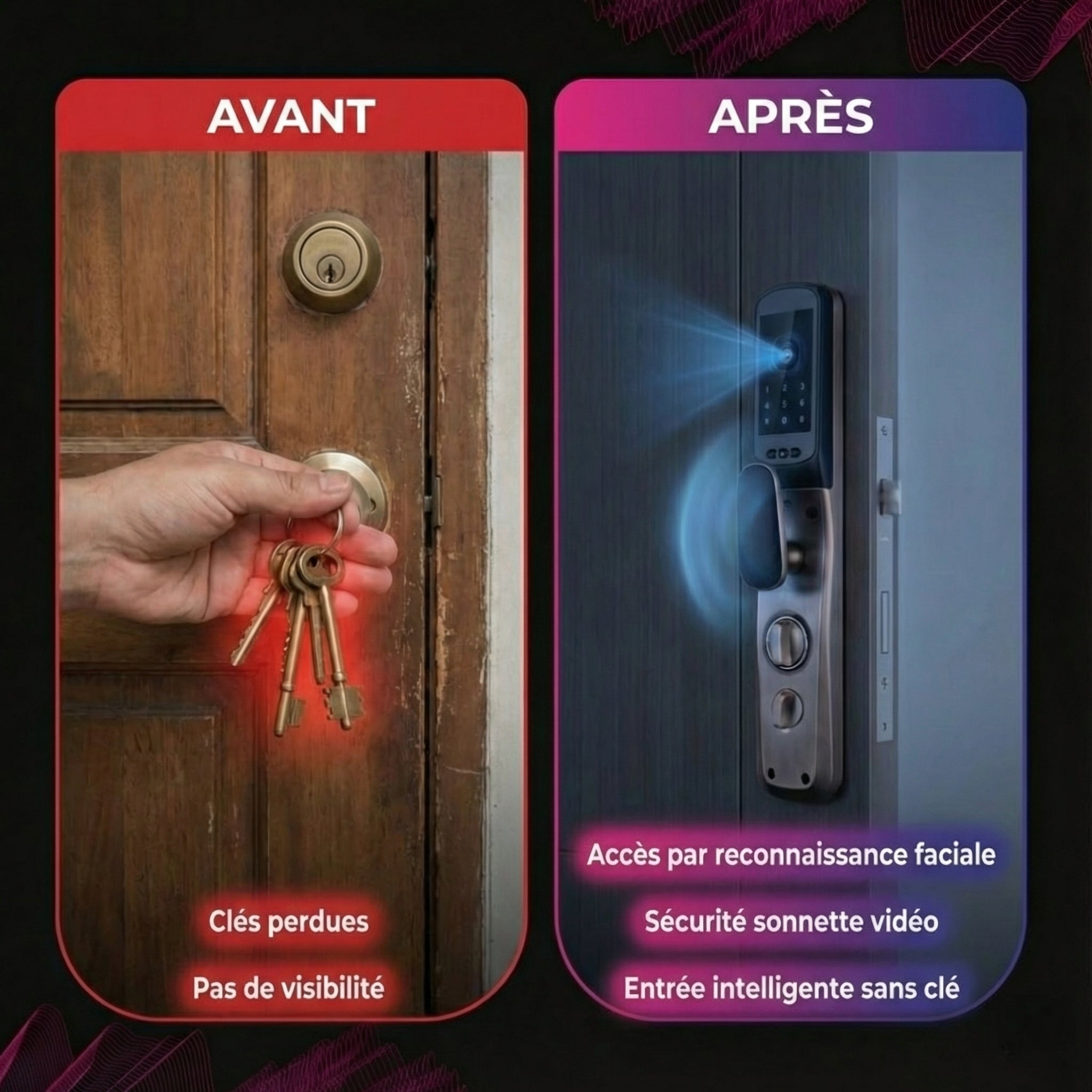 Votre porte est désormais plus intelligente que votre téléphone. La sonnette vidéo 3D intelligente avec serrure automatique vous reconnaît instantanément et vous souhaite la bienvenue.