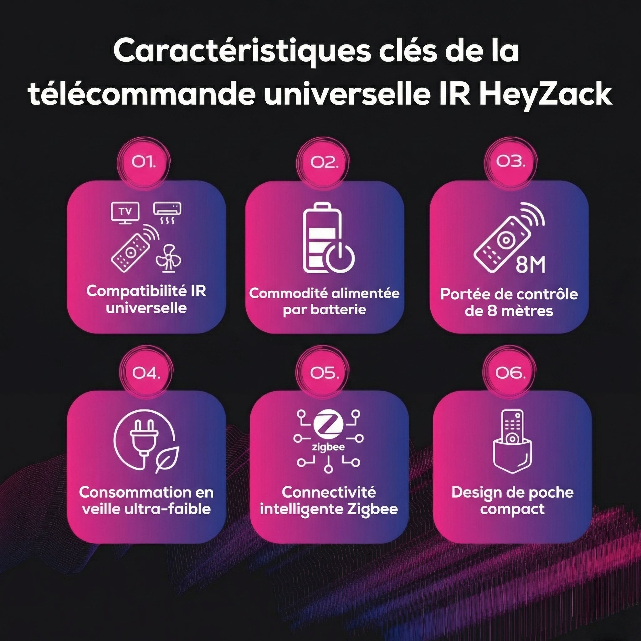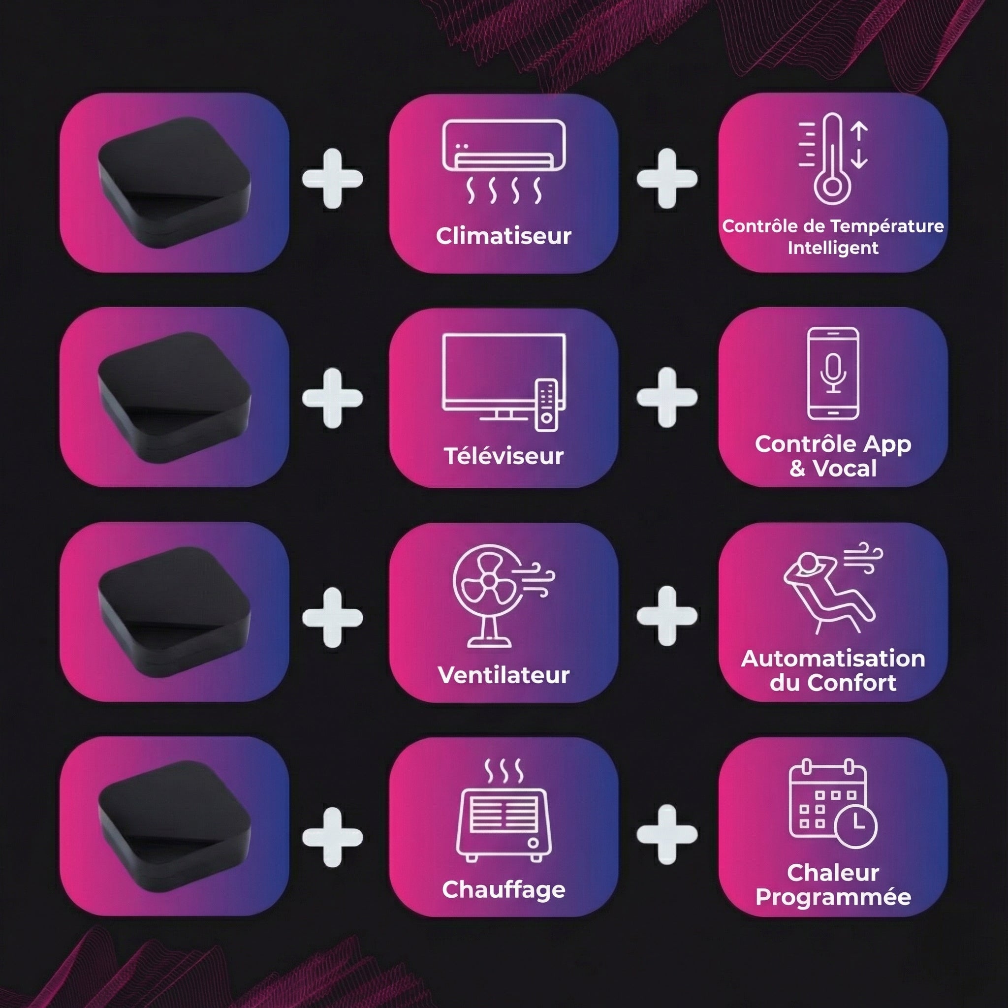 • Fonctionne à travers les murs et les armoires pour le contrôle d'appareils dissimulés.
