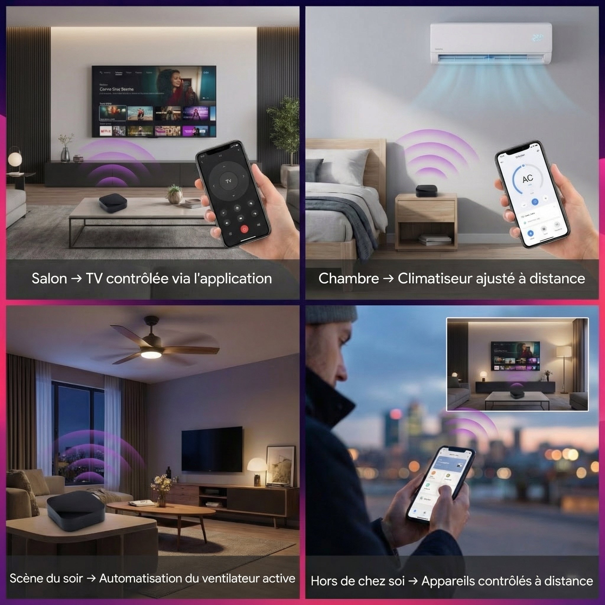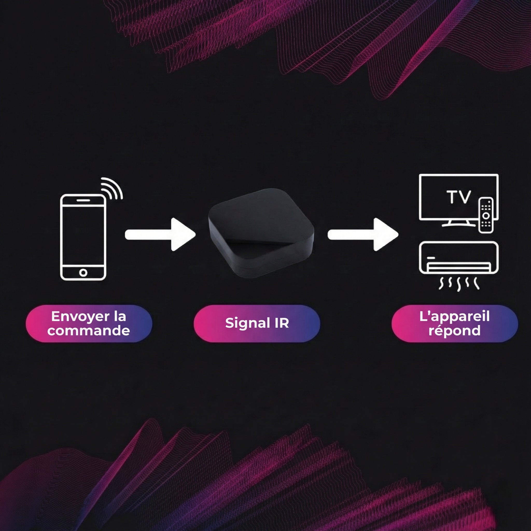 Contrôlez tous vos appareils infrarouges où que vous soyez. Votre centre de divertissement tient dans votre poche.