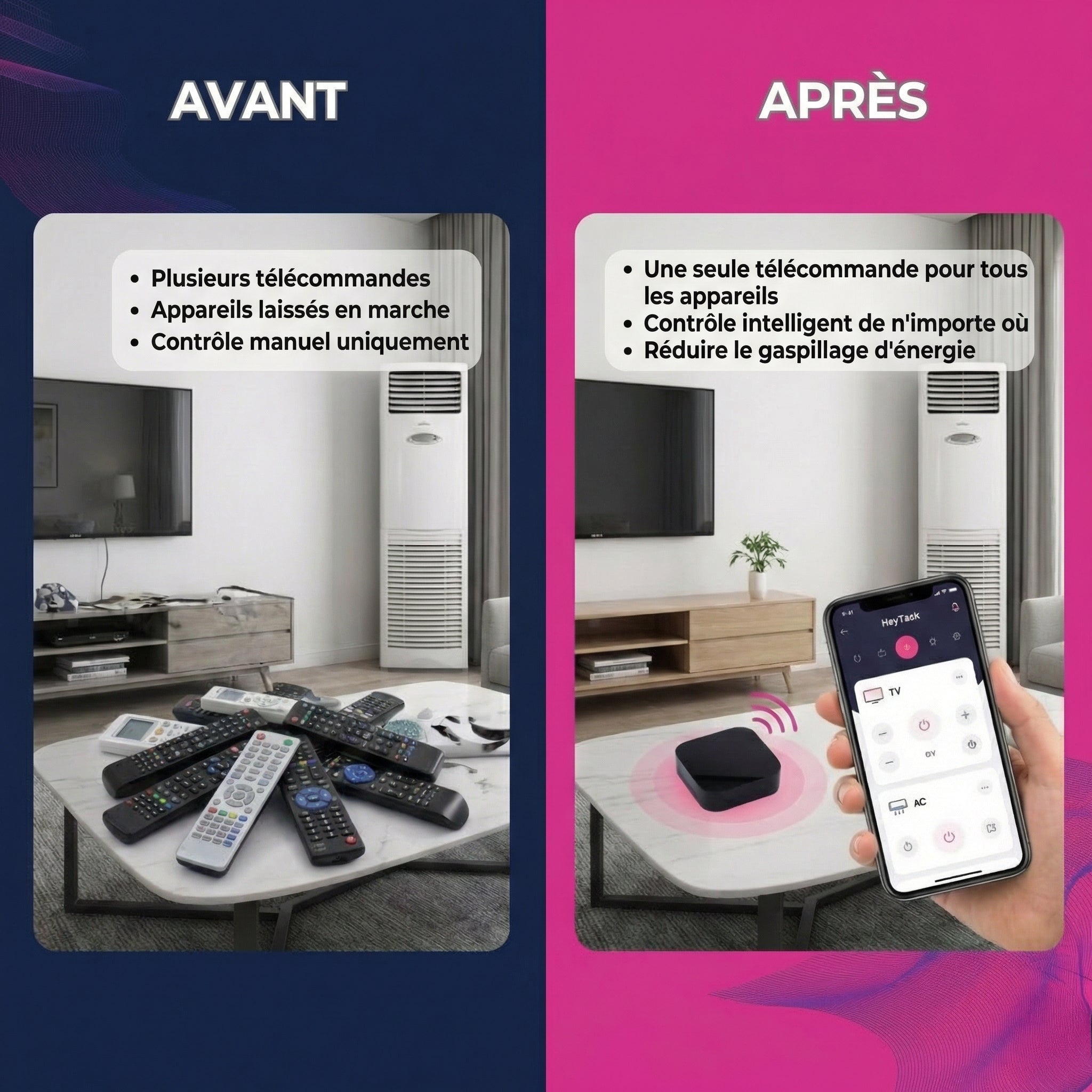 • Contrôlez les téléviseurs, les climatiseurs et les ventilateurs à travers les murs et les armoires.